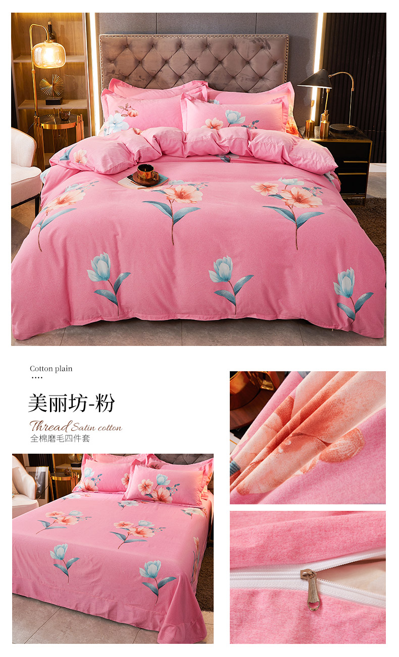 当前位置: 91家纺网 > 商品网购 > 床品套件 > 四件套 > 普通磨毛四件套 > 伊而梦 2023新款全棉磨毛印花四件套系列四件套 美丽坊-粉