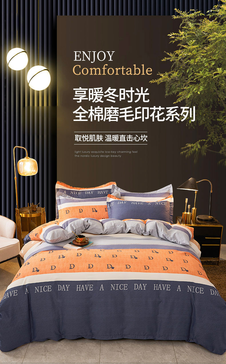 当前位置: 91家纺网 > 商品网购 > 床品套件 > 四件套 > 普通磨毛四件套 > 伊而梦 2023新款全棉磨毛印花四件套系列四件套 时尚大牌-桔