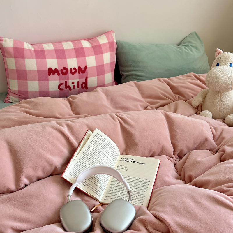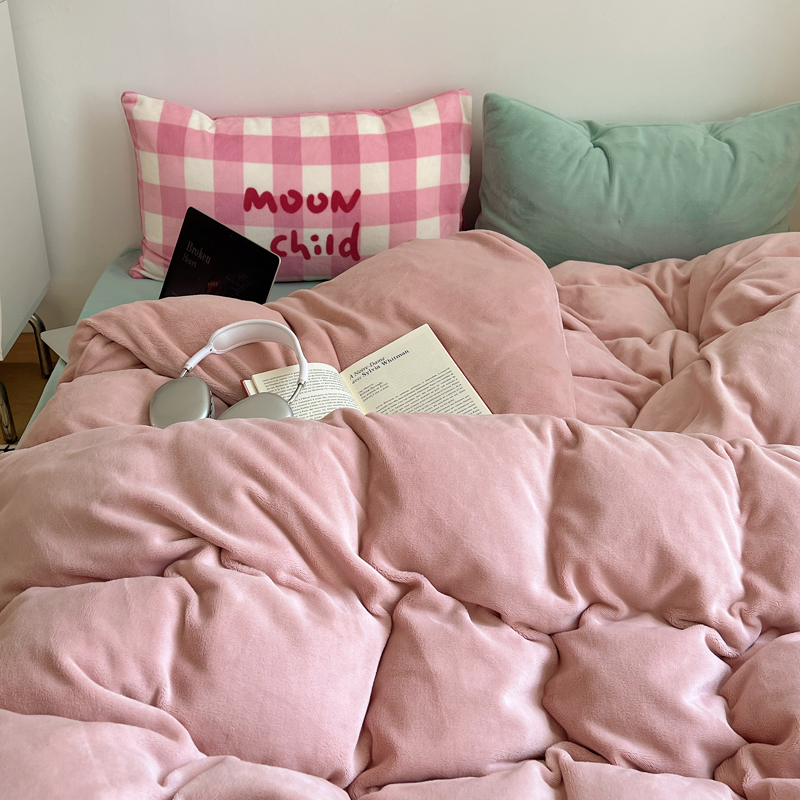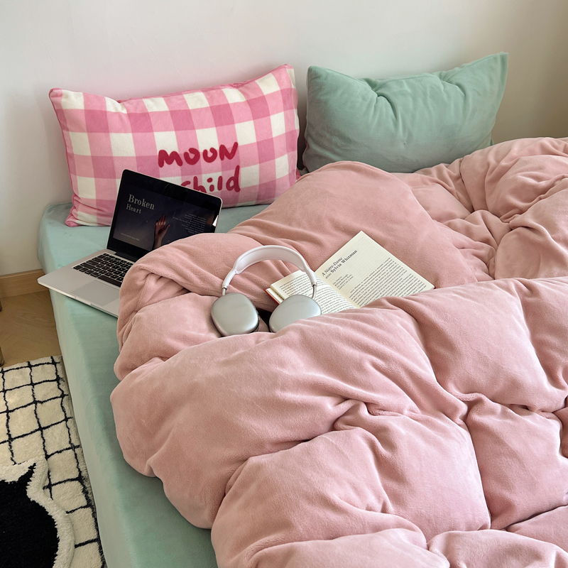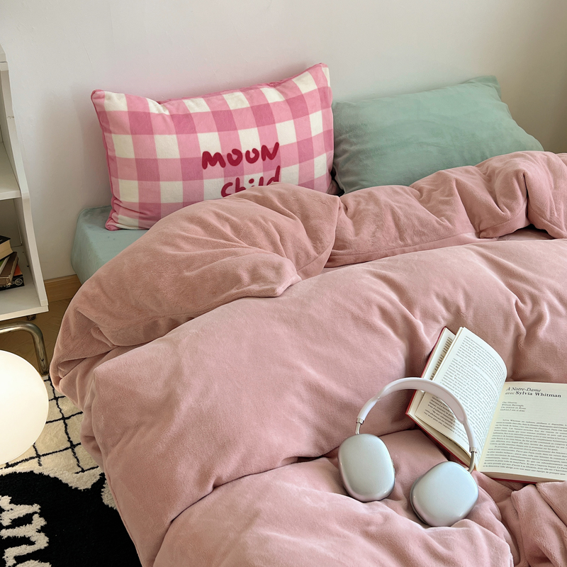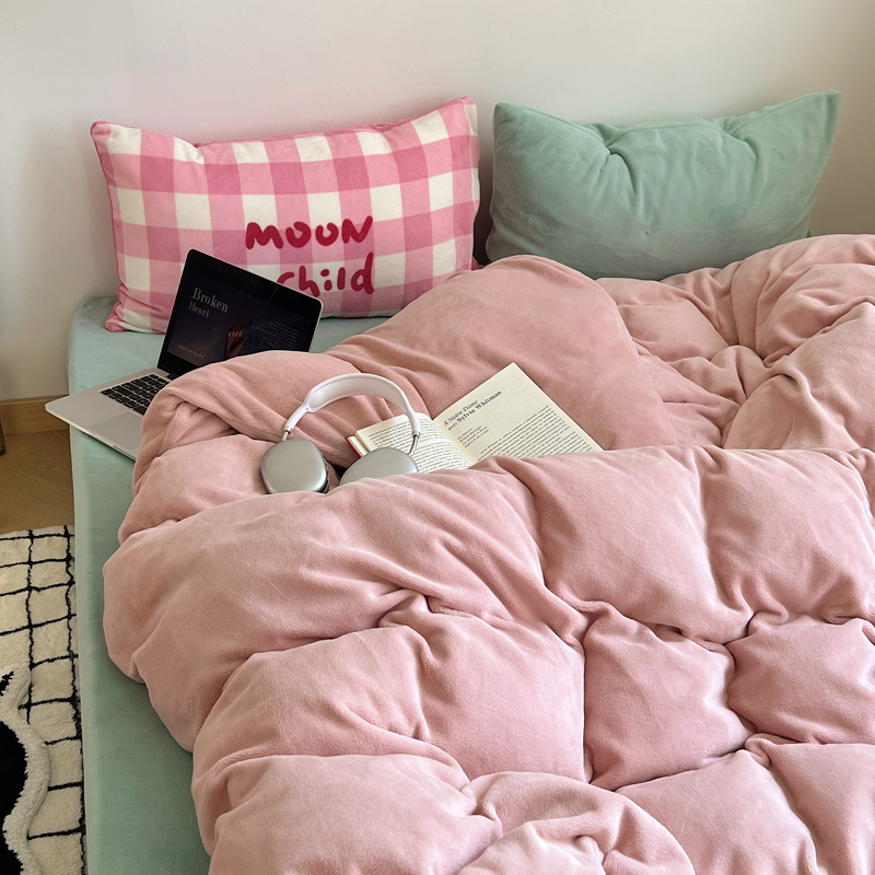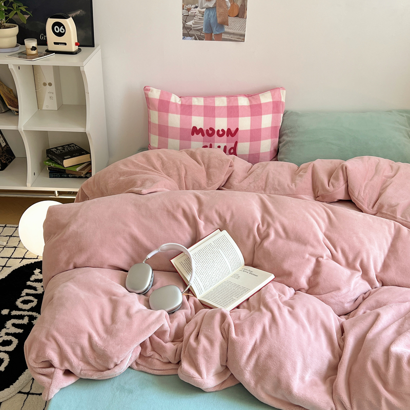 桃喜 2024新款牛奶绒纯色混搭系列四件套 青梨蜜桃