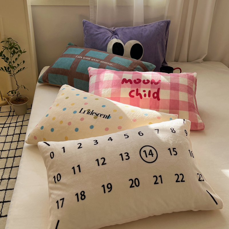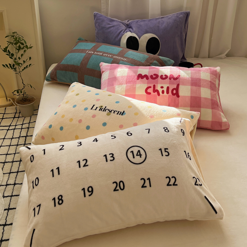 桃喜 2024新款牛奶绒纯色混搭系列单枕套 大版波点