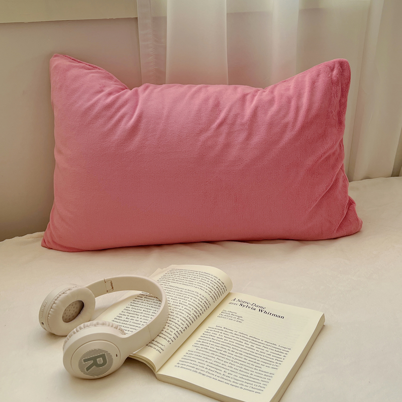 桃喜 2024新款牛奶绒纯色混搭系列单枕套 山茶粉