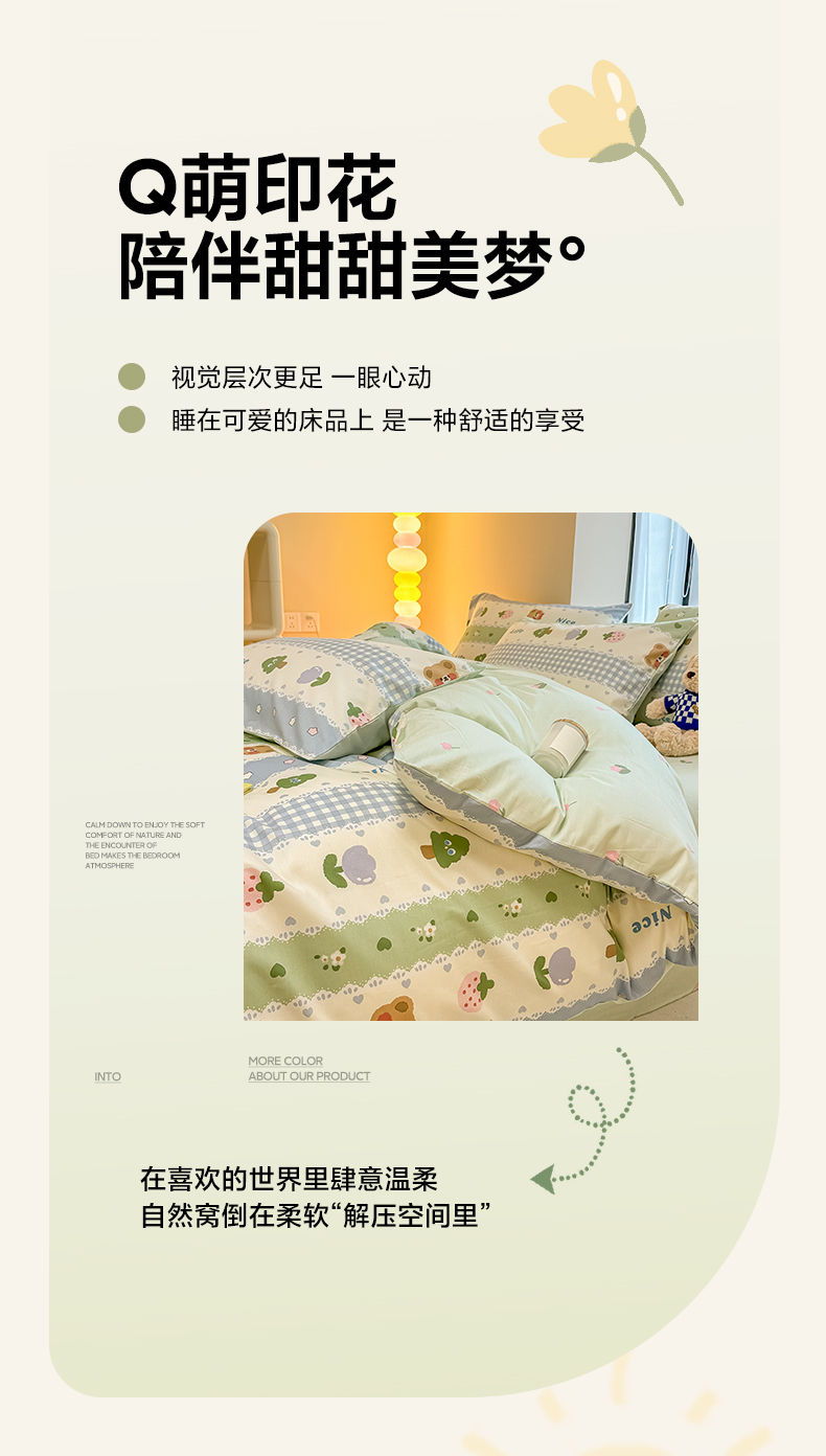 商品名称:沐辰 2023新款全棉13372萌趣印花系列四件套 果粒熊