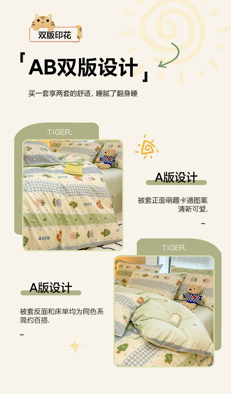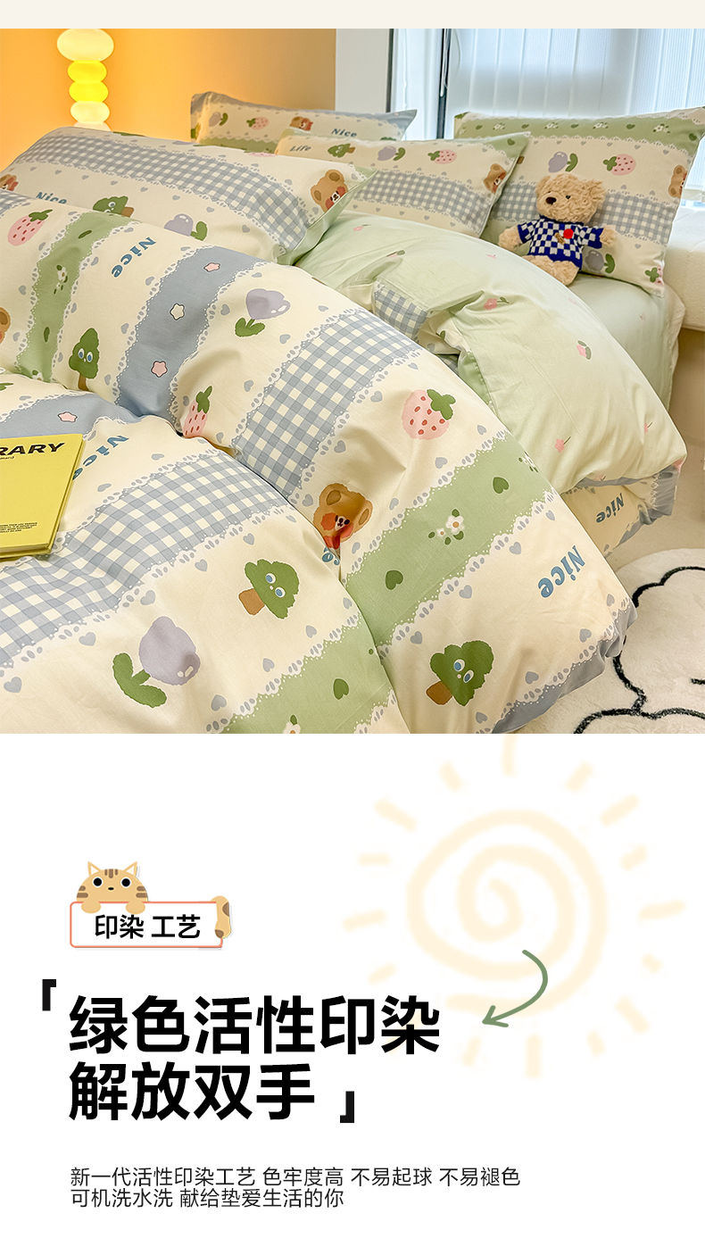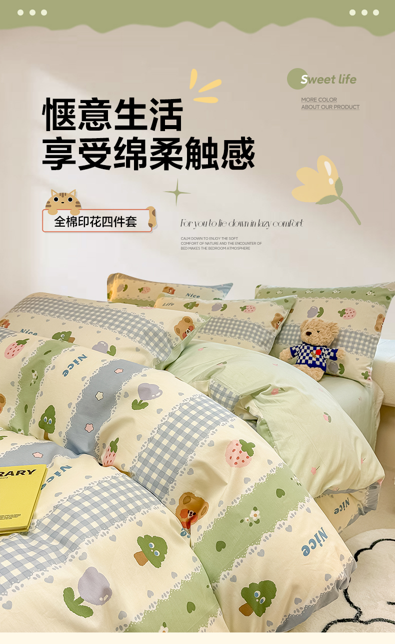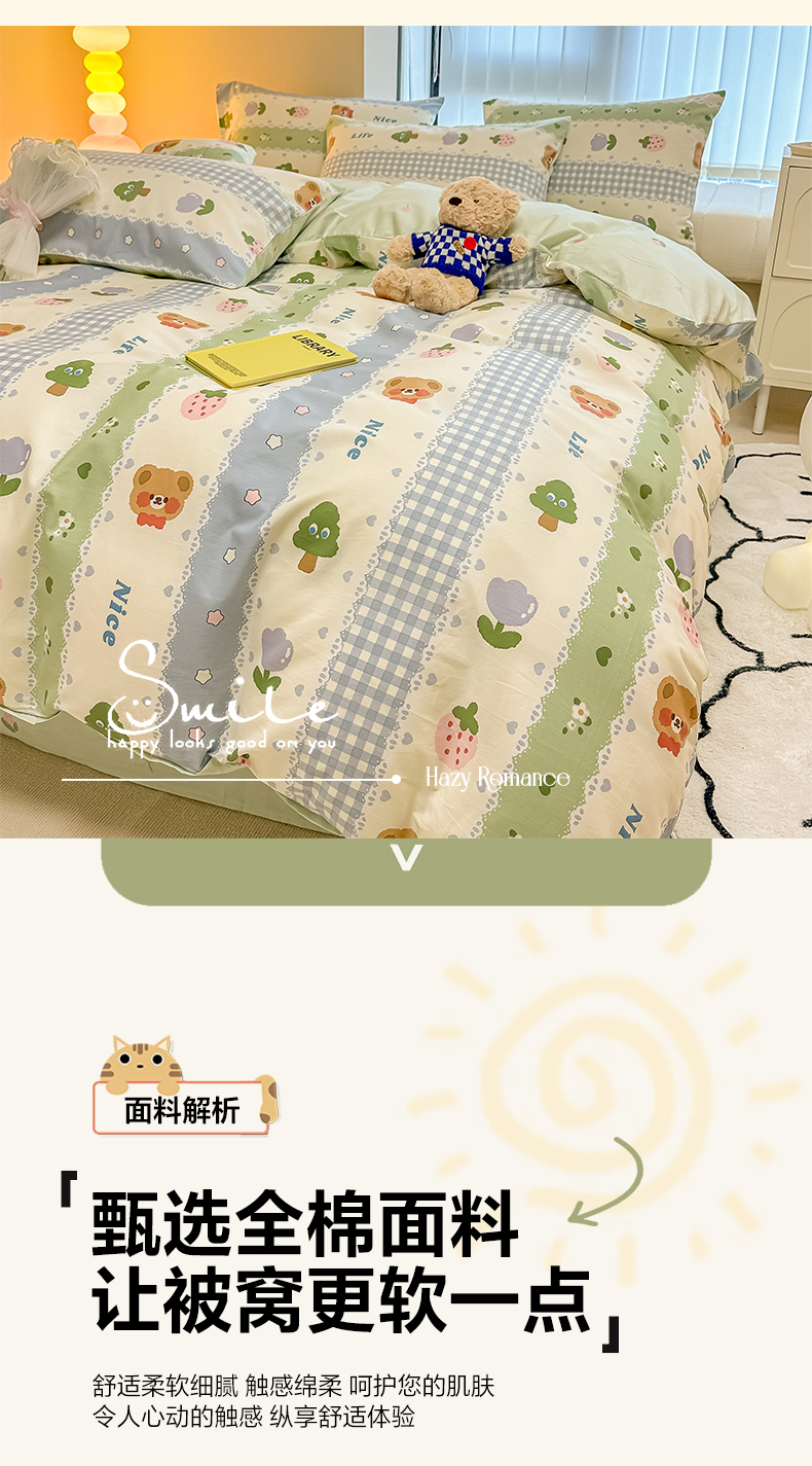 沐辰 2023新款全棉13372萌趣印花系列四件套 果粒熊