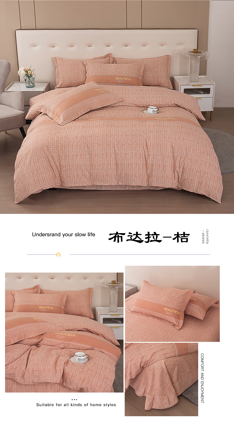 喜四方 2024新款全棉磨毛全棉印花四件套 布达拉-桔