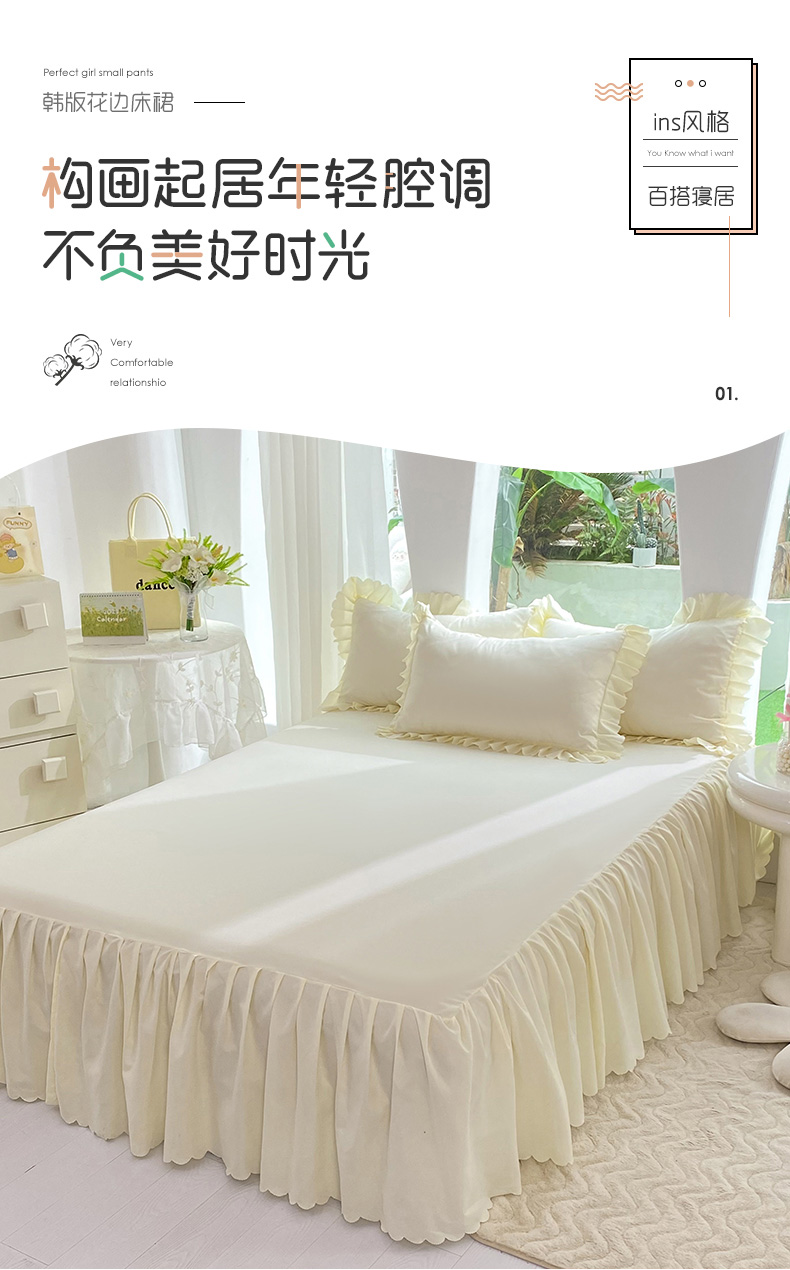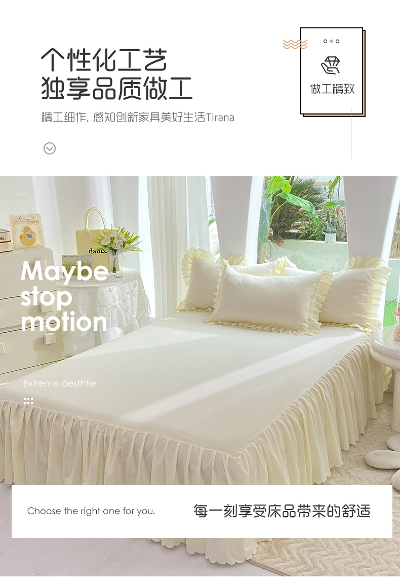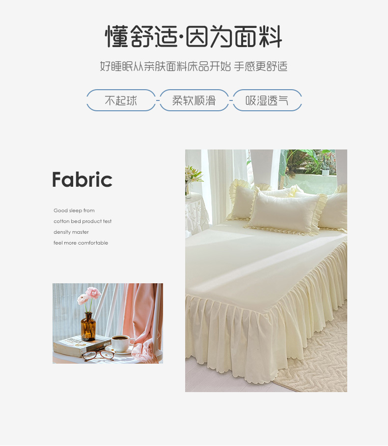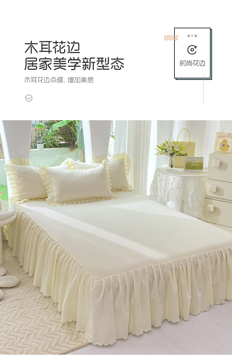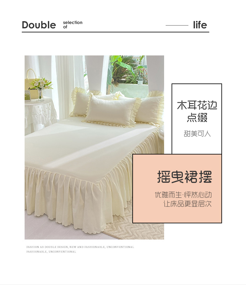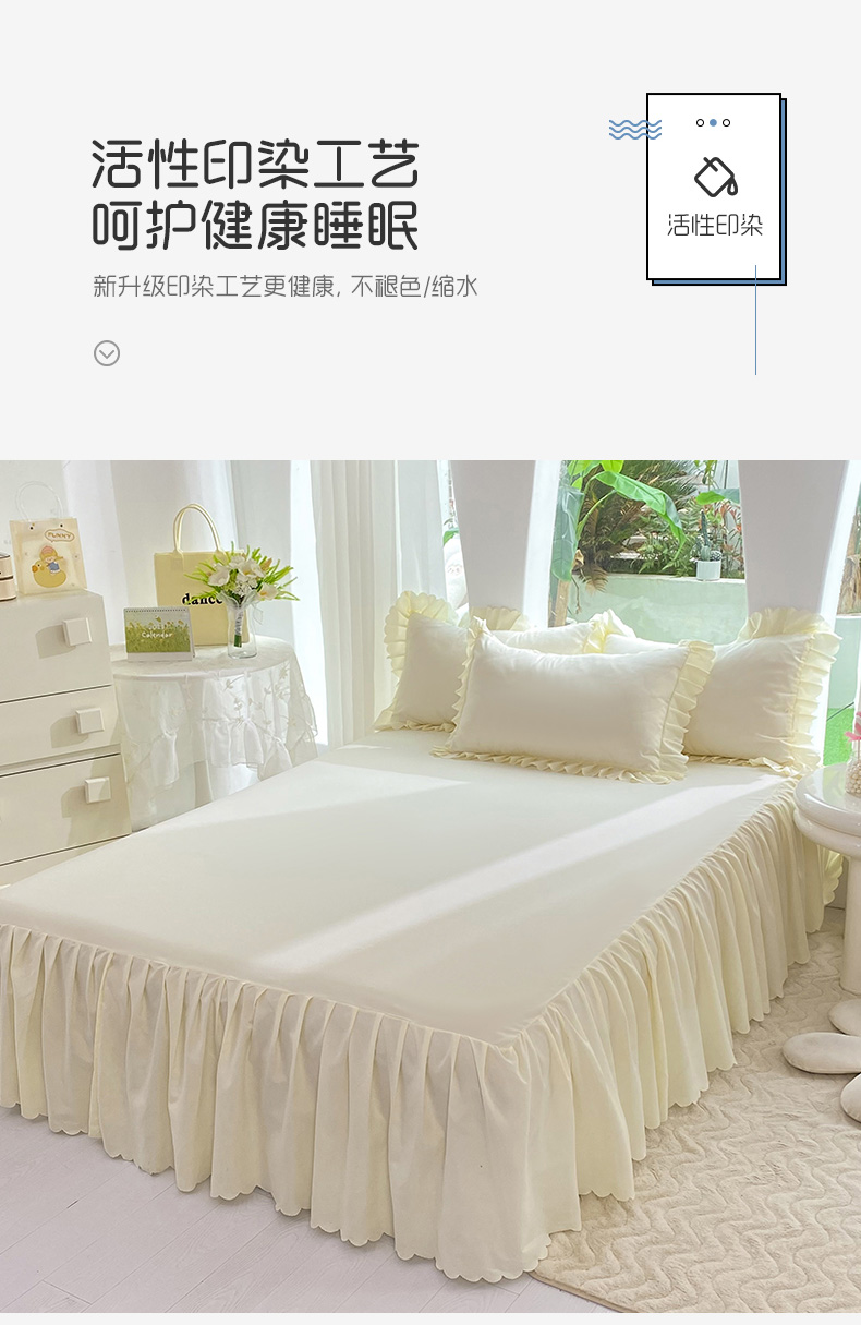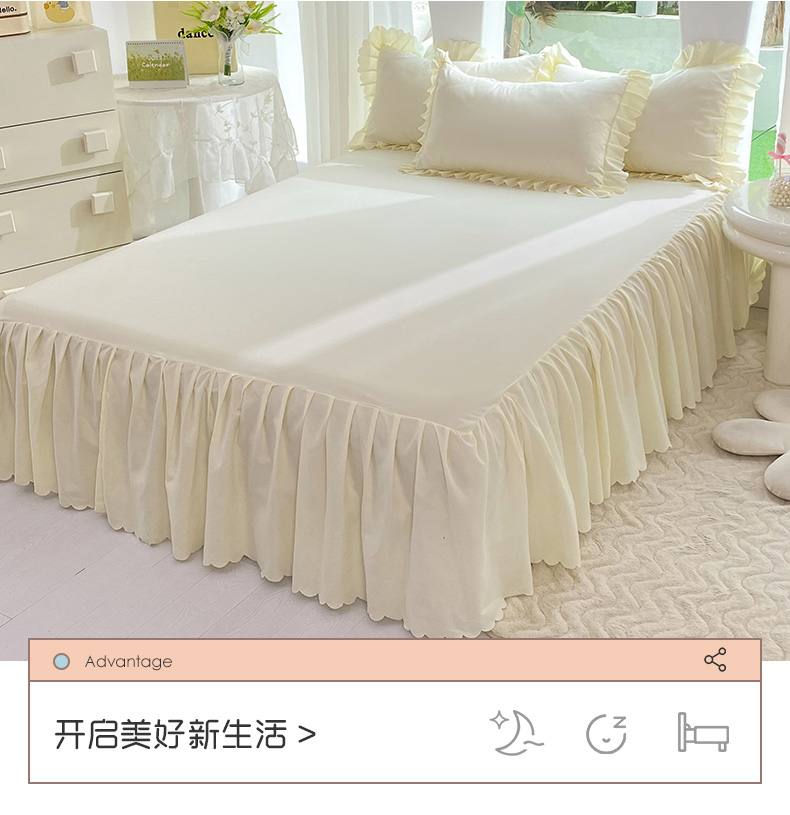 商品名称:莉莉安家纺 2025新款亲肤磨毛单床裙-花园系列 花园-奶油白