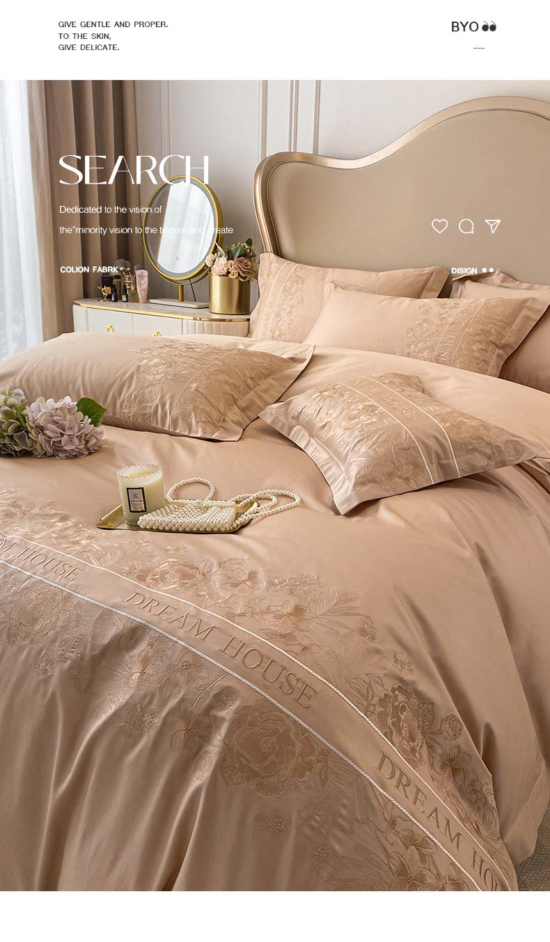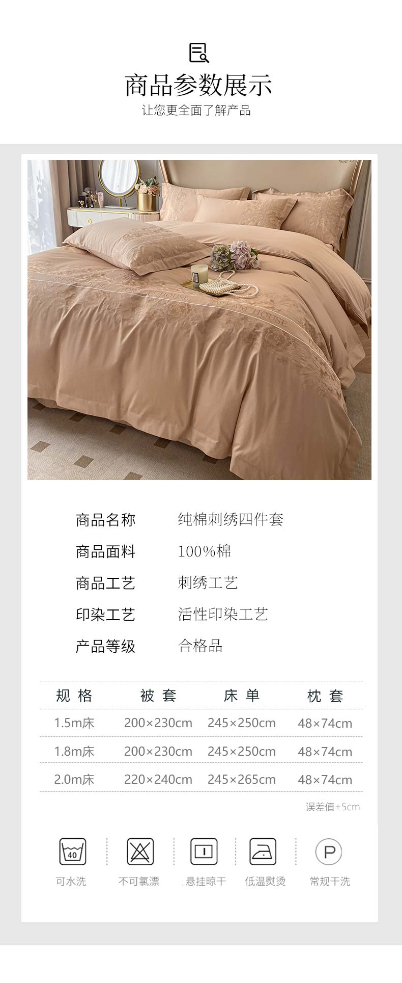 商品名称: 【网红直播爆款】夏季长绒棉四件套纯色纯棉全棉刺绣简约大气天丝棉床单床笠款床上用品 拿铁咖