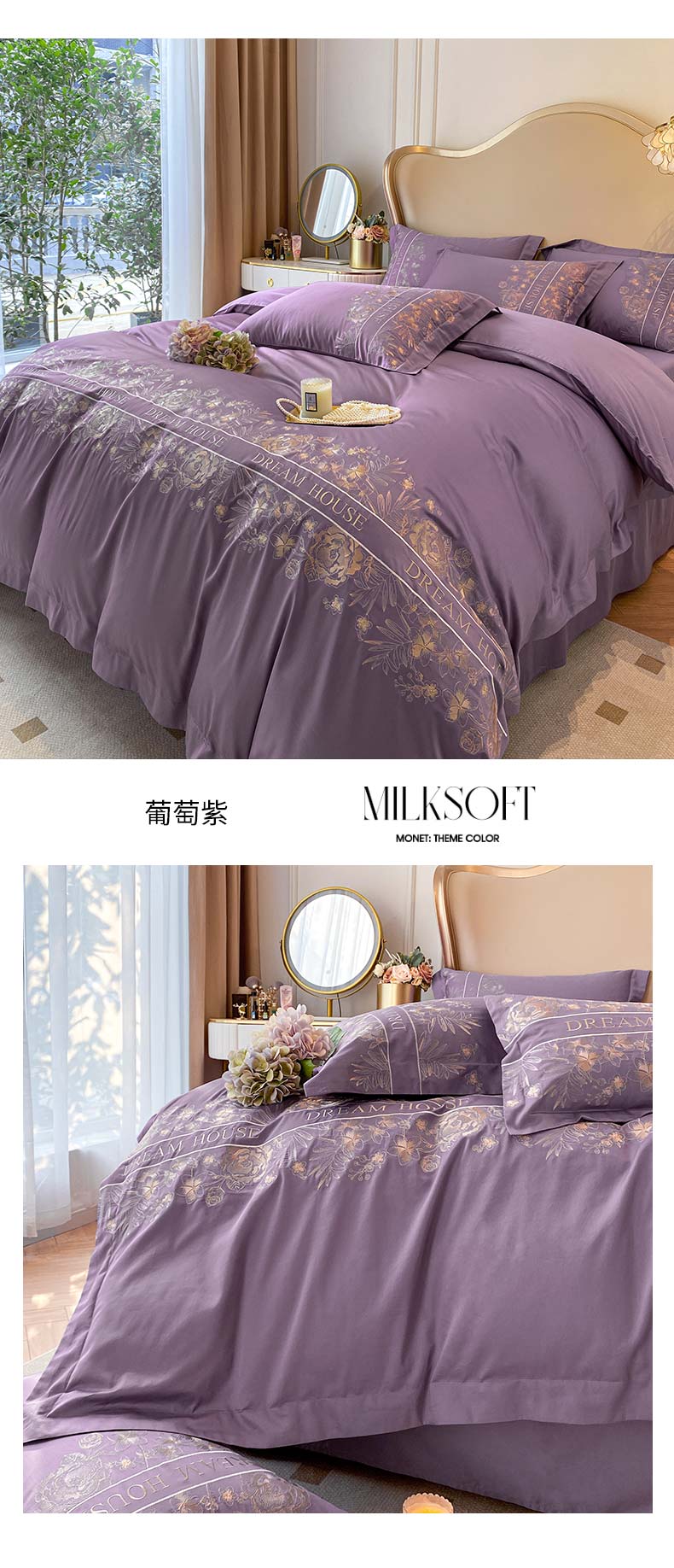 (总)乔利卡沃 2025秋冬新款轻奢高级感加厚保暖全棉纯棉磨毛重工刺绣四件套床上用品花间集,花间集-黛紫,花间集-红桃,花间集-慕蓝,花间集-清绿,花间集-柔杏,花间集-颜粉