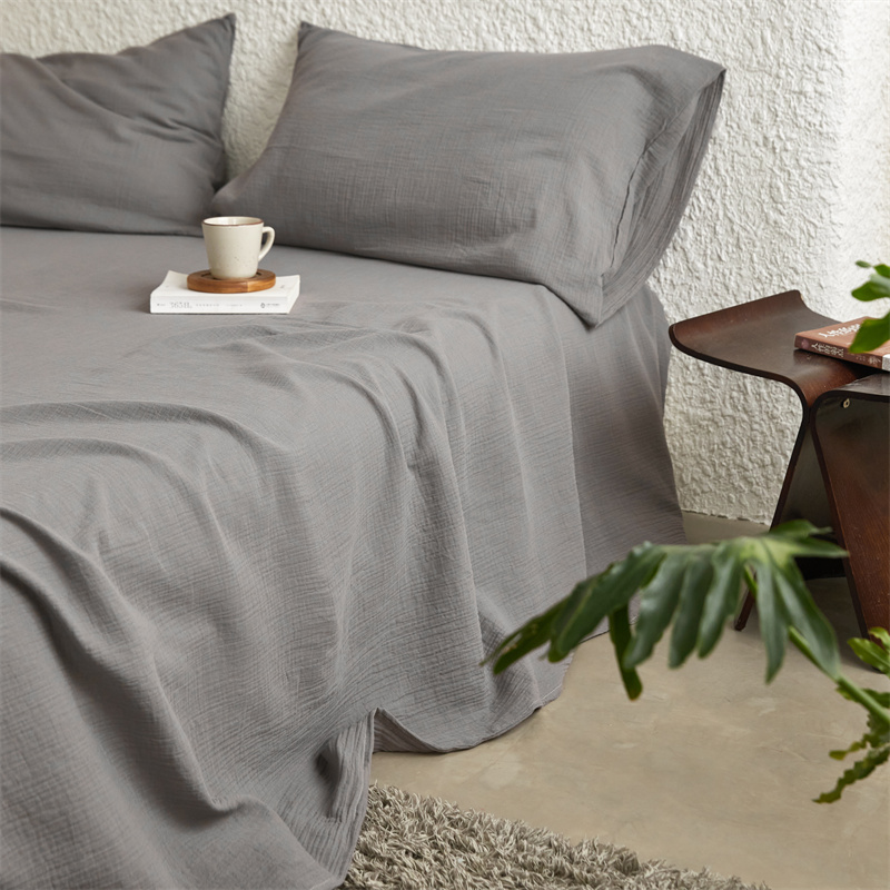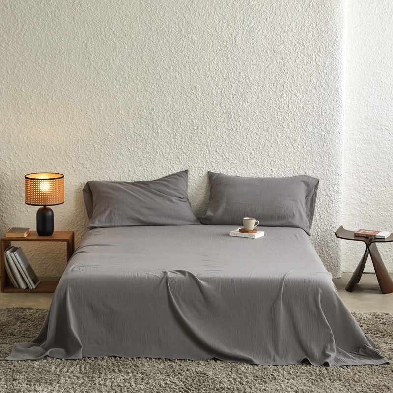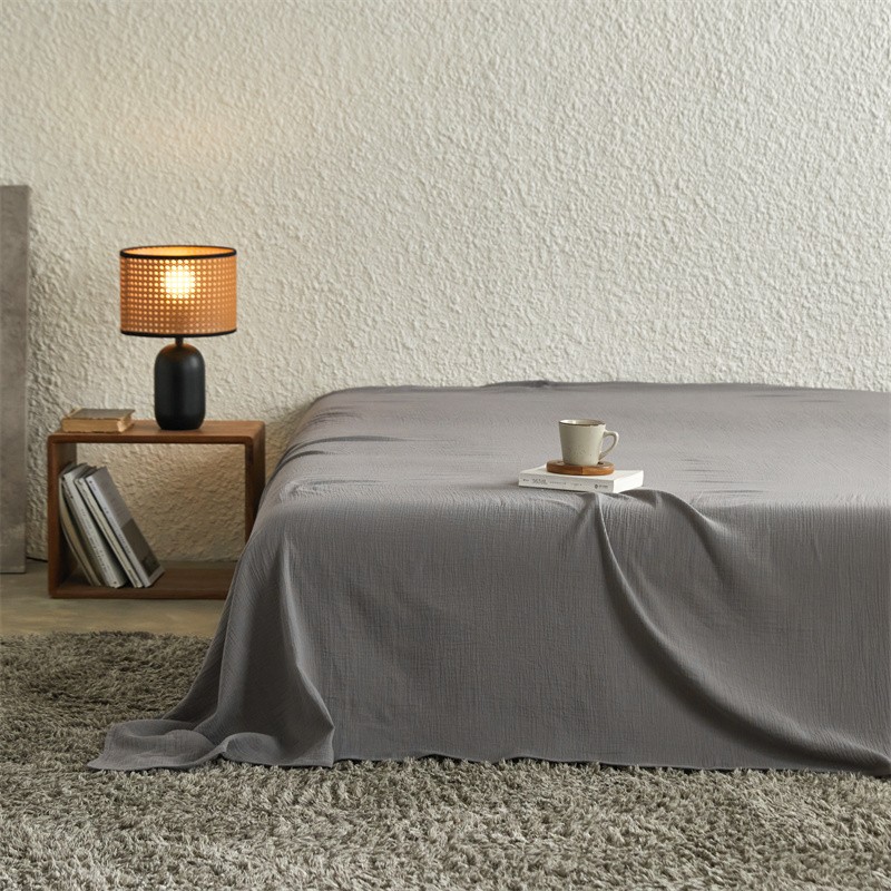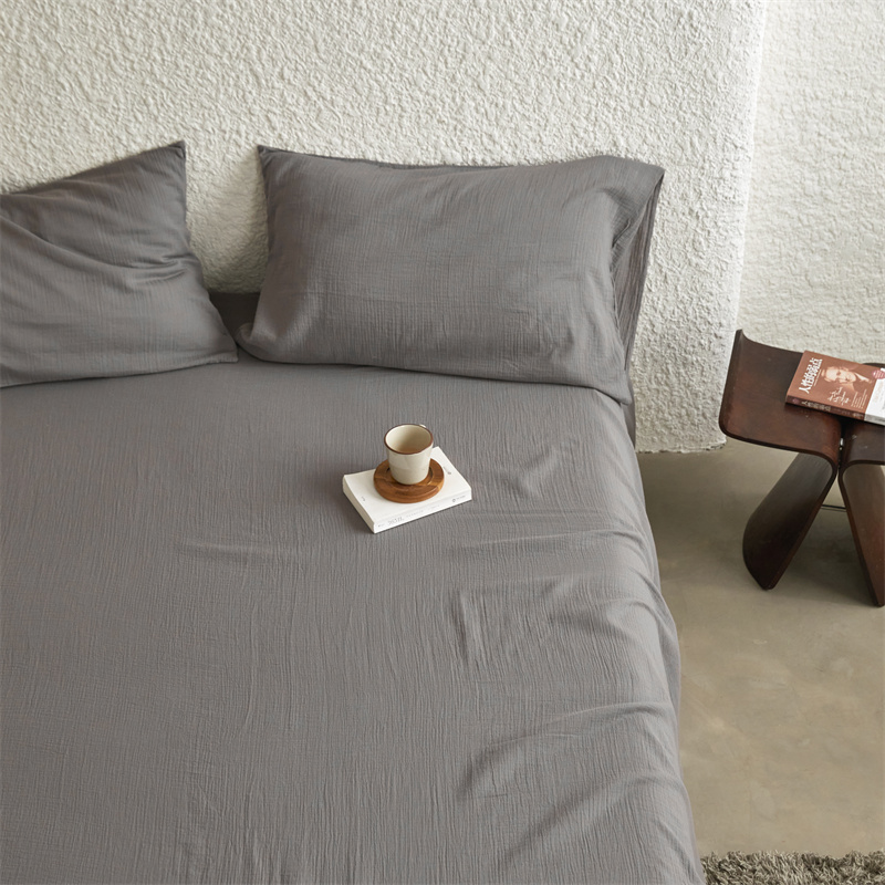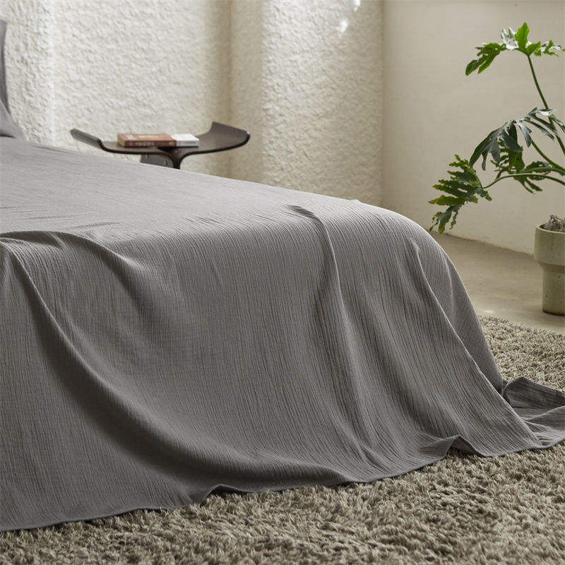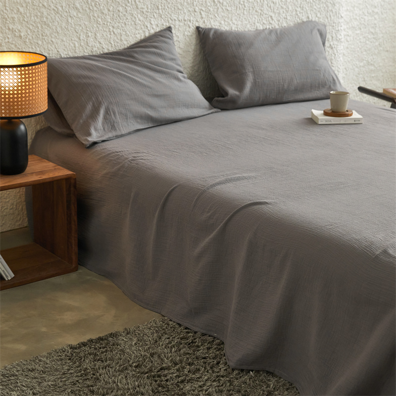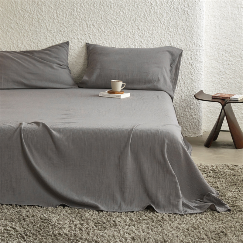 安莱生活2024新款绉纱美拉德色纯色单品床单 水泥