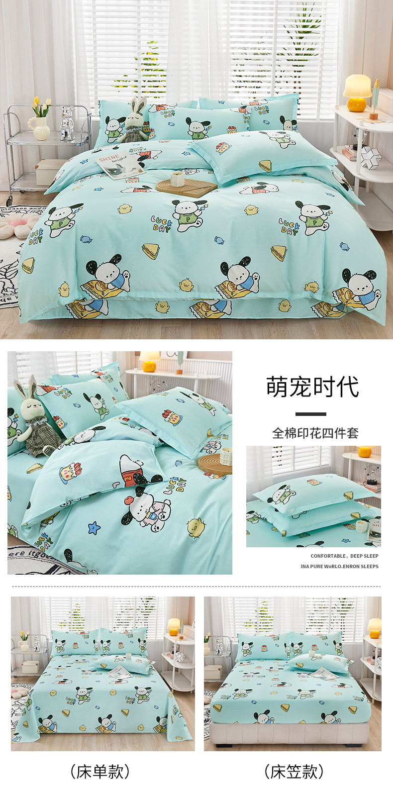 当前位置: 91家纺网 > 商品网购 > 床品套件 > 四件套 > 全棉普通四件套 > 名优家纺 2024新款13070套件系列 全棉印花四件套 萌宠时代