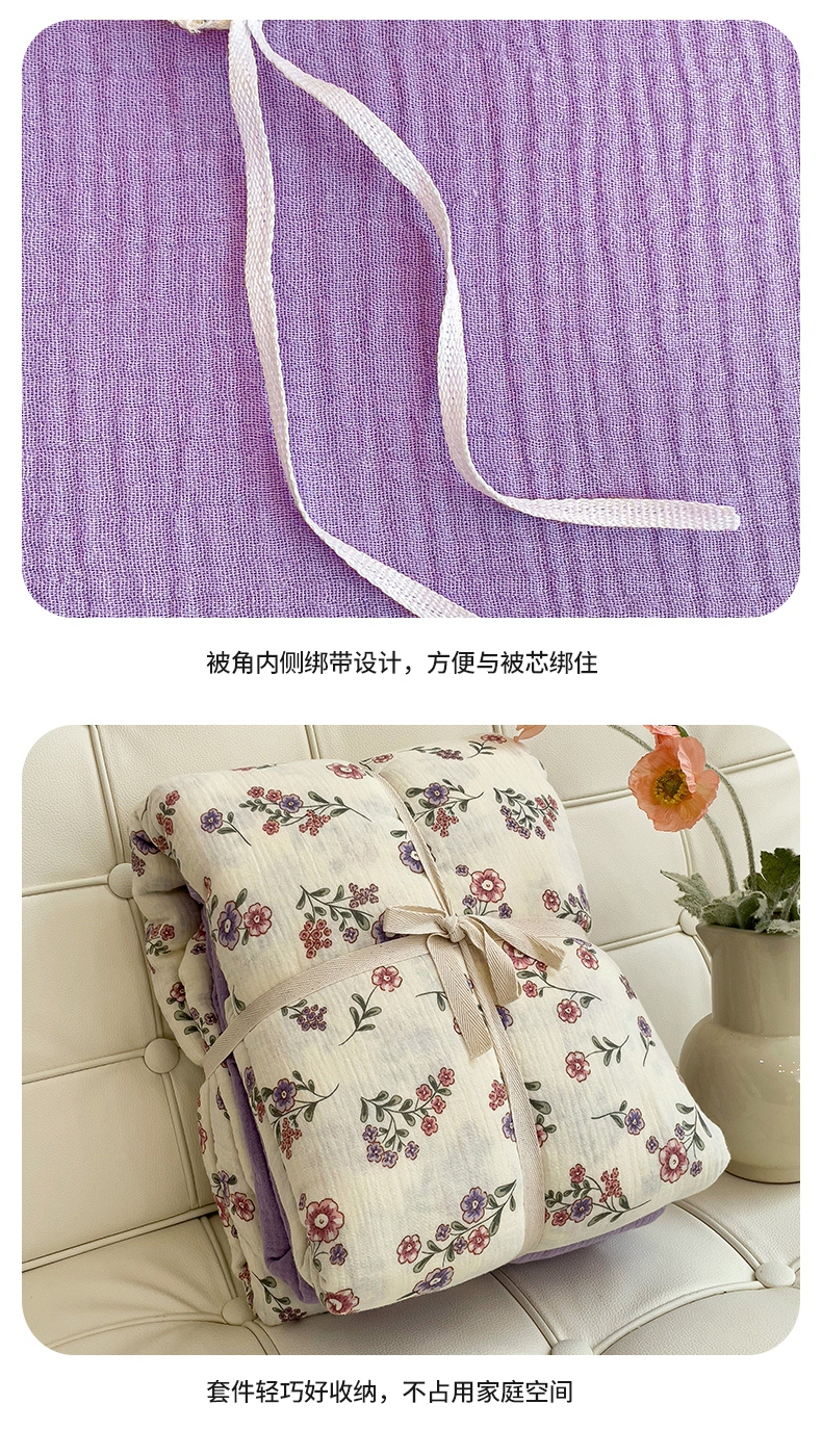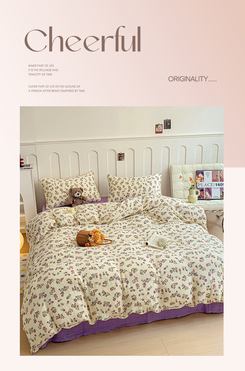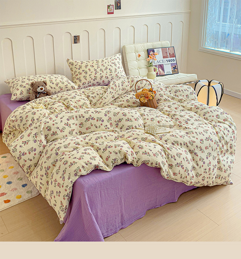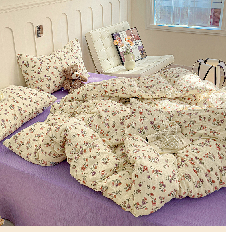 珺柔家纺 2024新款全棉皱皱双层纱印花四件套 花容
