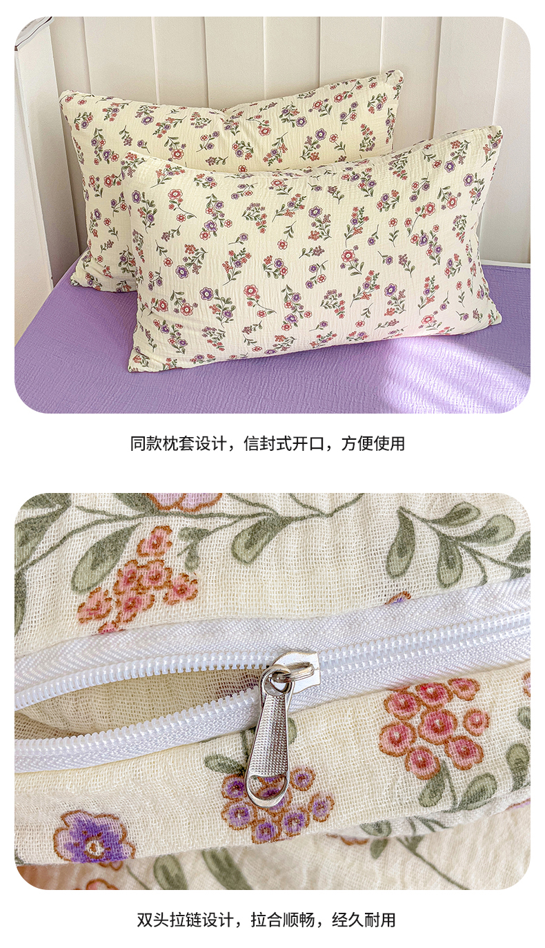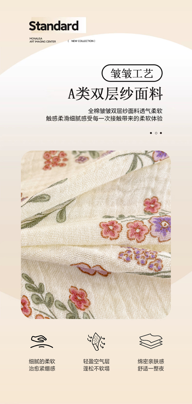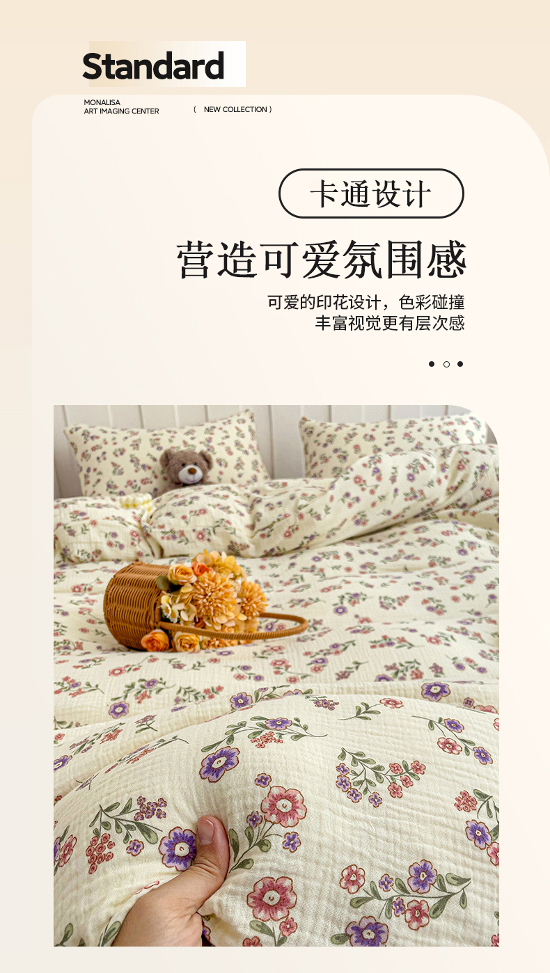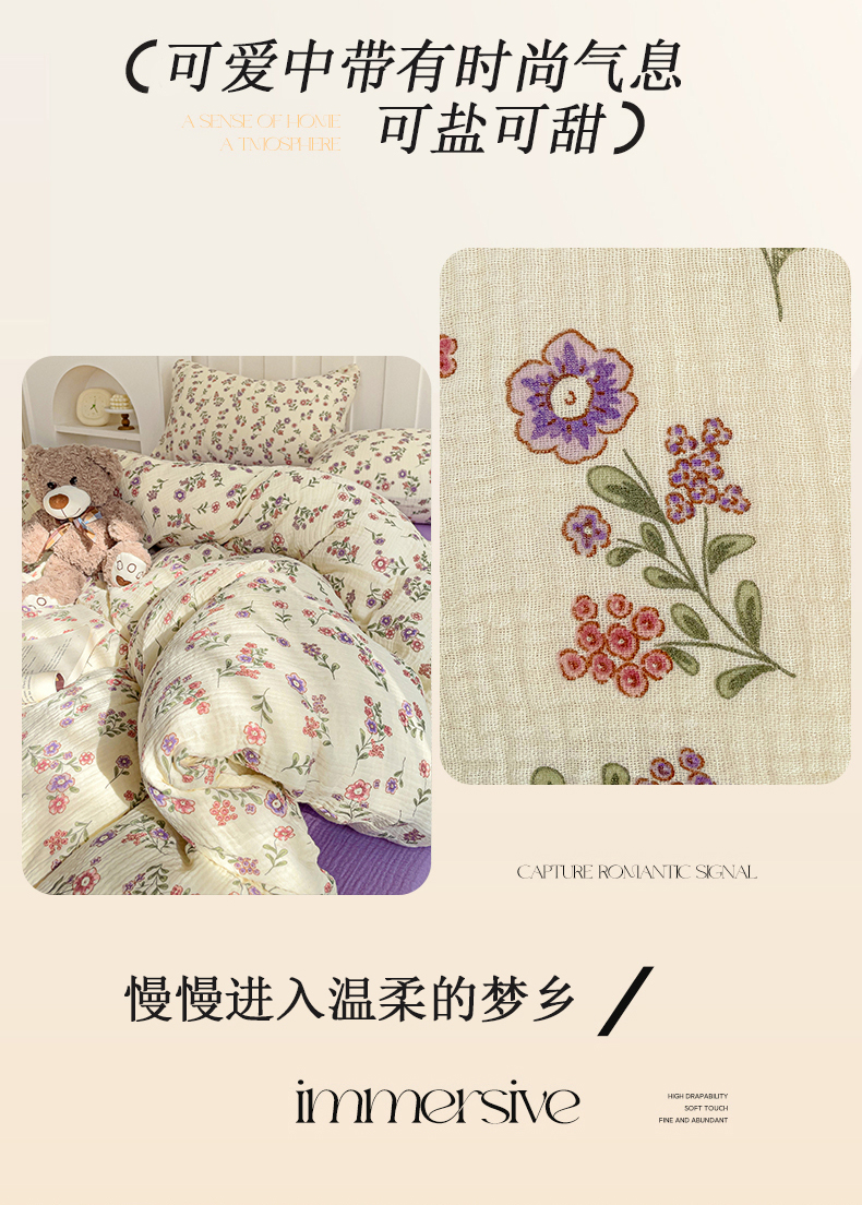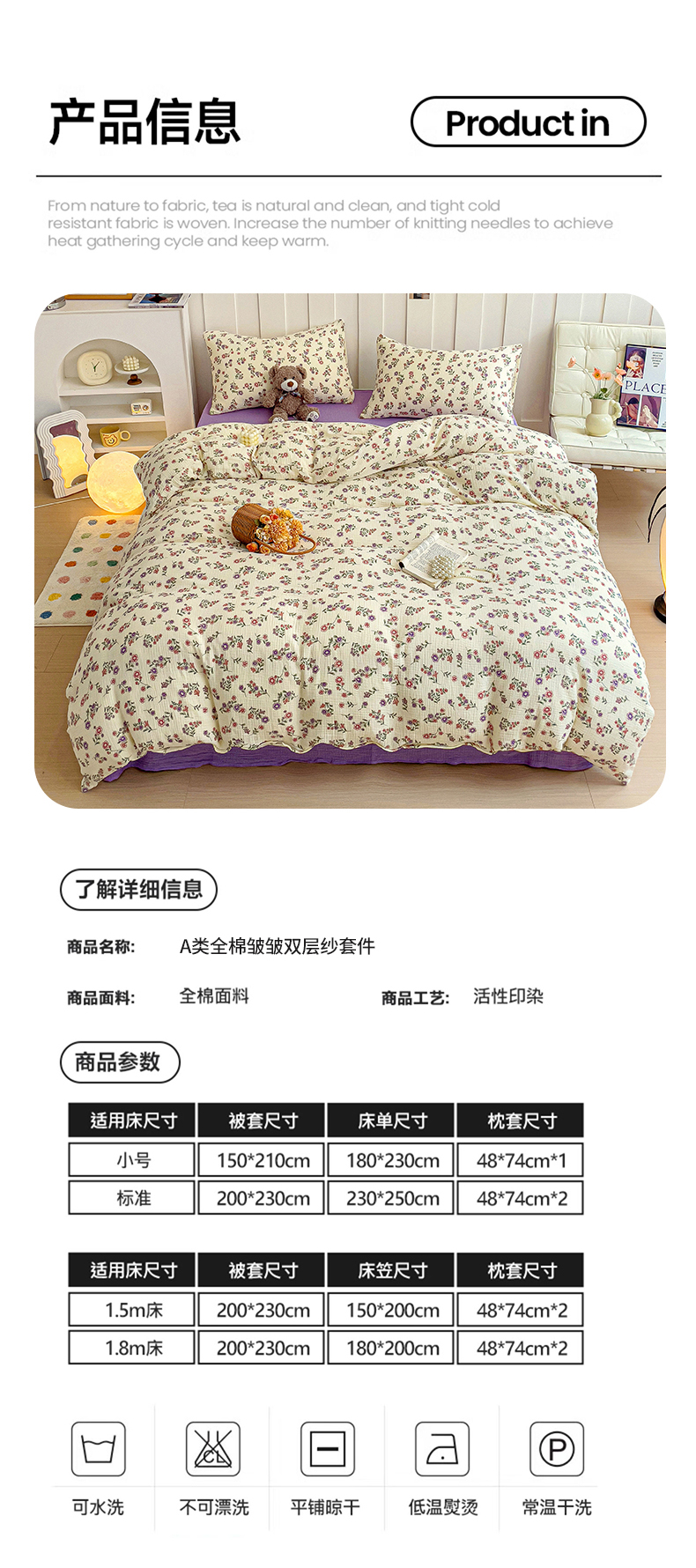 商品名称:珺柔家纺 2024新款全棉皱皱双层纱印花四件套 花容