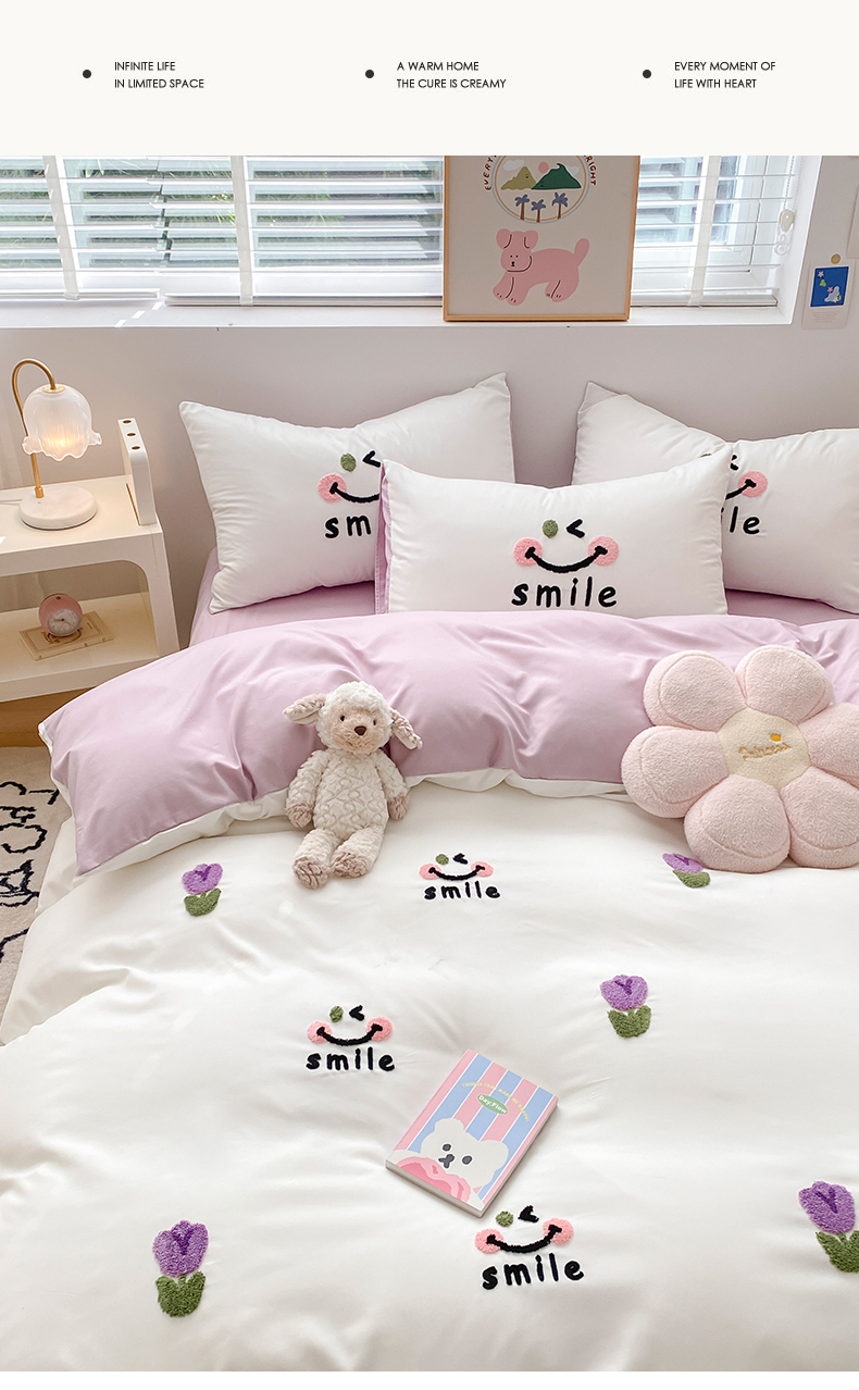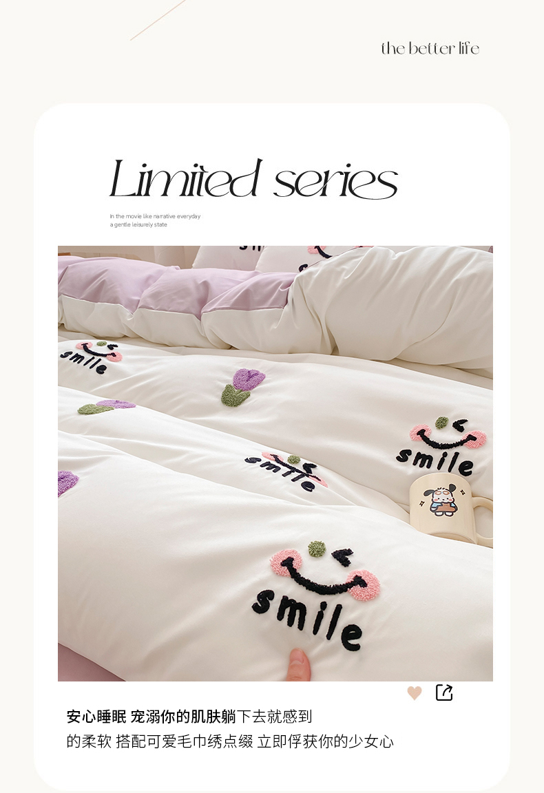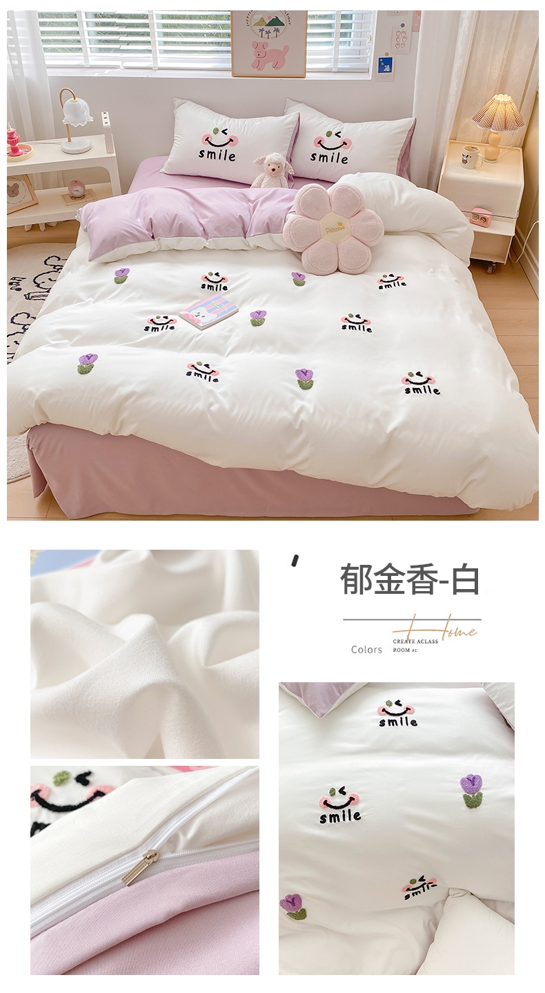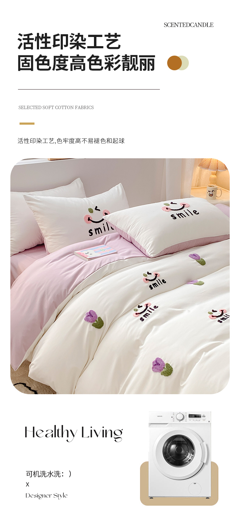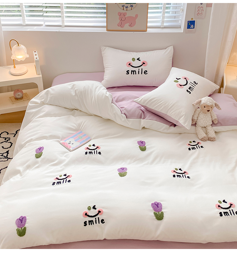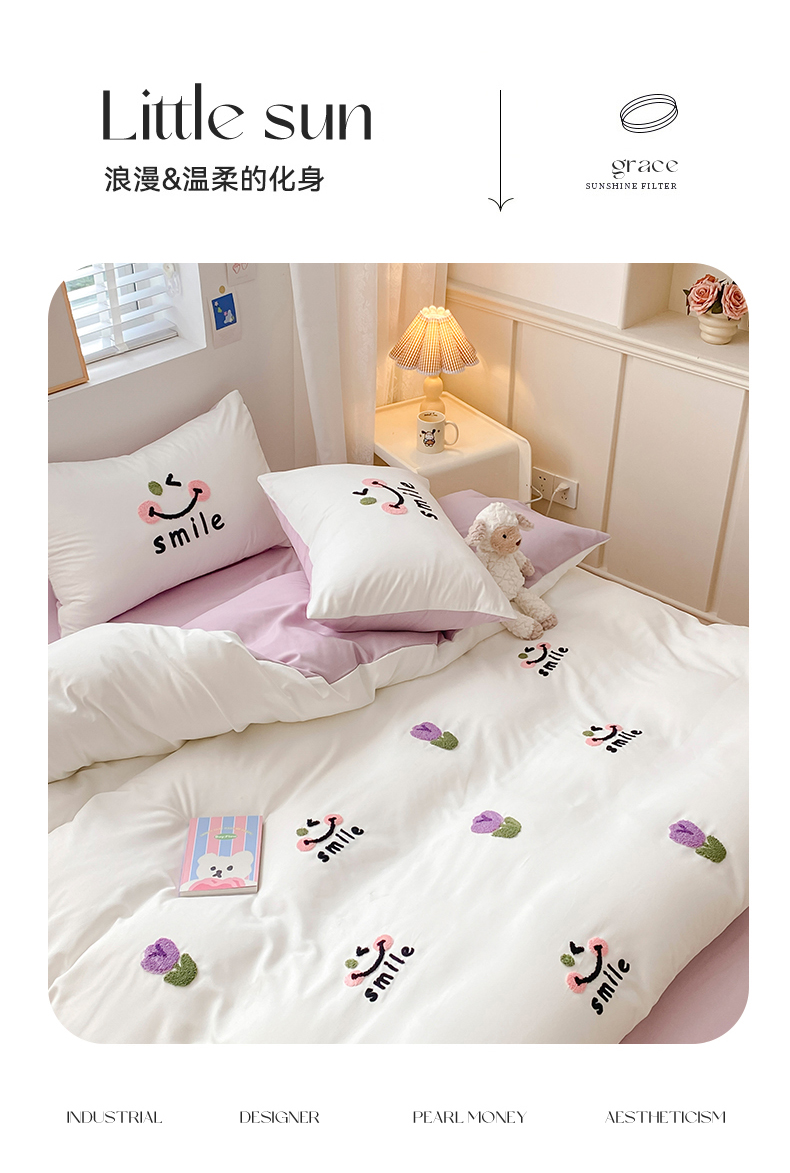 (总) 尤米 2024新款奶油风水洗棉四件套,可爱狗-白,可爱狗-粉,小熊猫-黄,小熊猫-蓝,郁金香-白,郁金香-绿