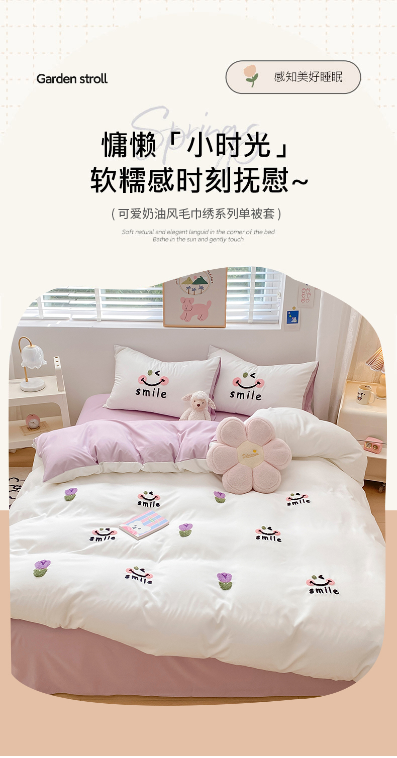 (总)尤米 2024新款可爱萝卜兔水洗棉毛巾绣四件套 学生床,萝卜兔-嫩黄,萝卜兔-浅粉,萝卜兔-浅蓝,萝卜兔-浅绿