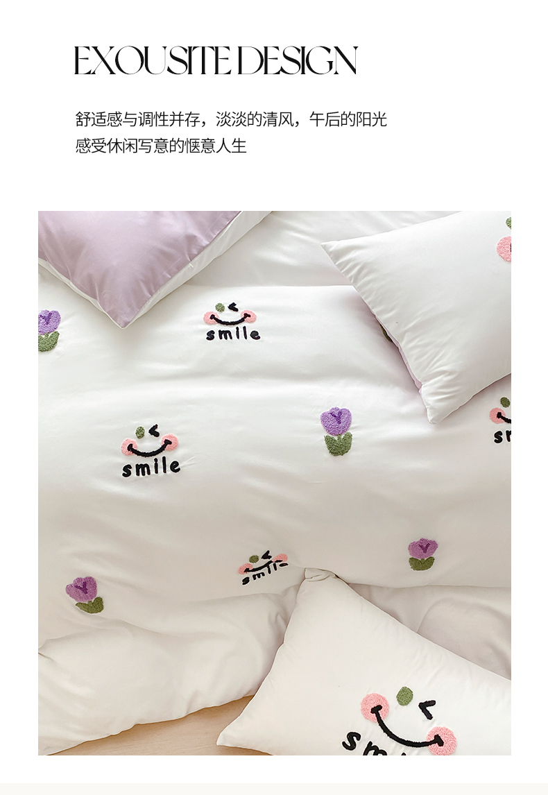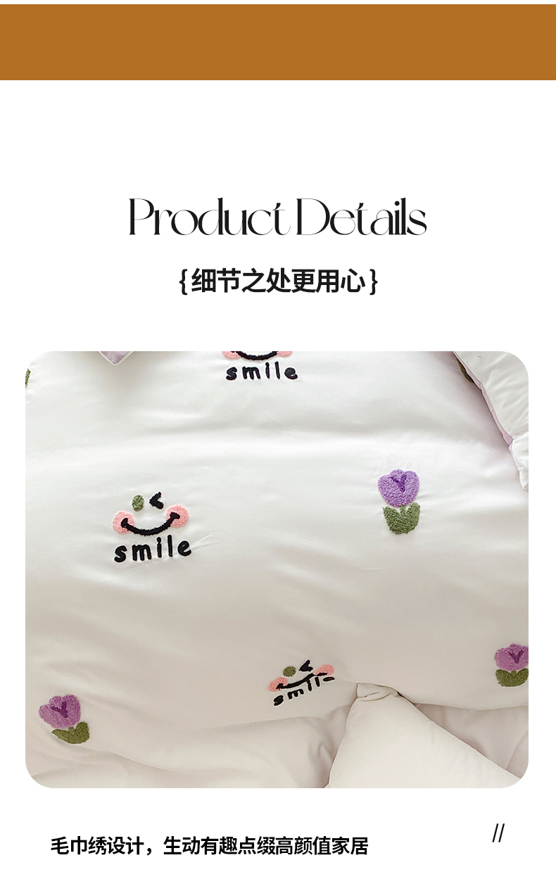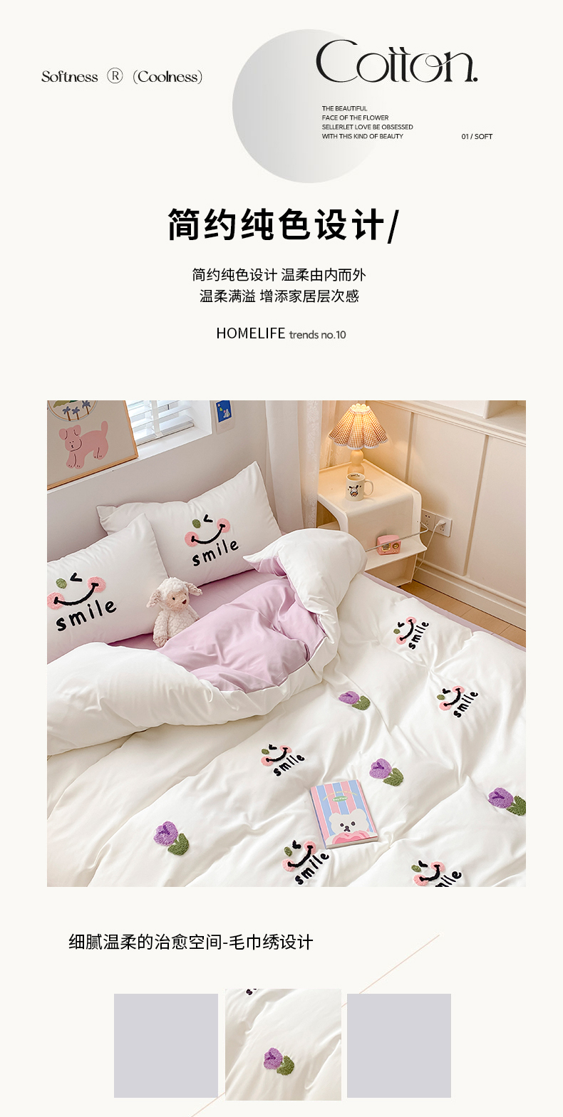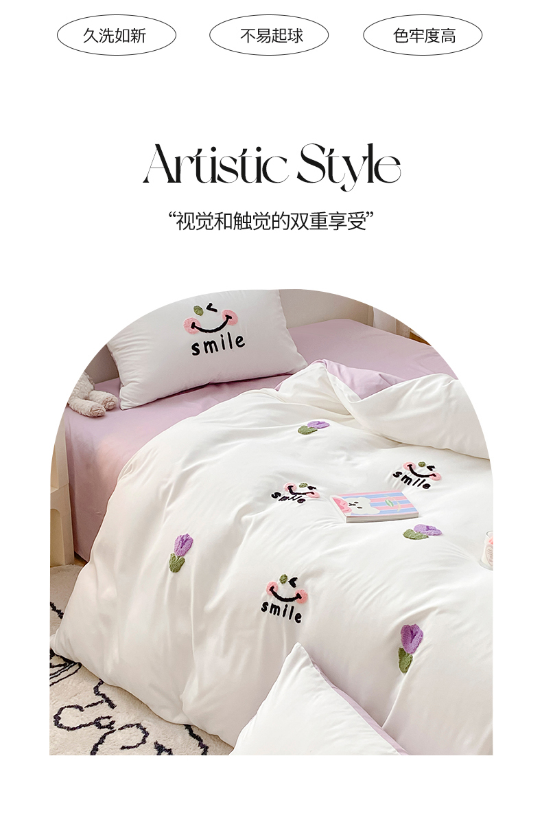 商品名称:尤米 2024新款奶油风水洗棉系列单被套 郁金香-白