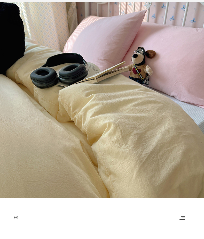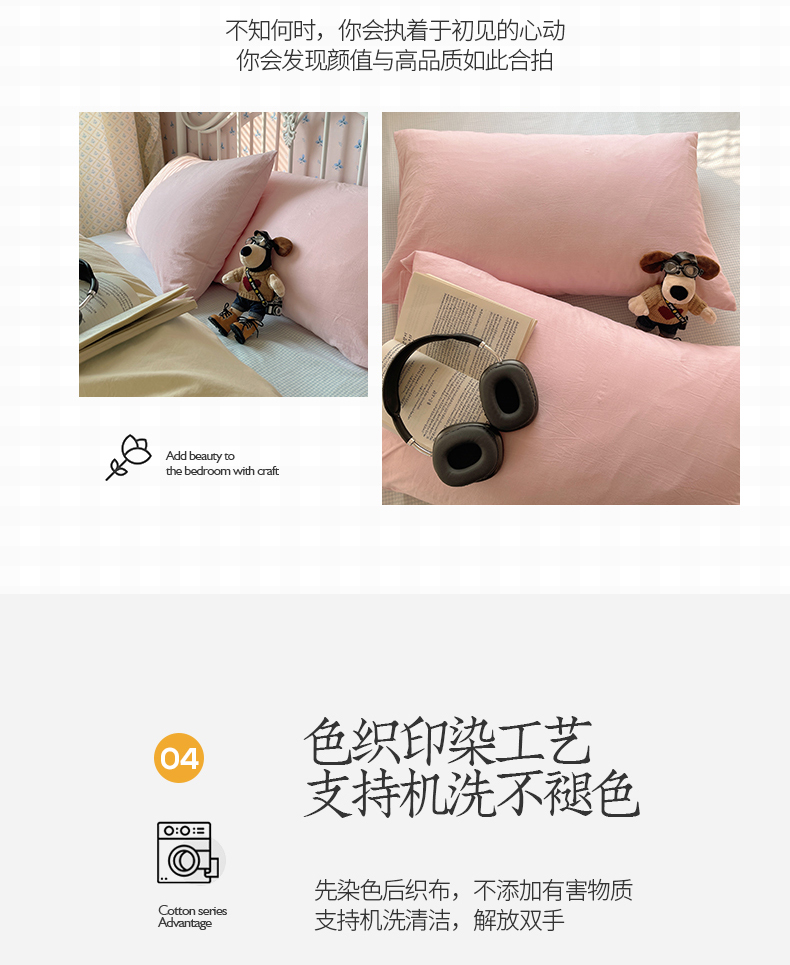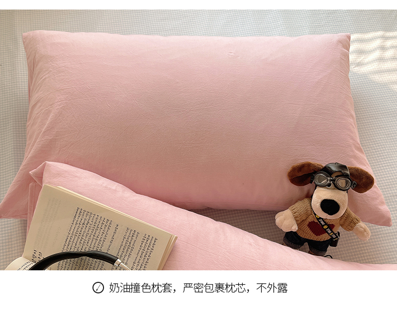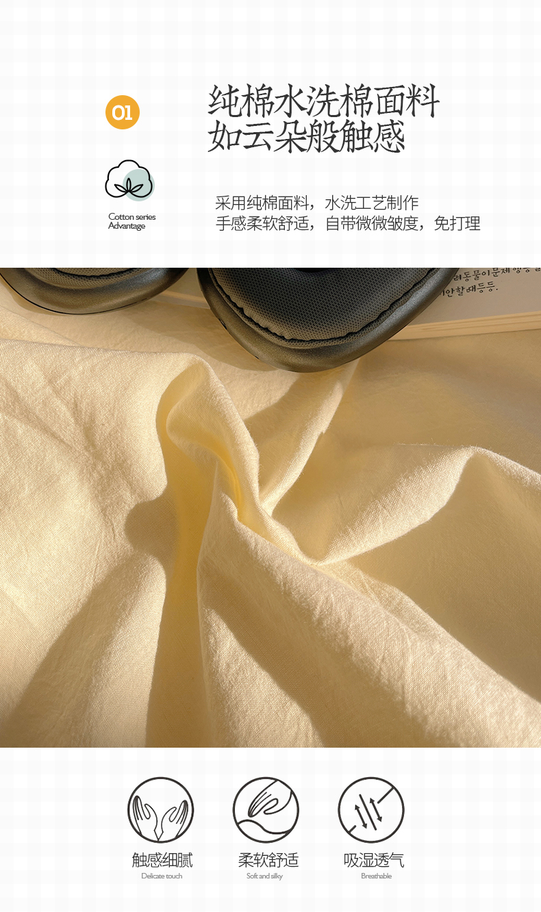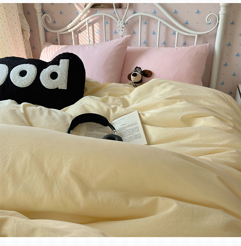 商品名称:桃子家居 2024新款ins少女软糯奶油撞色色织水洗棉纯棉系列四件套 水洗棉-色织日光黄