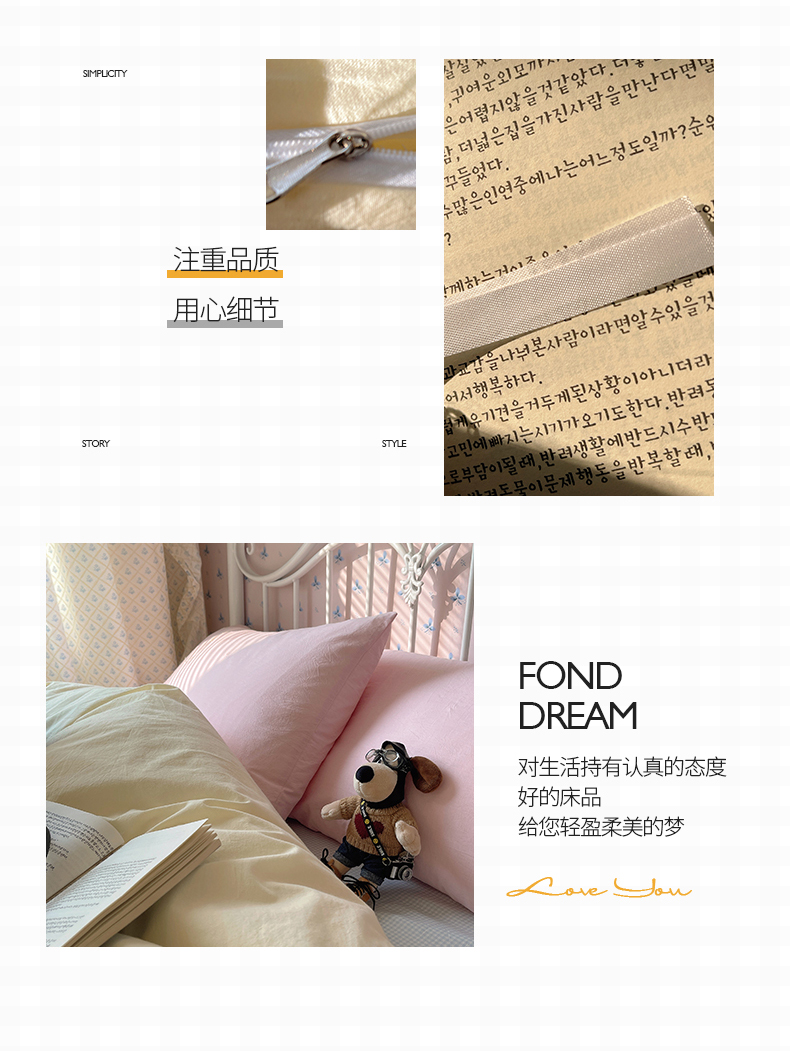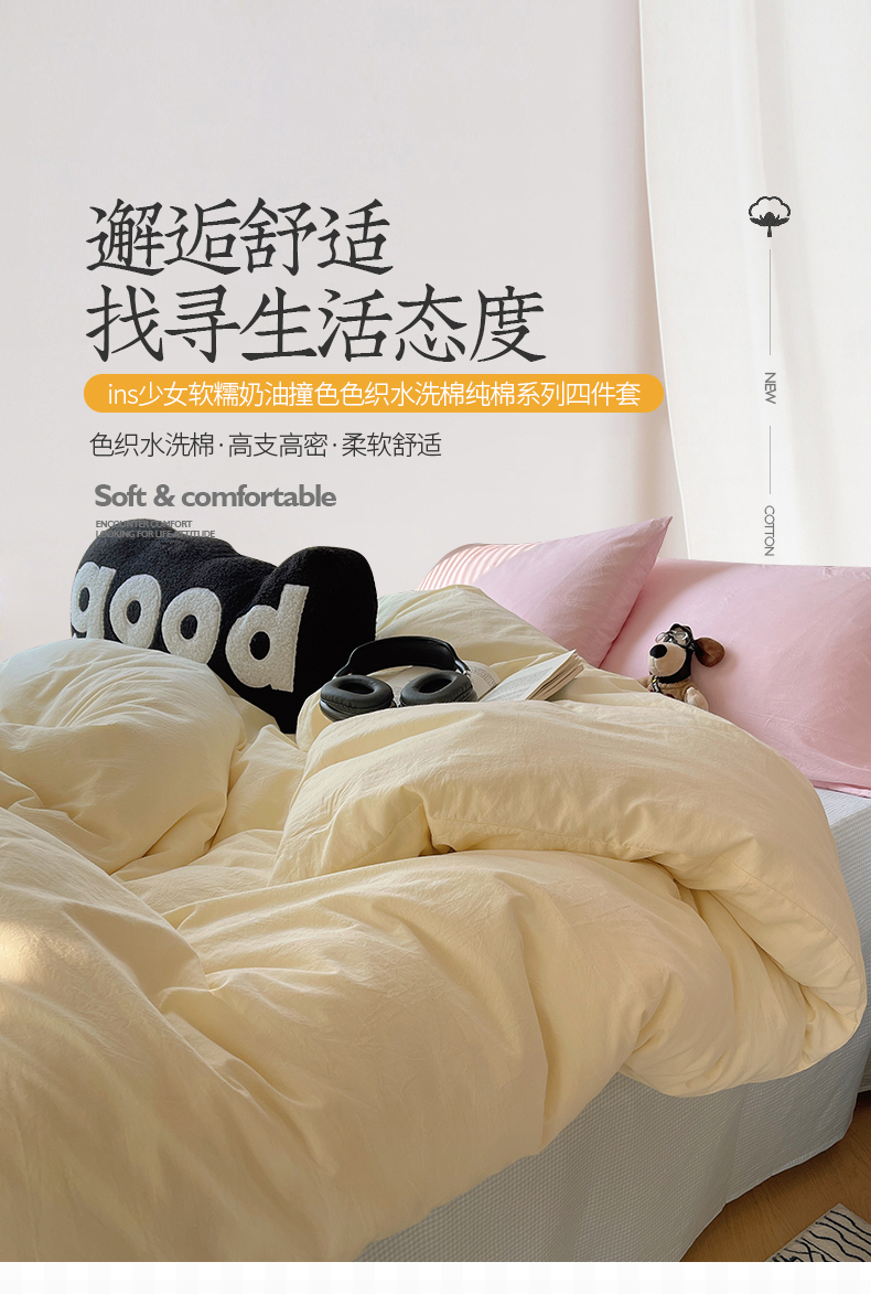 桃子家居 2024新款ins少女软糯奶油撞色色织水洗棉纯棉系列四件套 水洗棉-色织日光黄