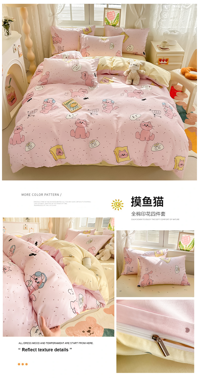 沐辰 2024新款13372全棉印花四件套(第二批) 摸鱼猫