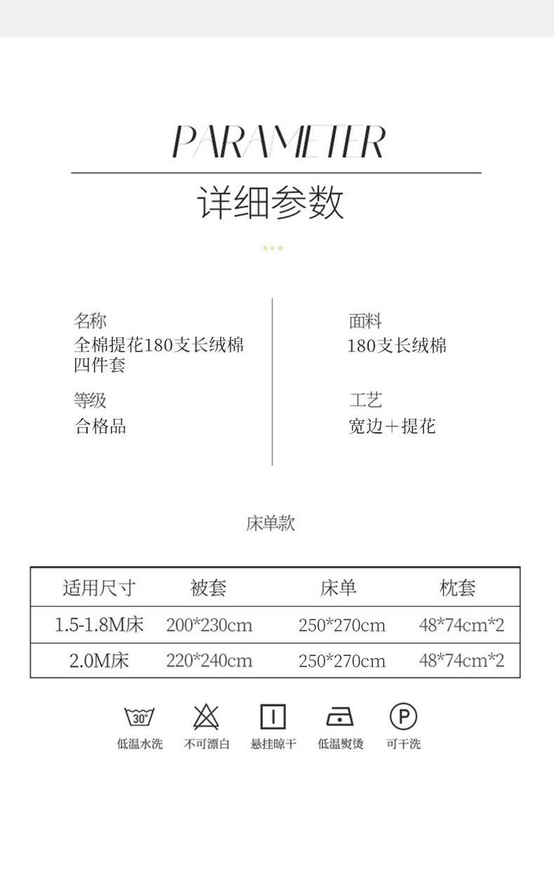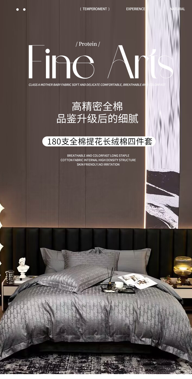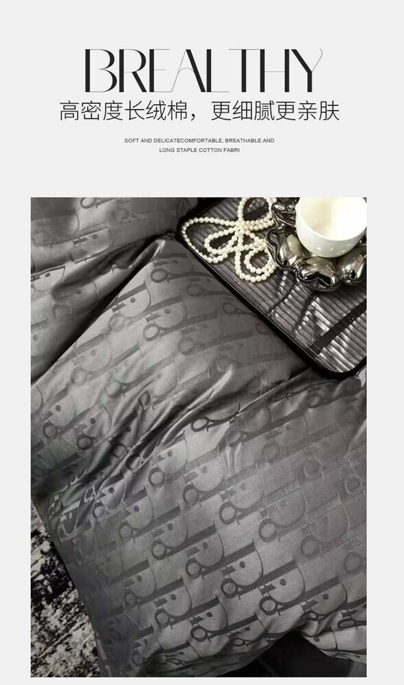 商品名称:卡迪亚家纺 2024新款180支长绒棉提花四件套 太空灰