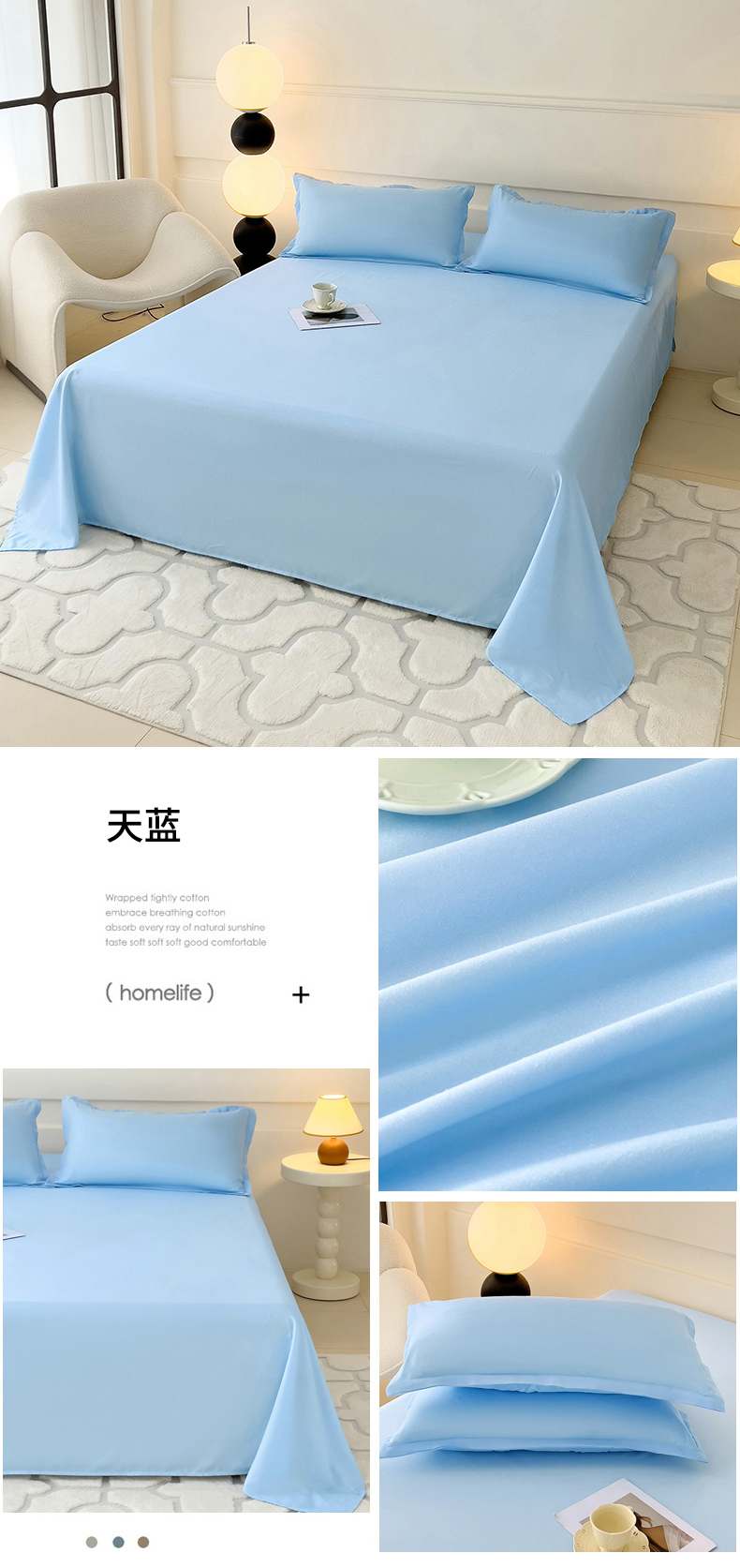 • 91家纺网 家纺一手货源 找家纺 楠沐家纺  2025年新款纯色亲肤芦荟棉水洗棉床单系列床单枕套 天蓝