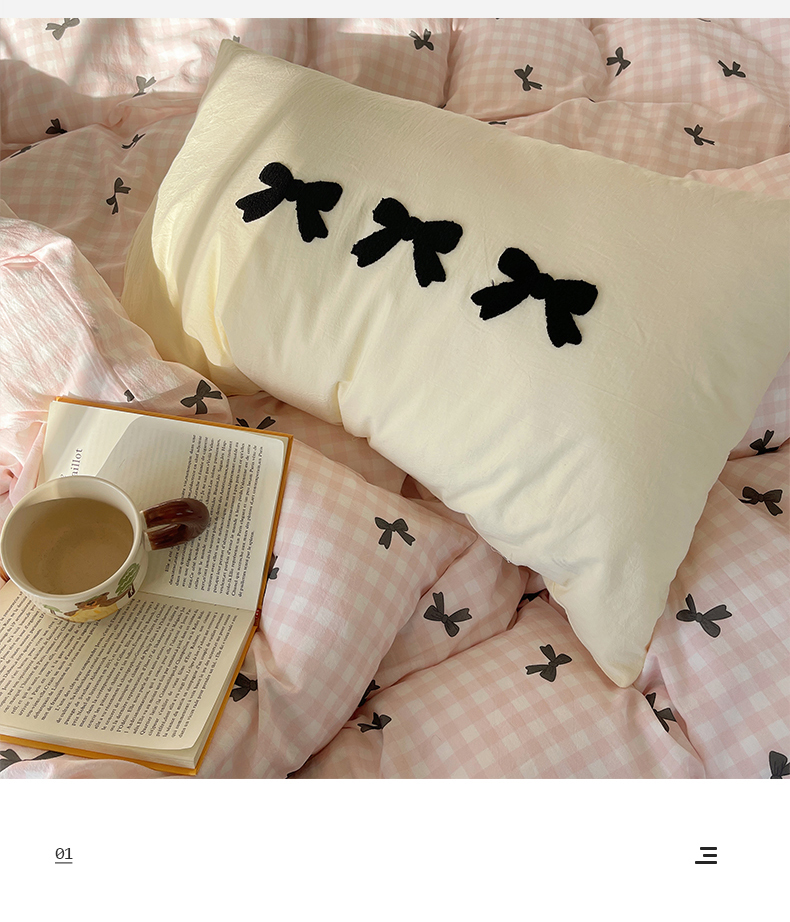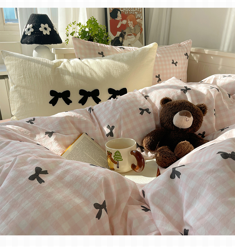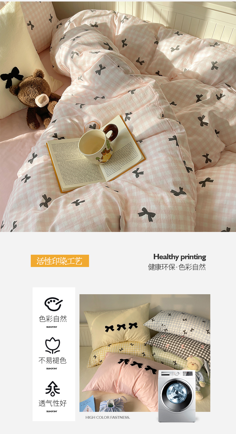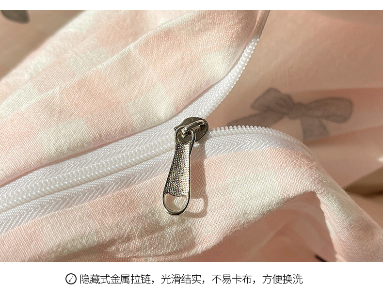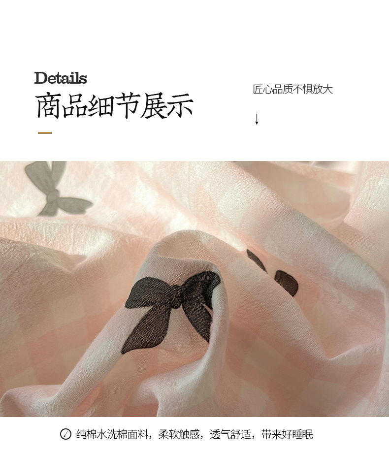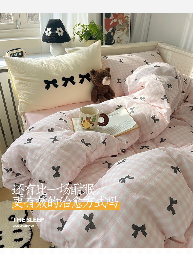 当前位置: 91家纺网 > 商品网购 > 床品套件 > 四件套 > 全棉普通四件套 > 桃子家居 2024新款A类纯棉水洗棉毛巾绣蝴蝶结少女系列四件套 水洗棉-蝴蝶结粉黑+粉黄