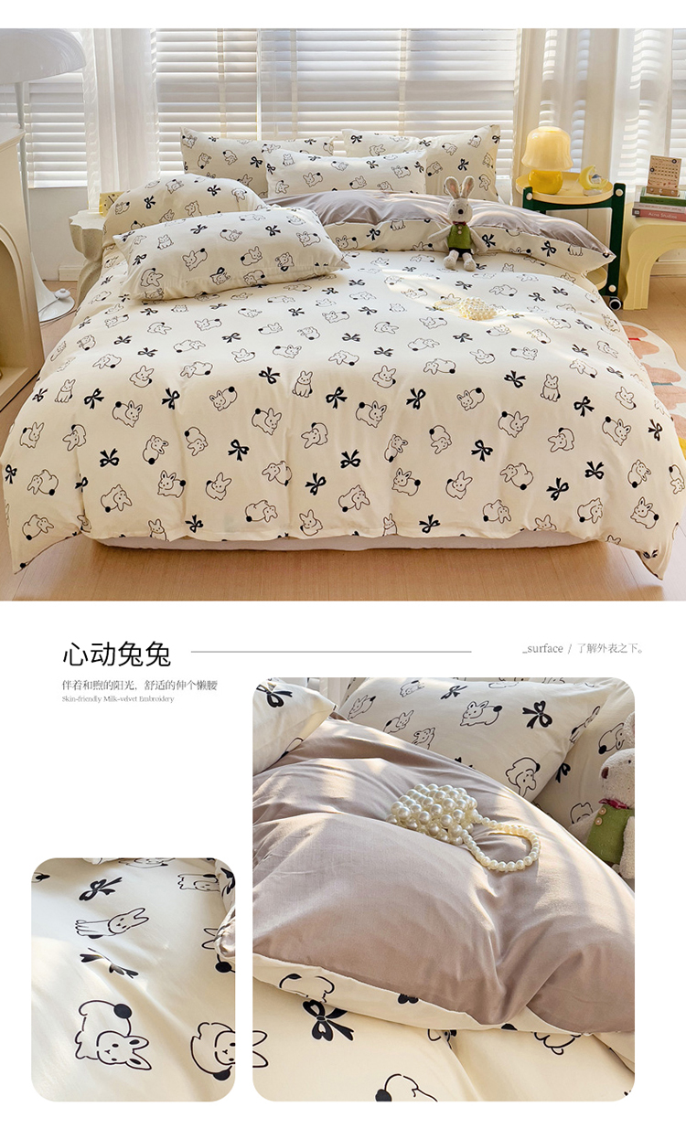 商品名称:纽缦家纺 2024水洗双层纱被套 心动兔兔