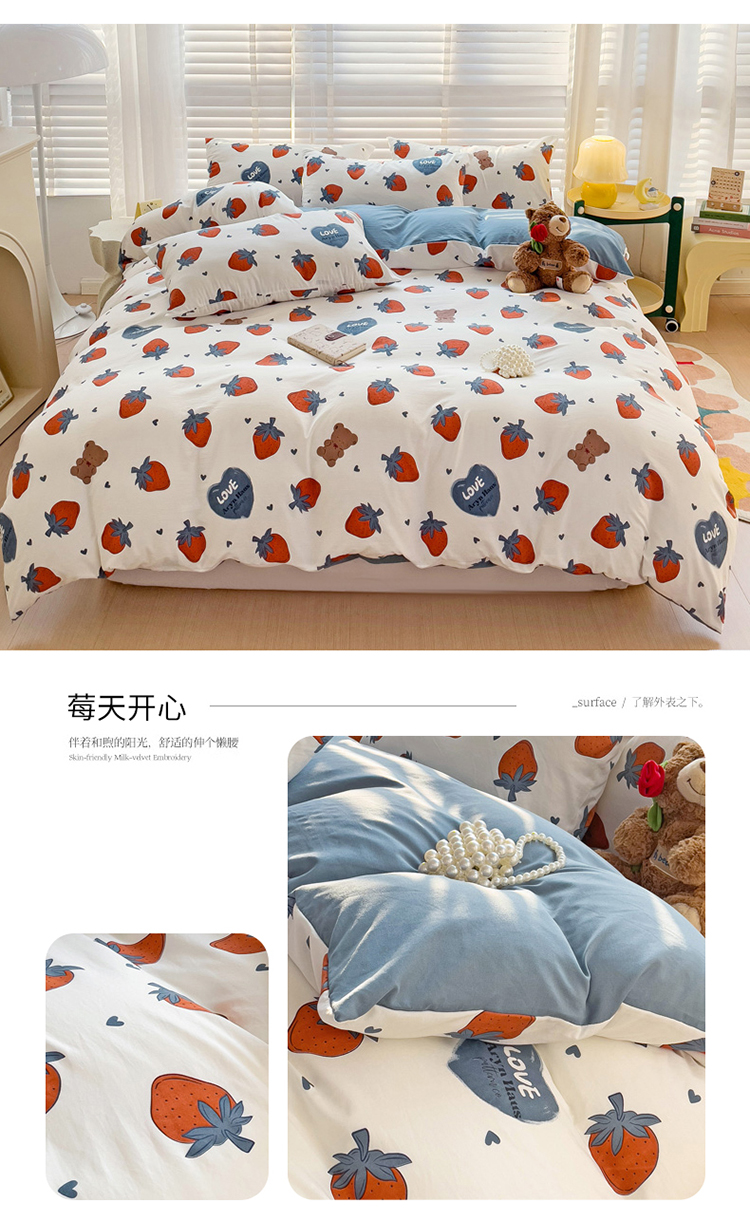 商品名称:纽缦家纺 2024水洗双层纱被套 莓天开心
