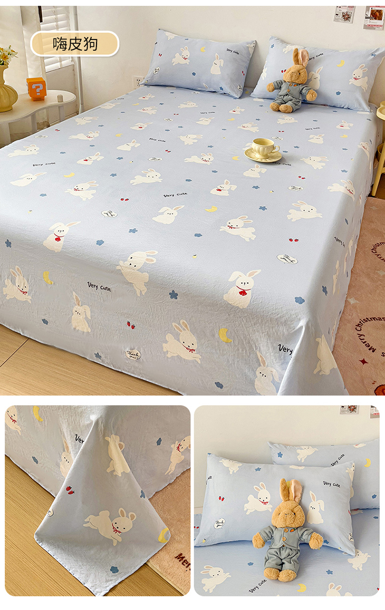 纽缦家纺 2024水洗双层纱床单 嗨皮狗
