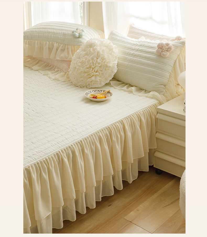 • 91家纺网 家纺一手货源 找家纺 菊上家纺 2024新款花儿朵朵系列单床裙 云柔白