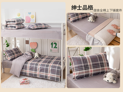 纯棉印花13070学生三件套寝室全棉宿舍床套件上下铺床品 绅士品格