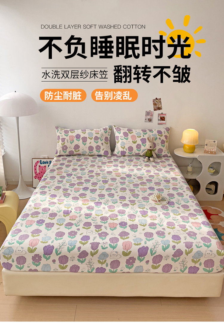 (总)纽缦家纺 2024水洗双层纱单床笠