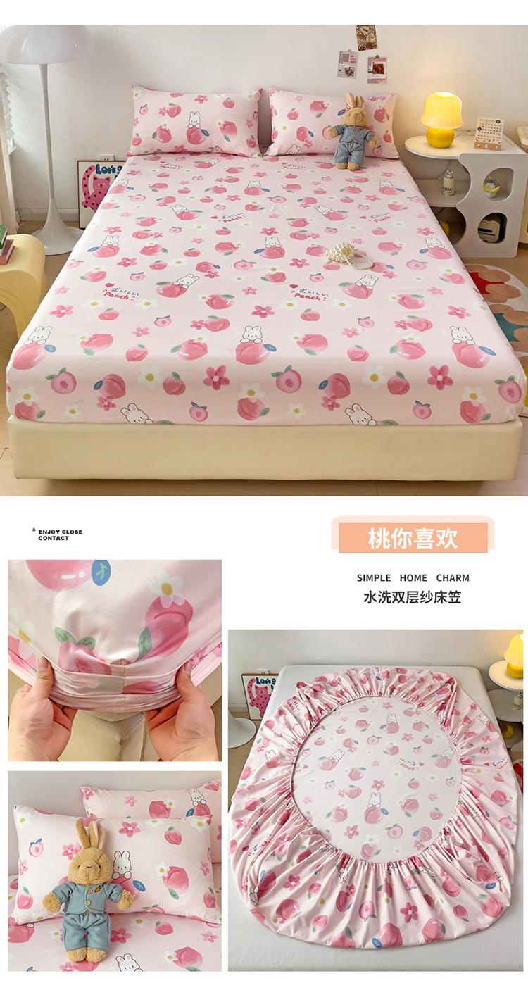 商品名称:纽缦家纺 2024水洗双层纱单床笠 桃你喜欢