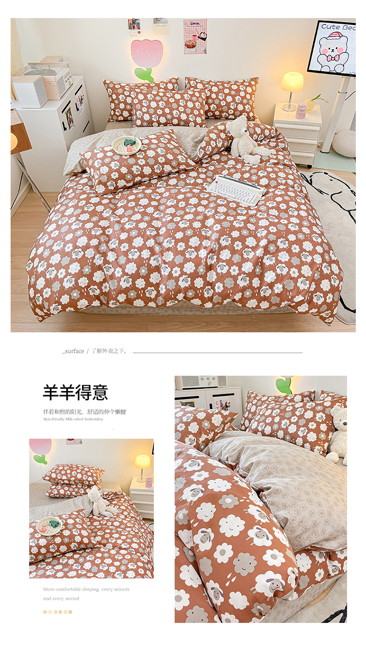当前位置: 91家纺网 > 商品网购 > 床品套件 > 四件套 > 全棉普通四件套 > 川悦生活 2024爆款13372全棉卡通小清新四件套三件套 羊羊得意