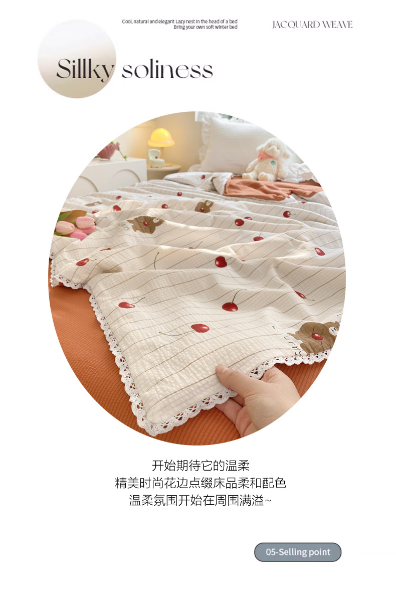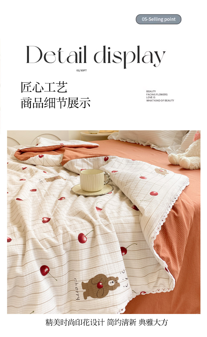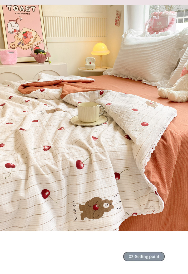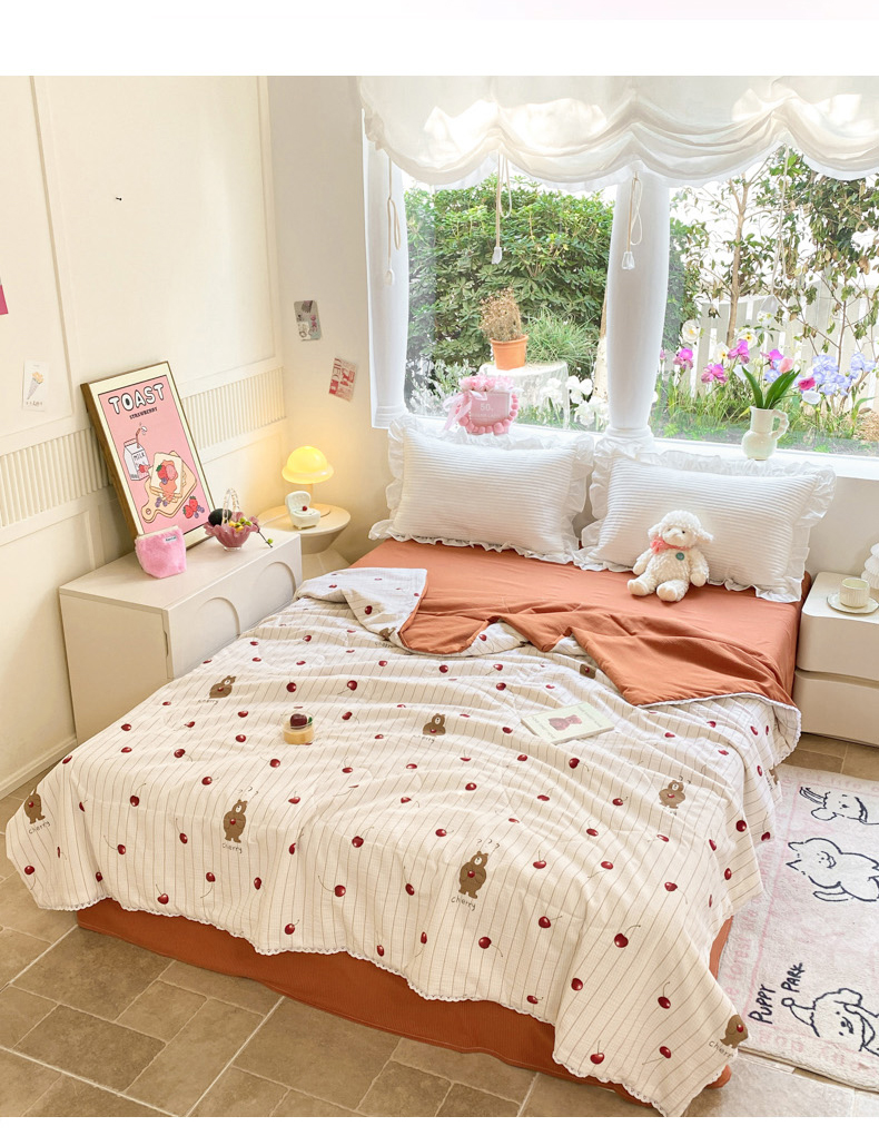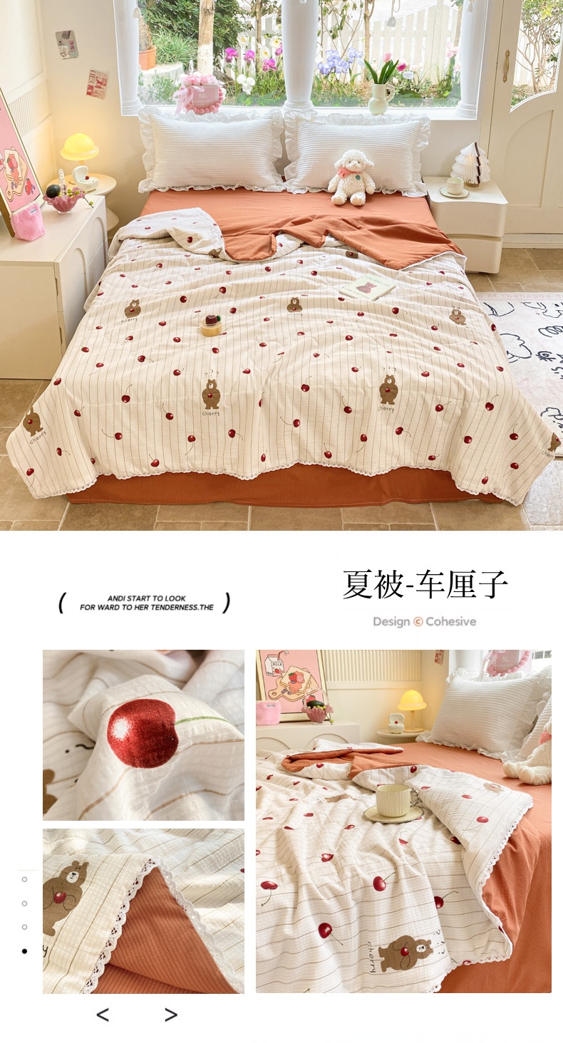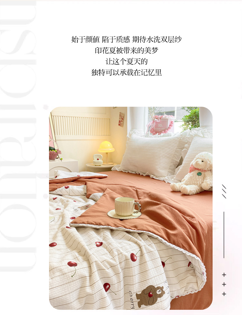 商品名称:慕澄家纺 2024新款时尚印花泡泡棉花边夏被夏凉被空调被 夏被-车厘子