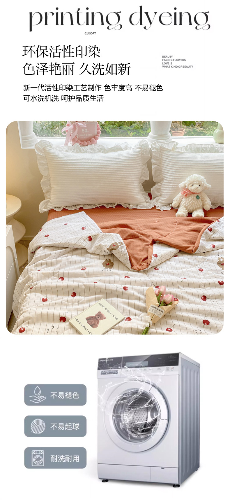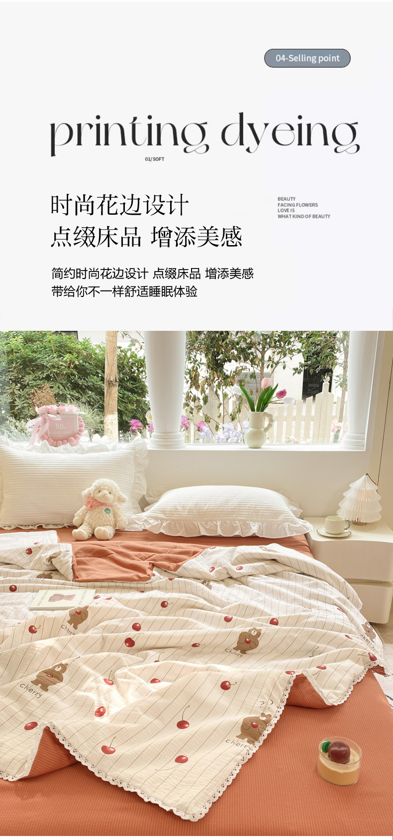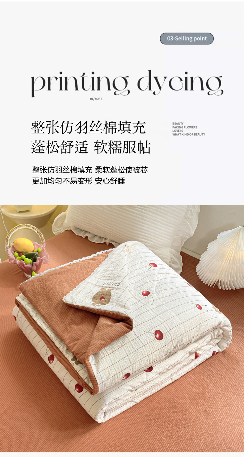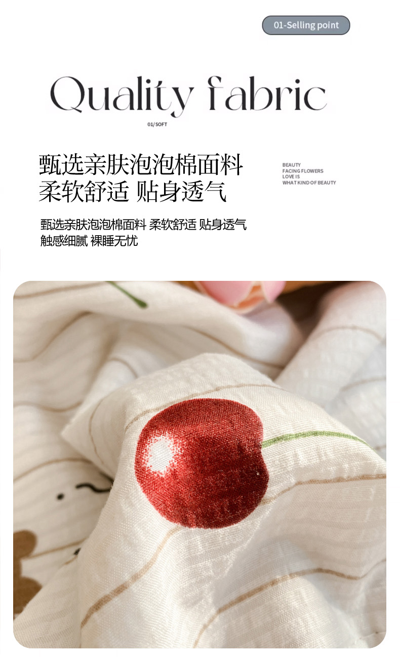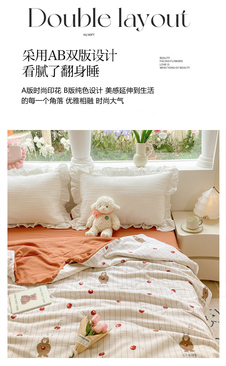 商品名称:慕澄家纺 2024新款时尚印花泡泡棉花边夏被夏凉被空调被 夏被-车厘子