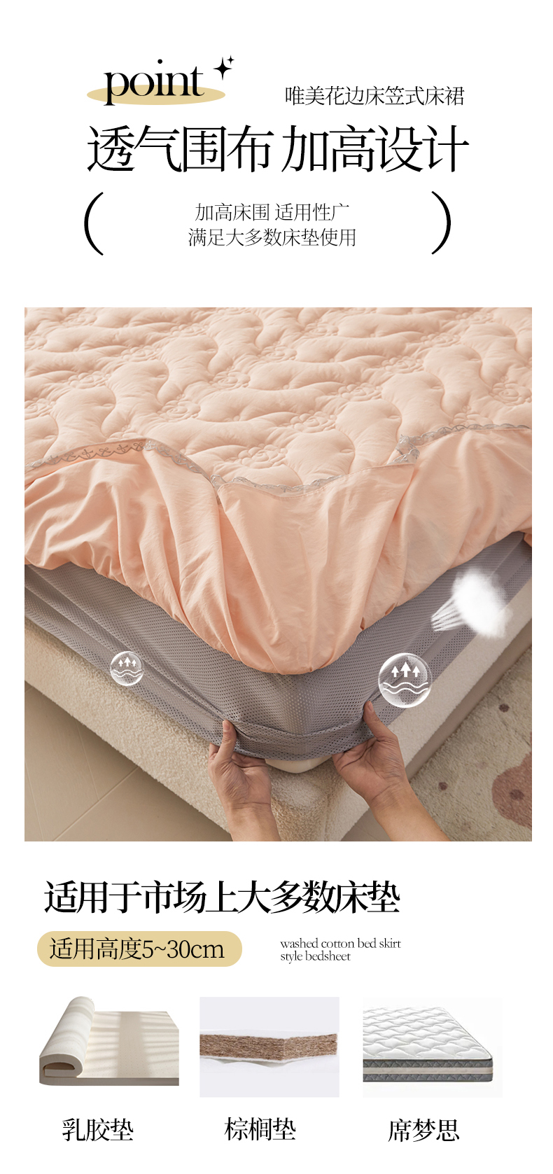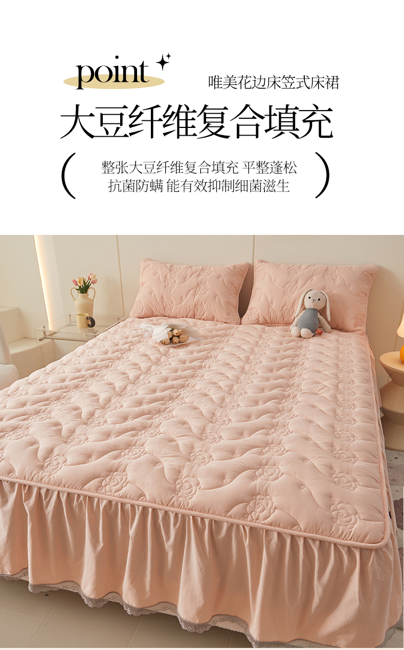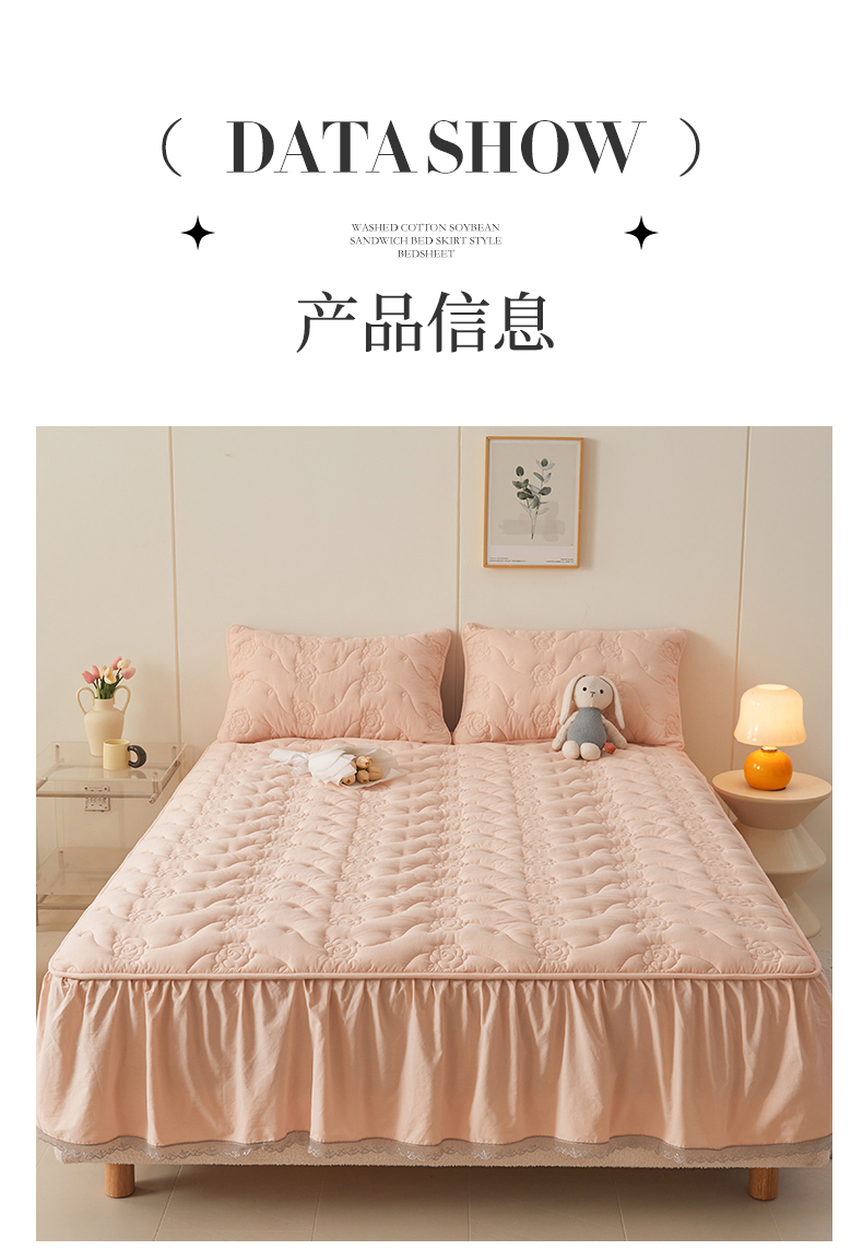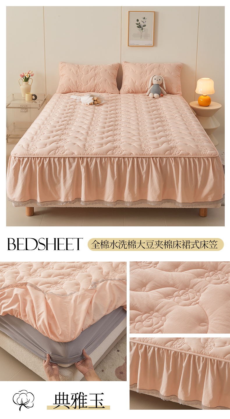 (总)3C 2024新款玫瑰全棉水洗棉大豆夹棉床裙式床笠