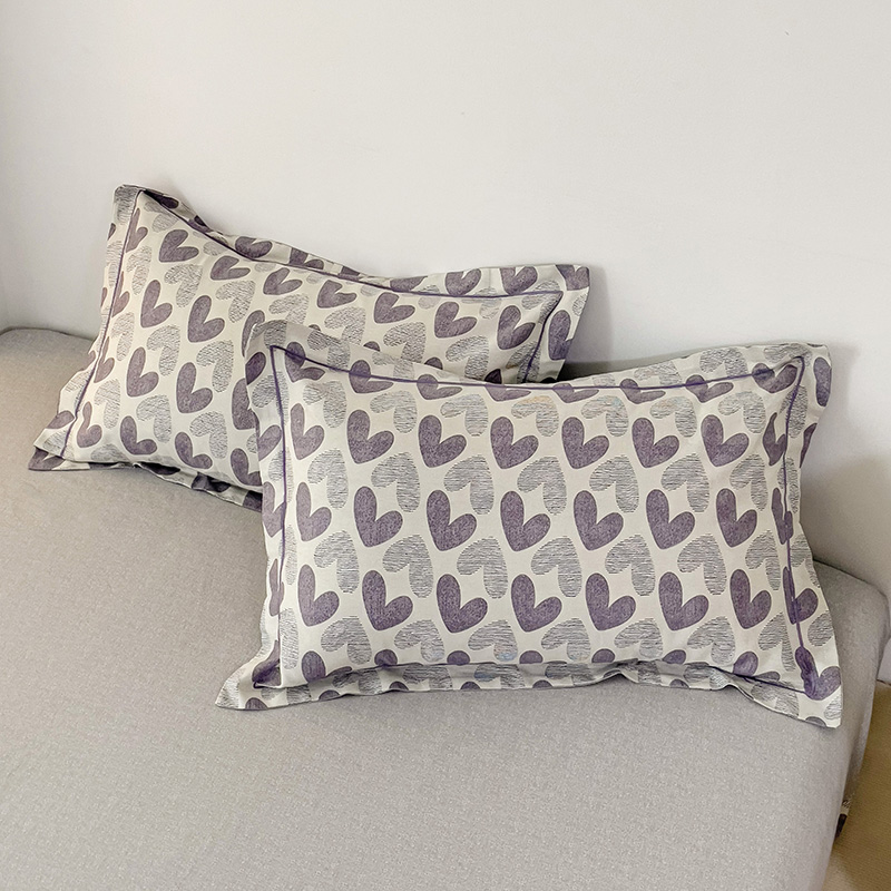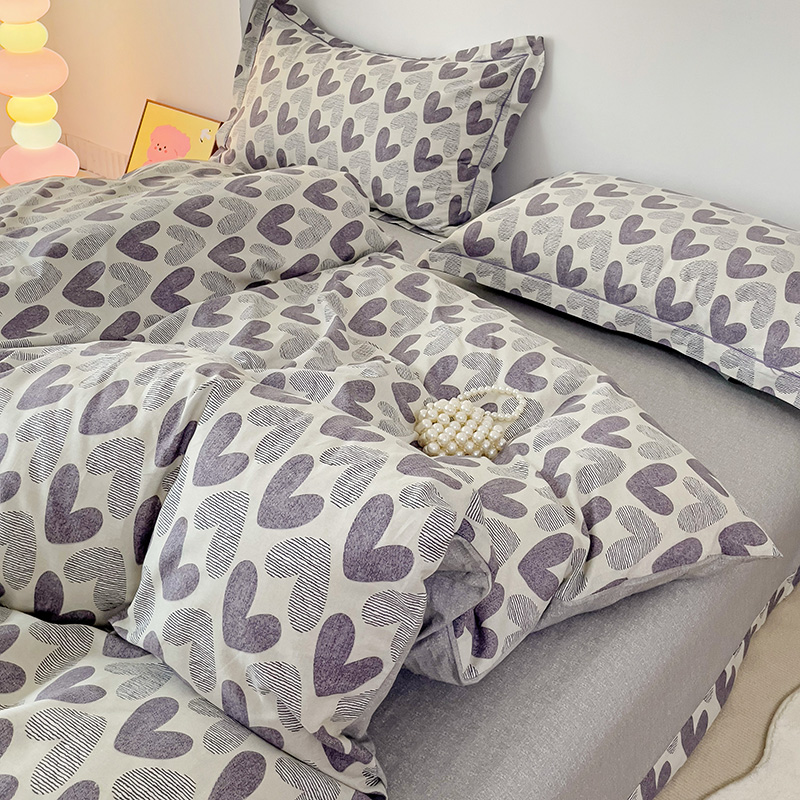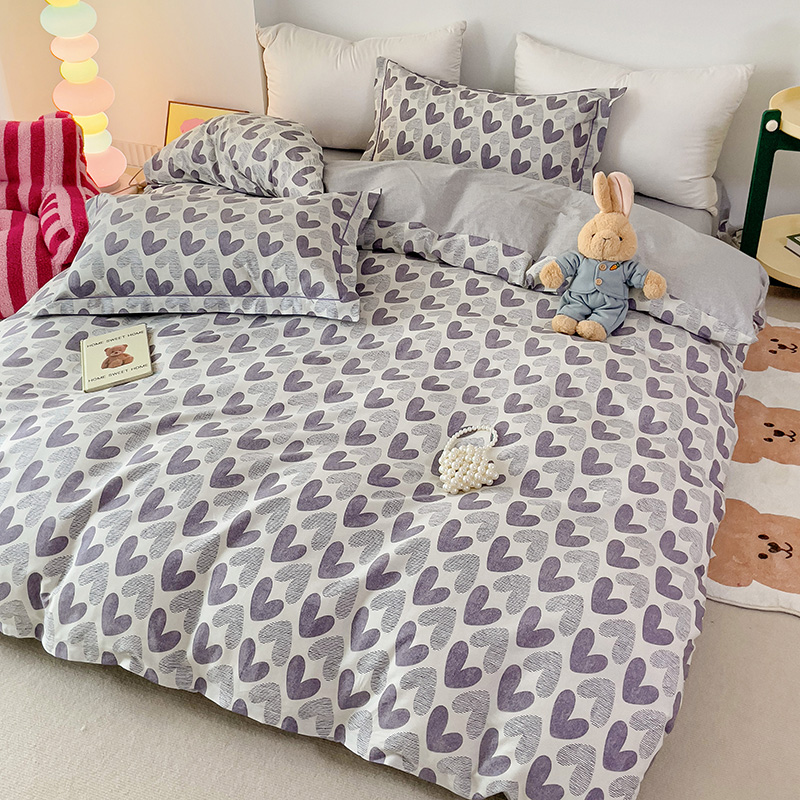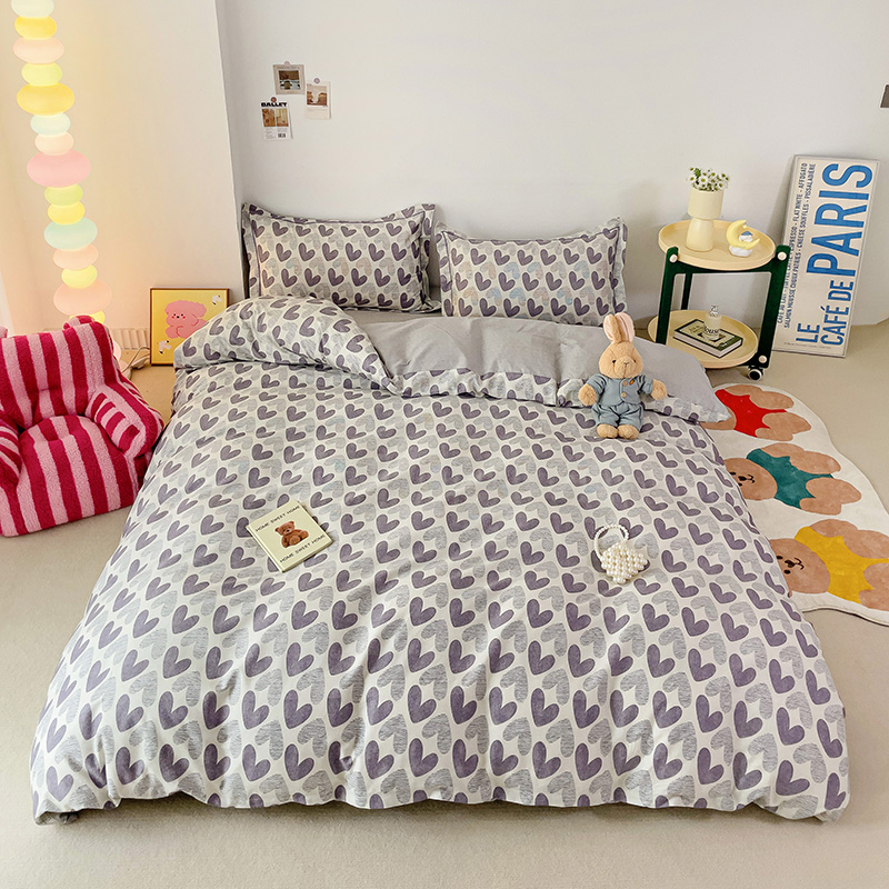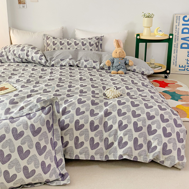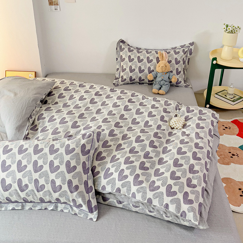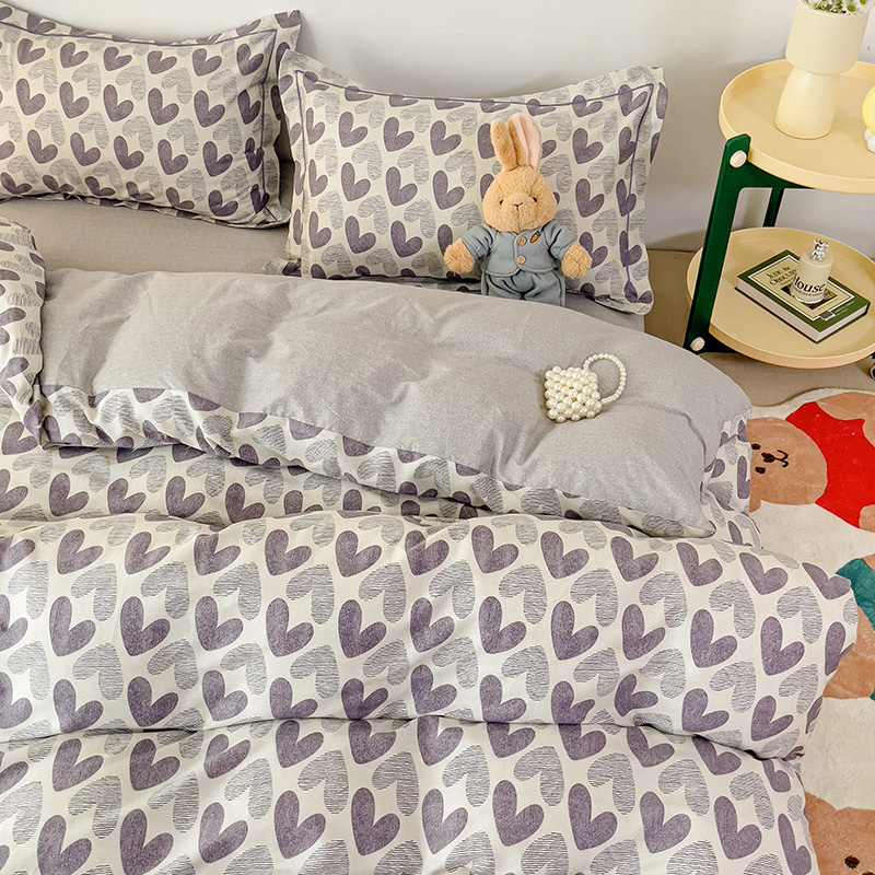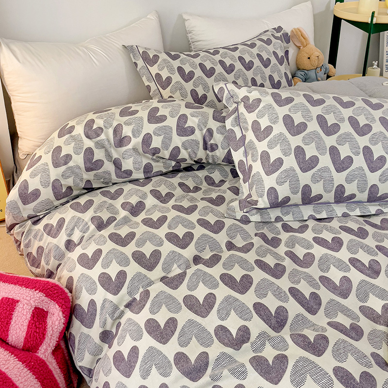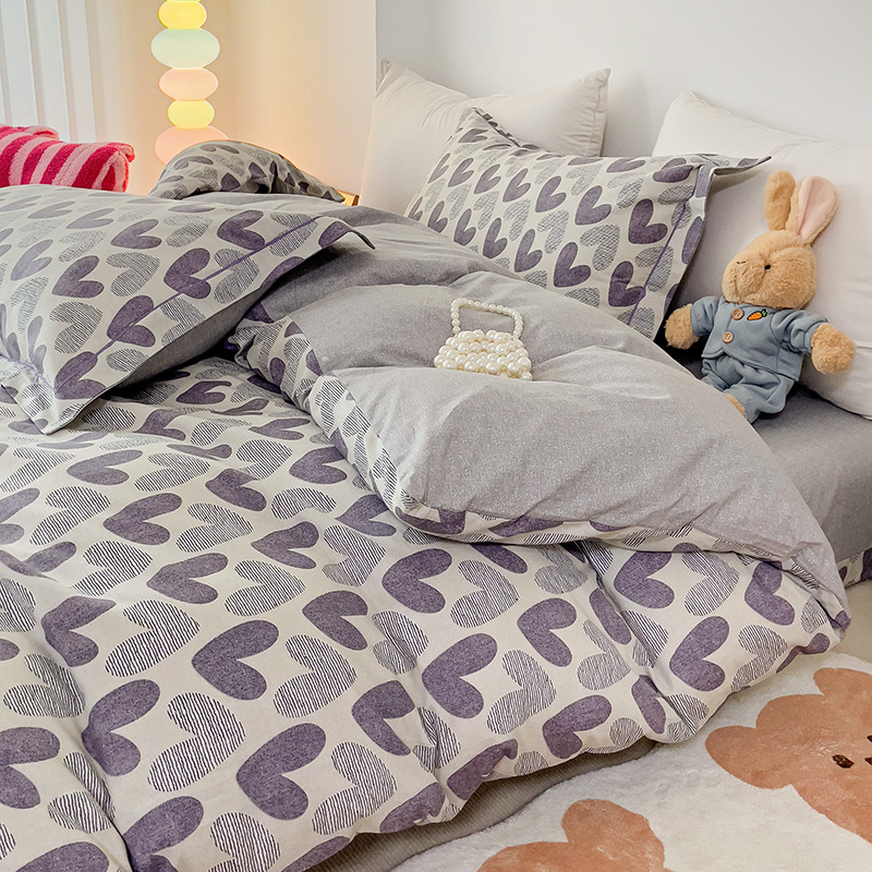 云锦家居 2024新款13070纯棉印花吊边款一字绣四件套 紫雾爱心