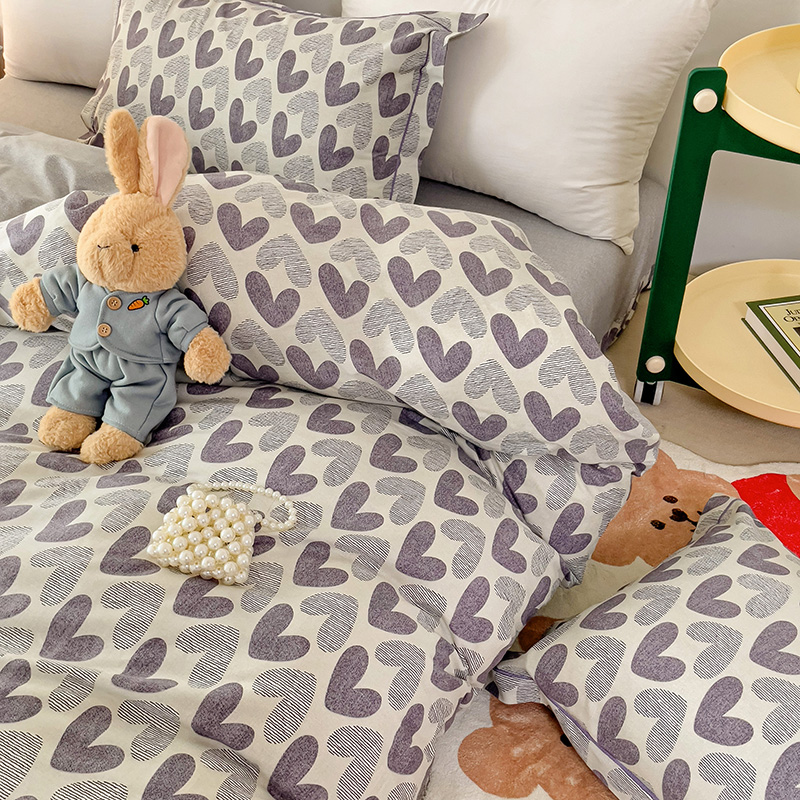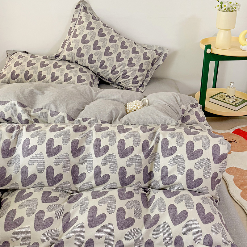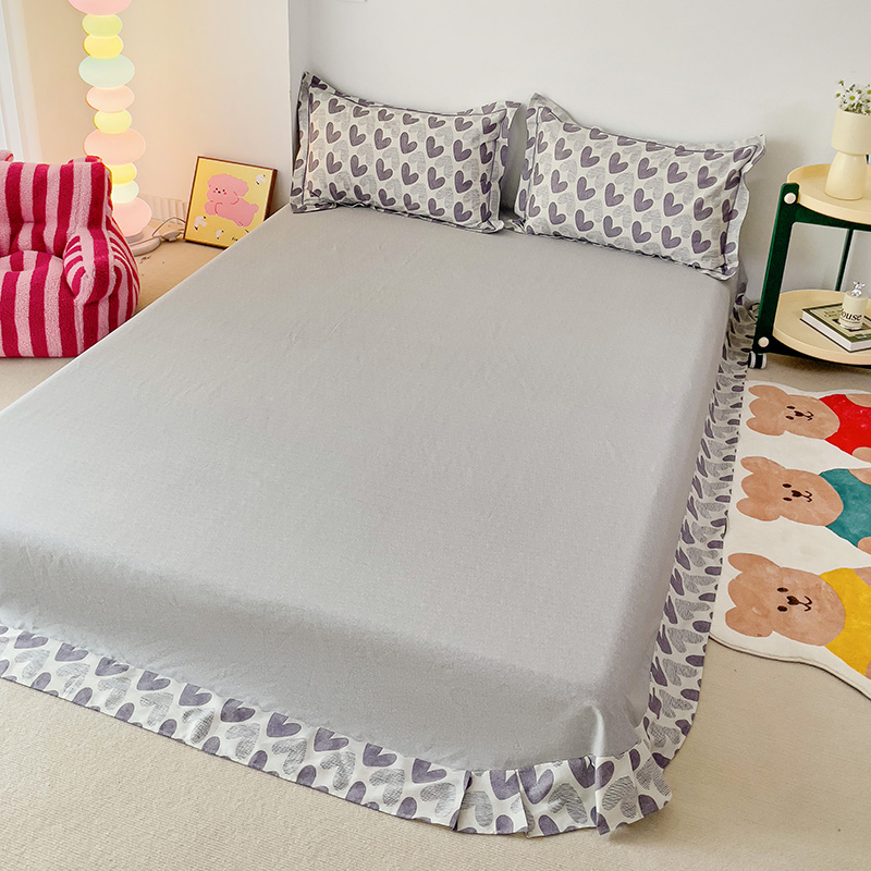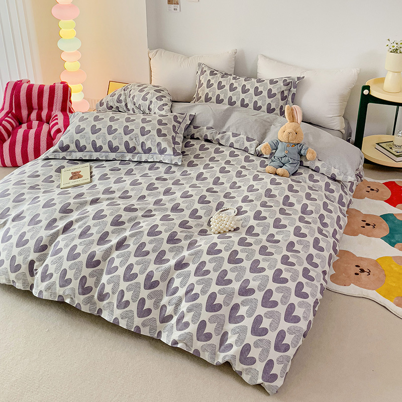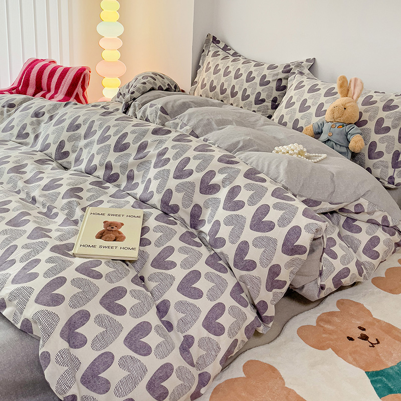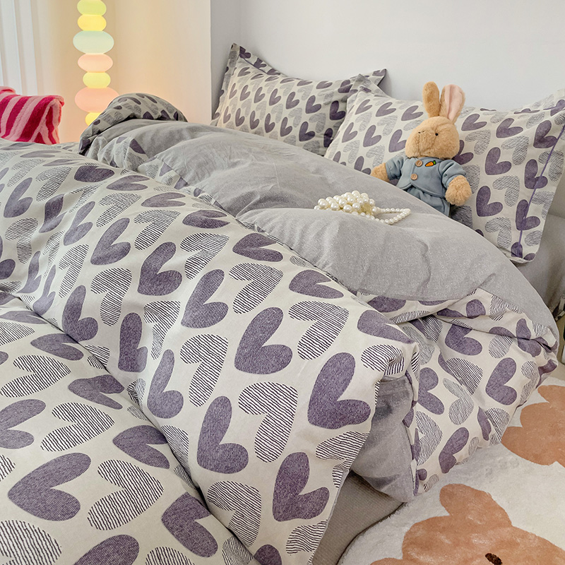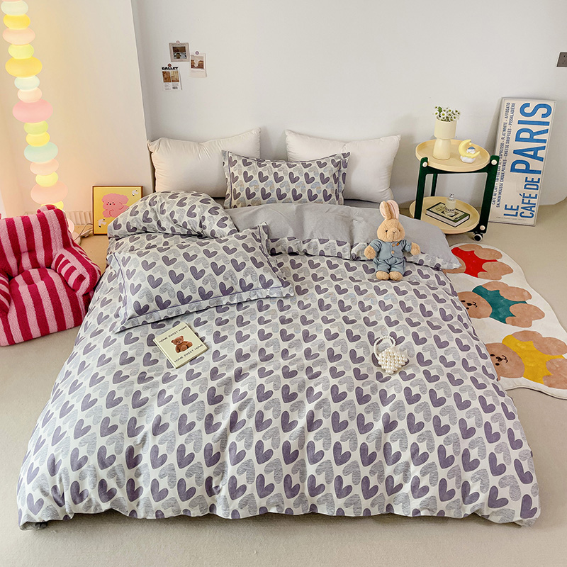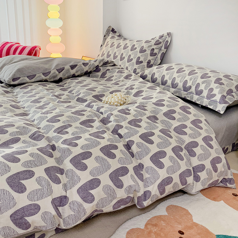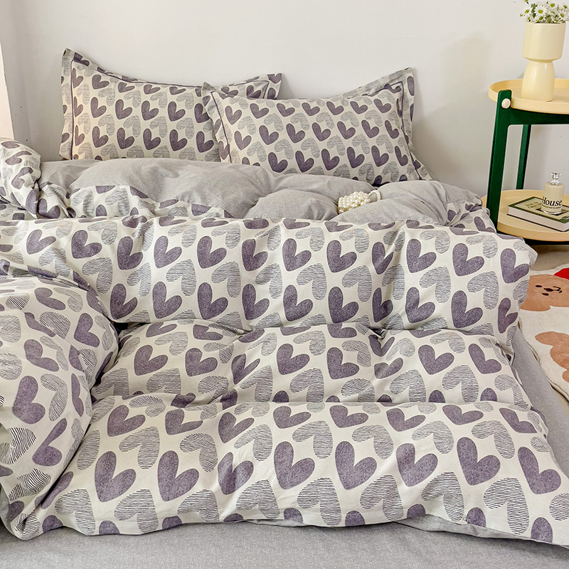 云锦家居 2024新款13070纯棉印花吊边款一字绣四件套 紫雾爱心