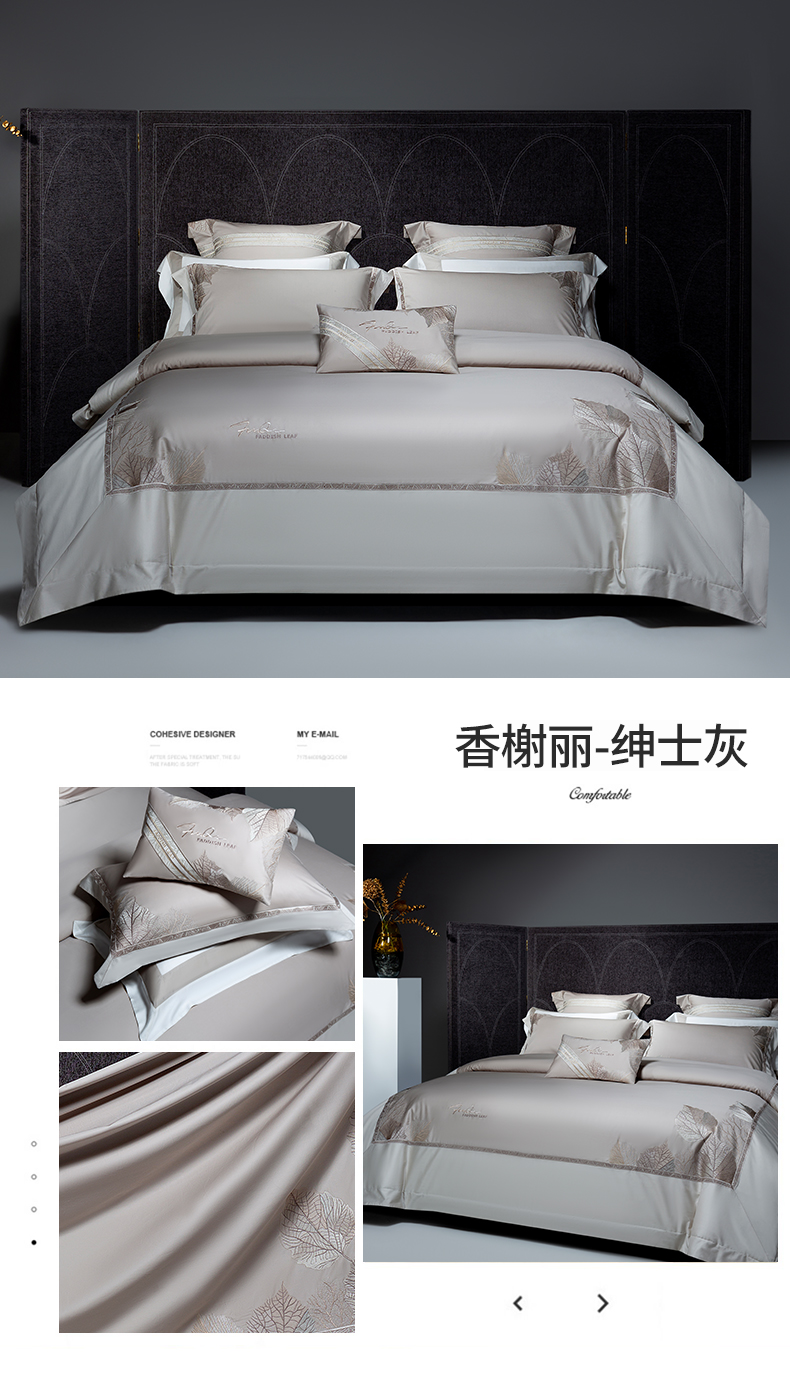 商品名称:高大尚2025春夏新品长绒棉高端绣花四件套-香榭丽 香榭丽-绅士灰