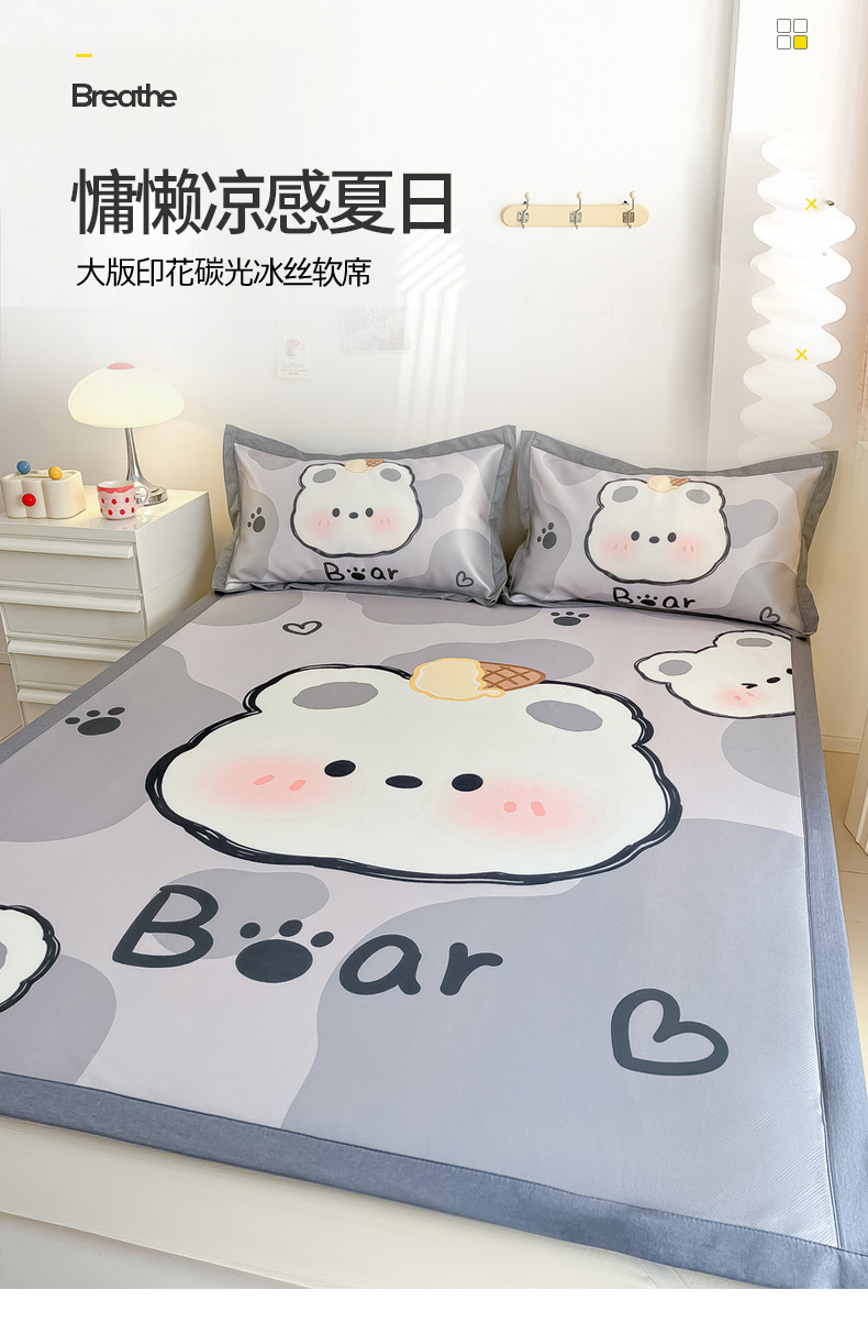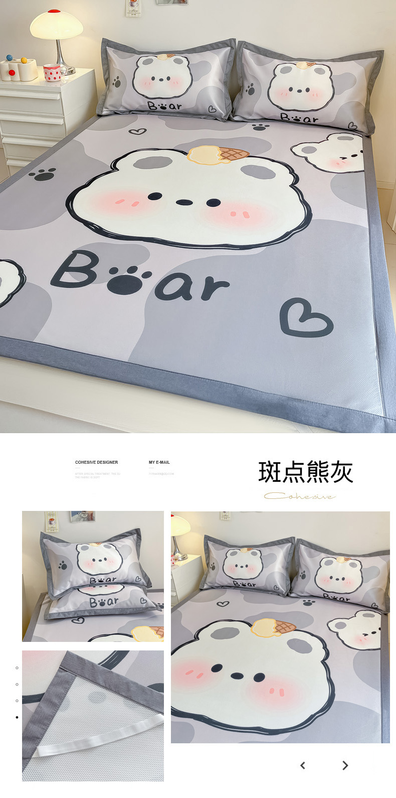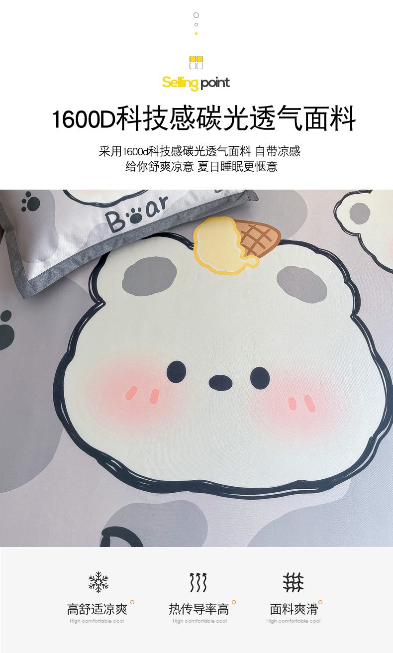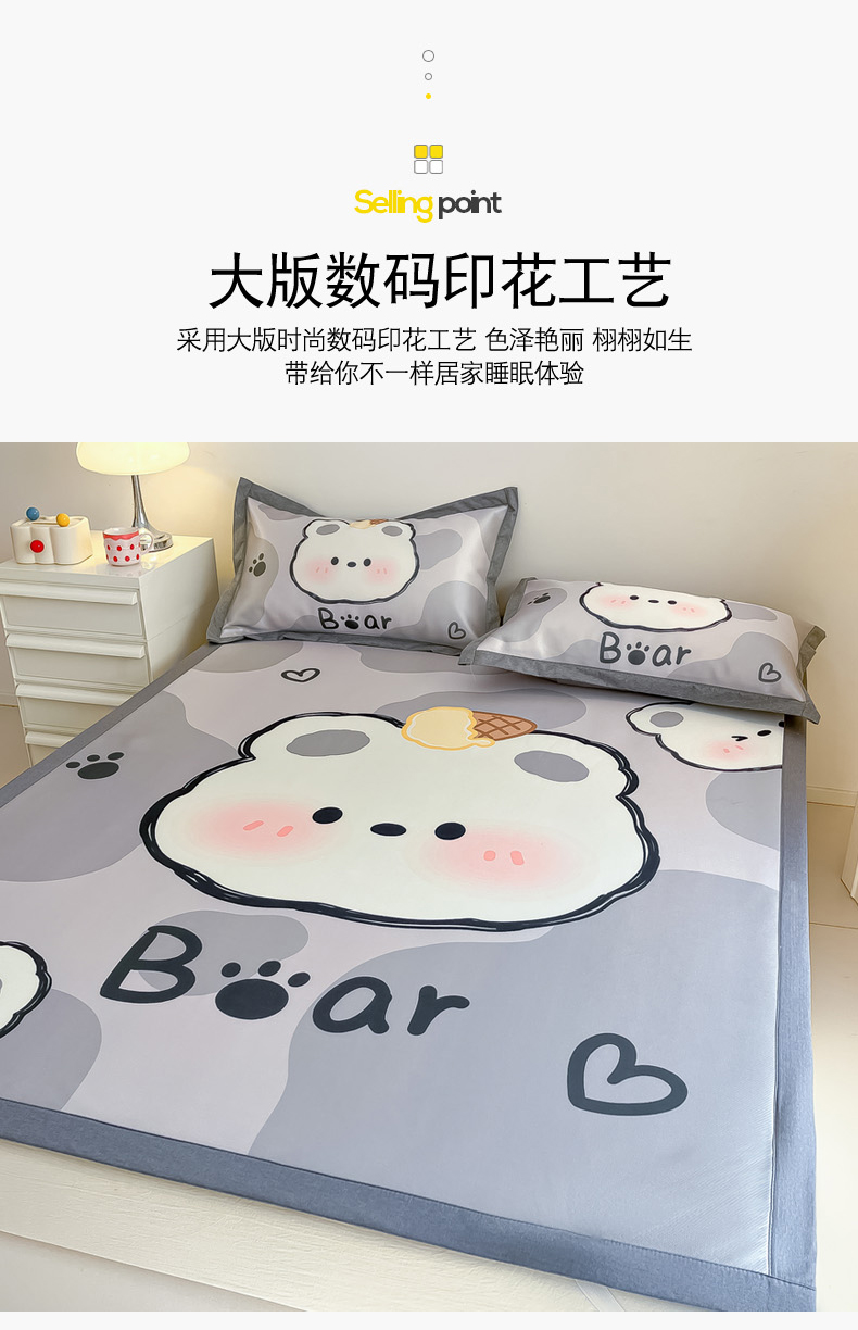 商品名称:柒月 2024新款大版数码印花1600D加厚碳光冰丝席 斑点熊灰