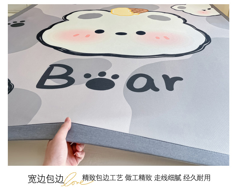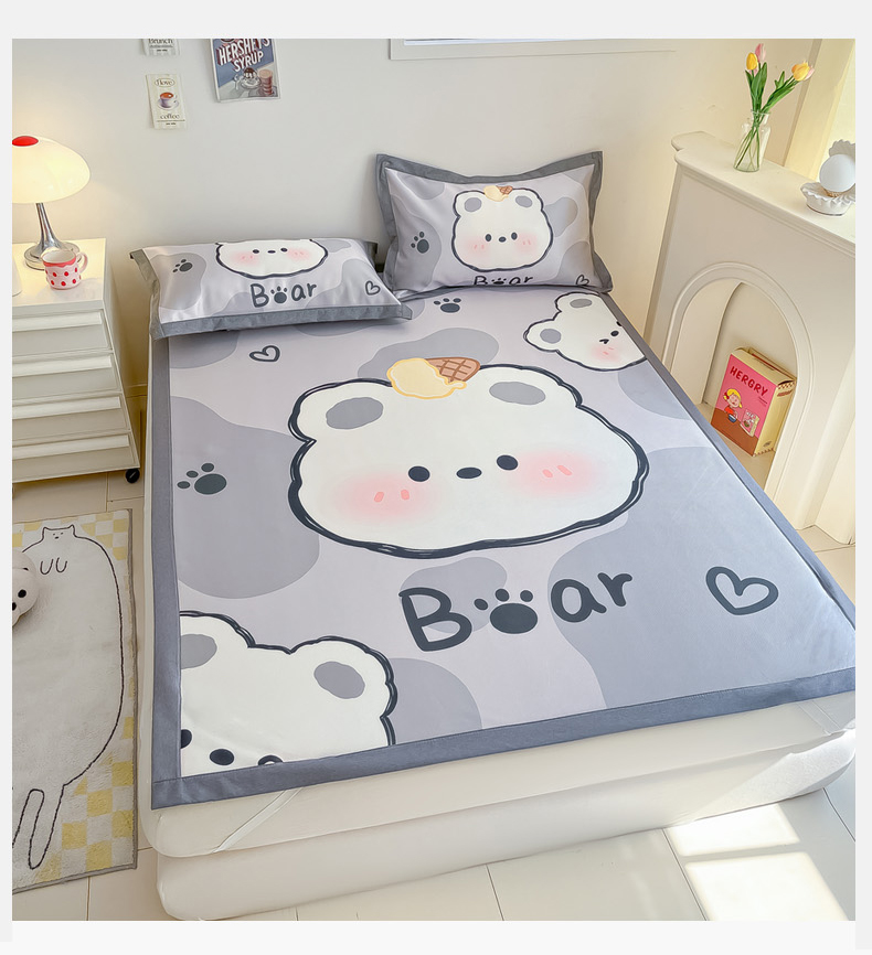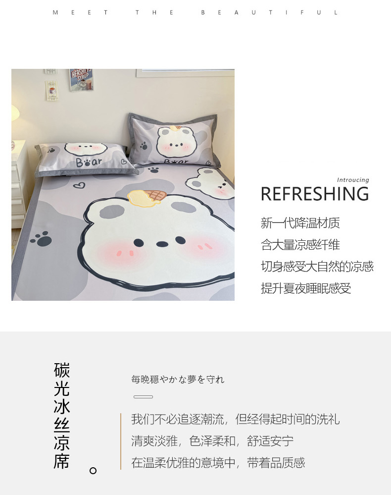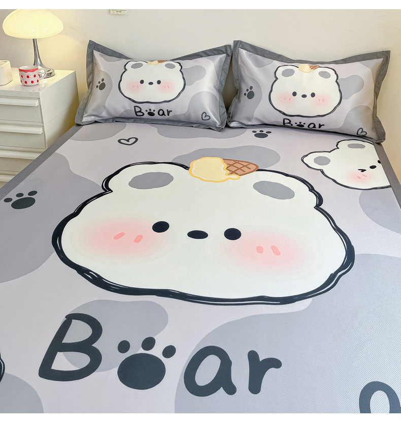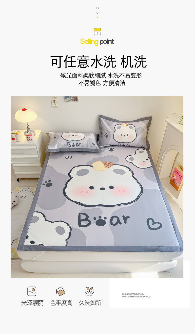 商品名称:柒月 2024新款大版数码印花1600D加厚碳光冰丝席 斑点熊灰