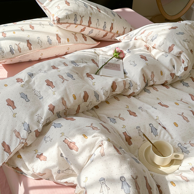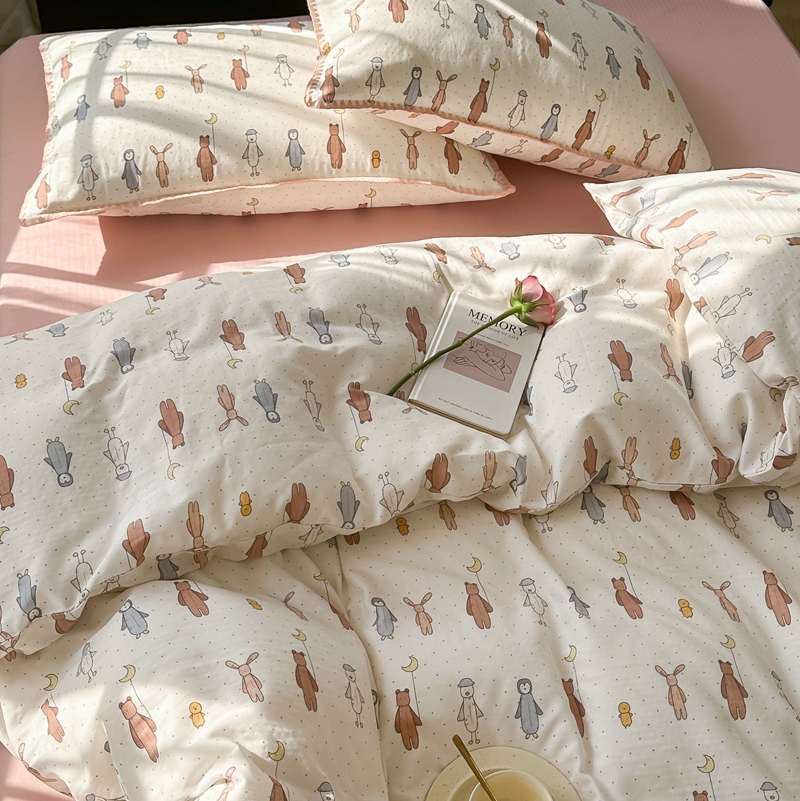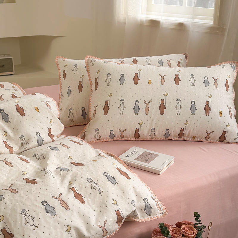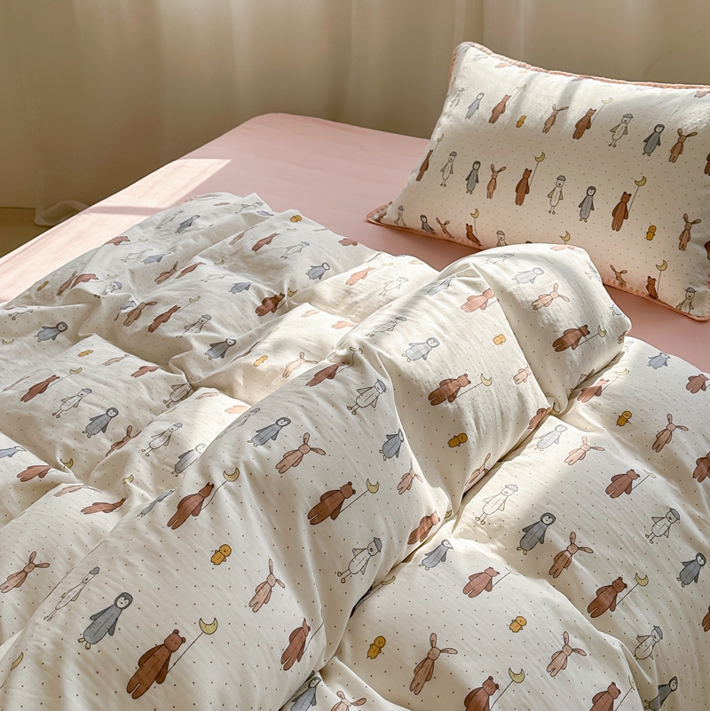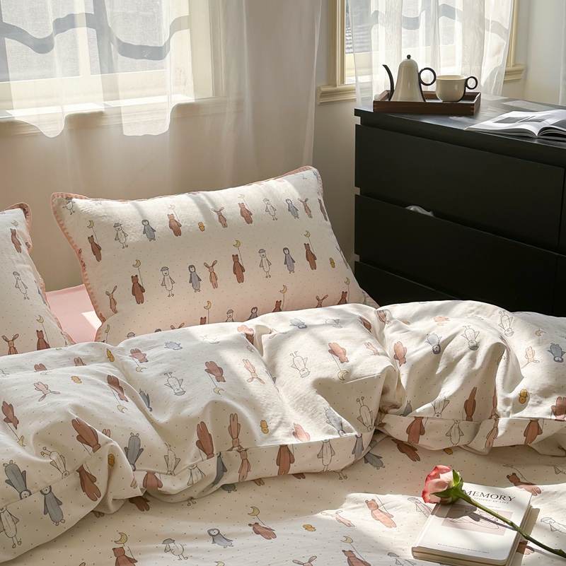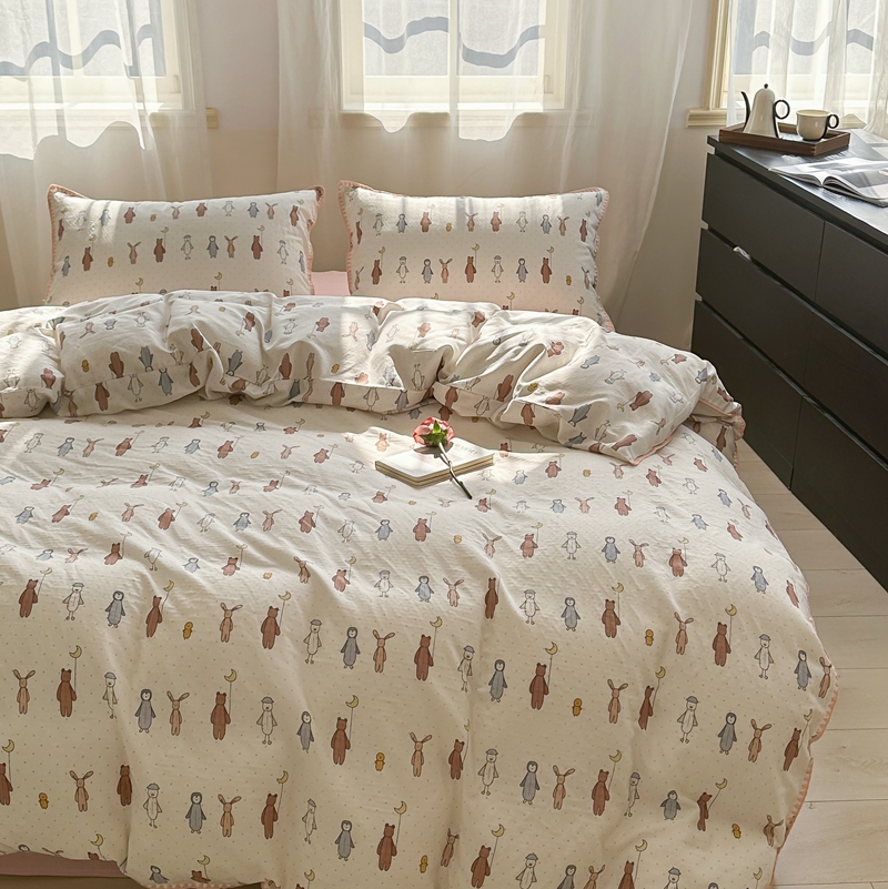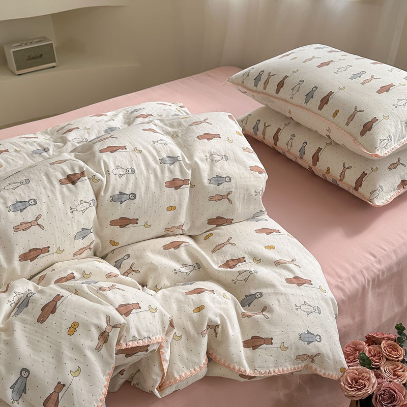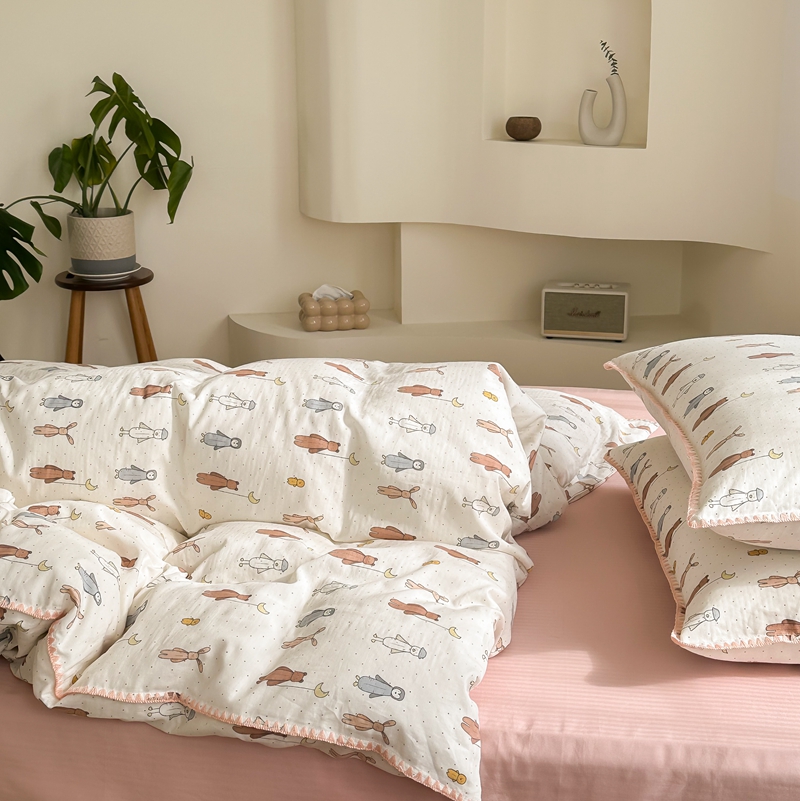 洋铭区(原狠狠爱) 2024新款全棉双层纱四件套 可爱月亮