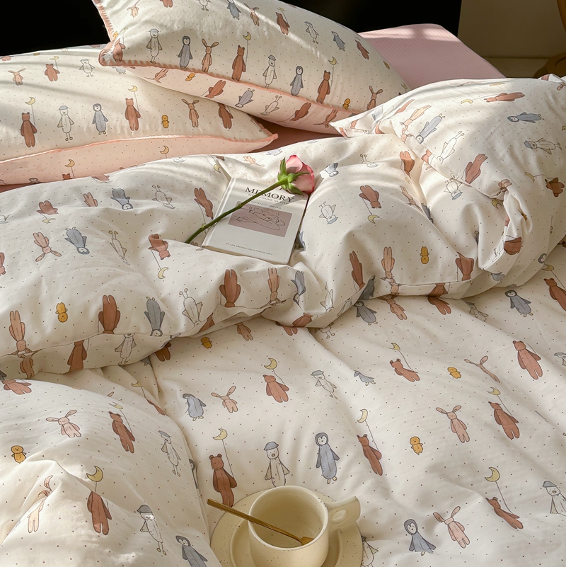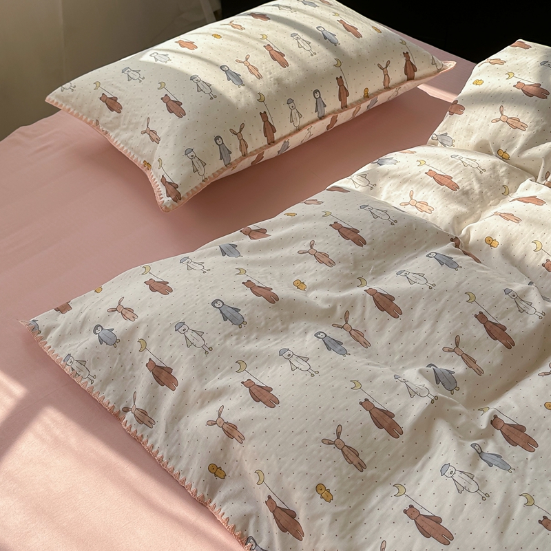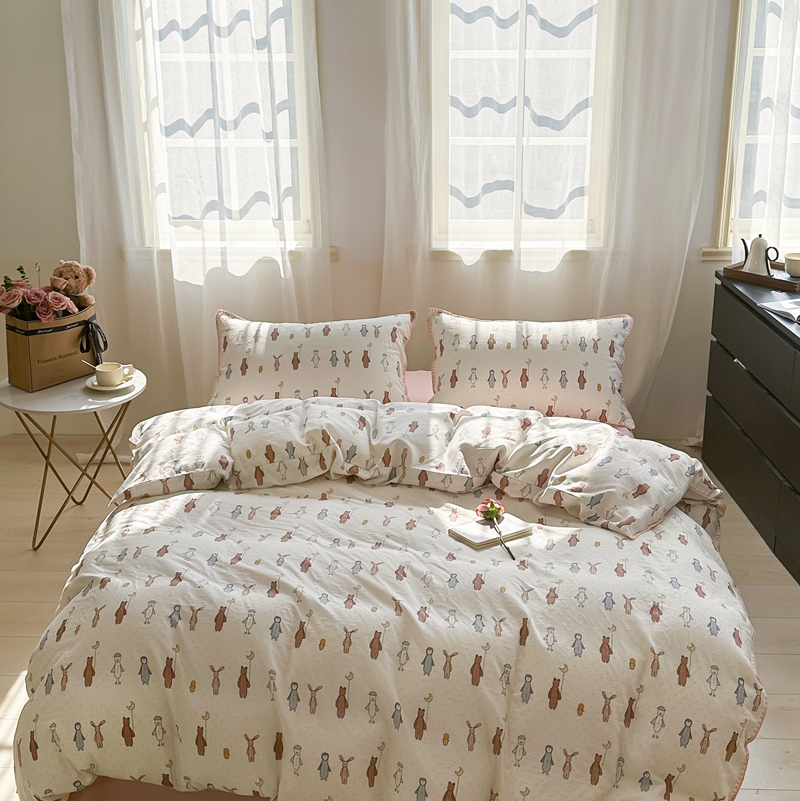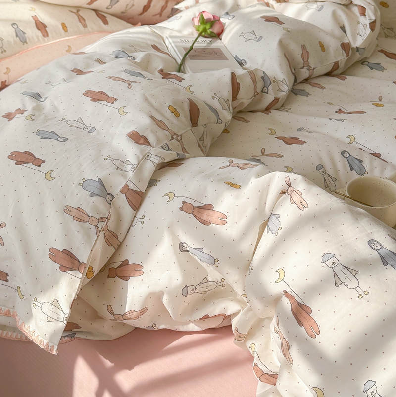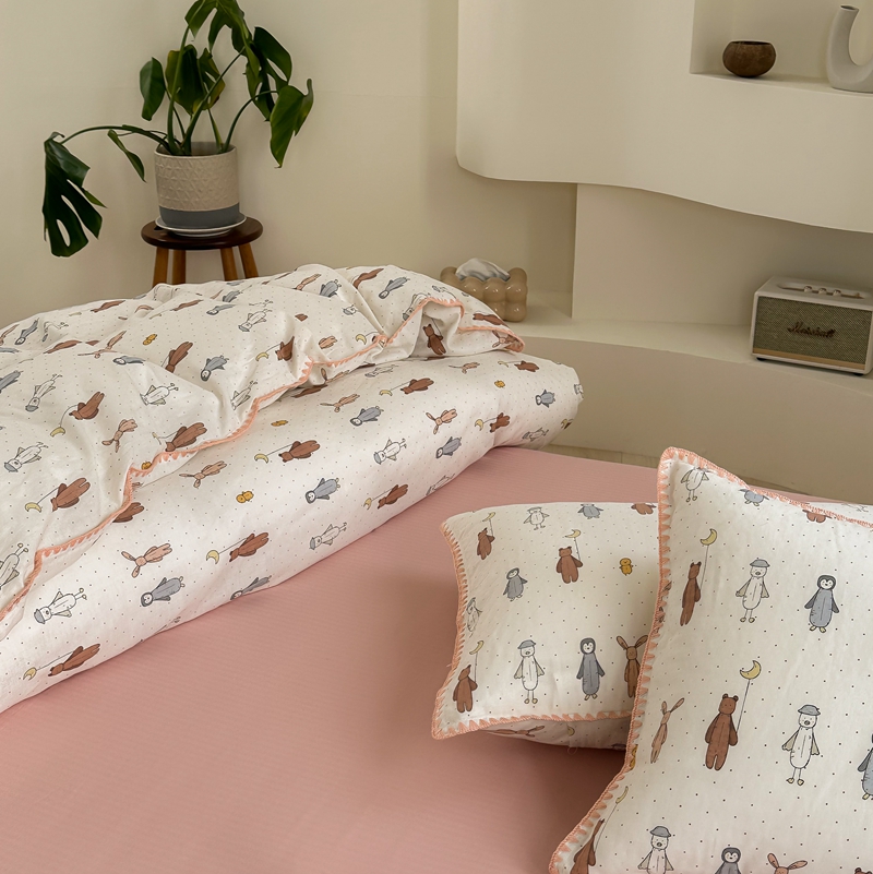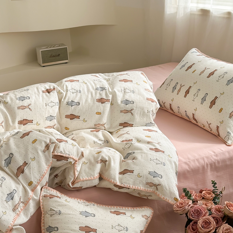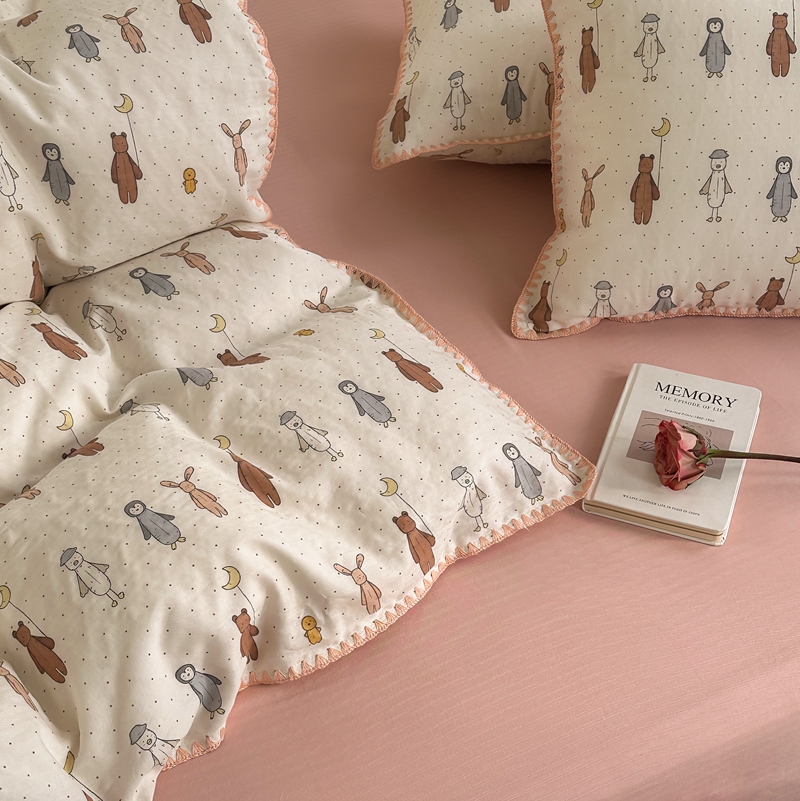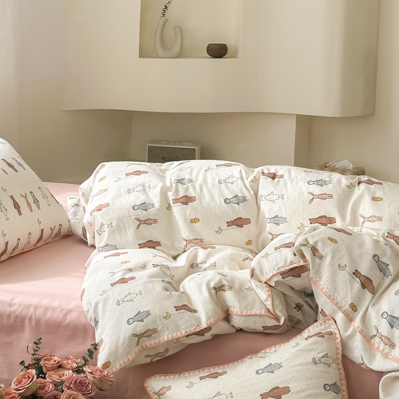 (总)洋铭区(原狠狠爱) 2026新款春季全棉彩边双层纱四件套,爱心宝莉,波斯小懒狗,繁花兔兔,格格小熊,海蓝小木马,红格小马,红枣小兔,花朵兔兔,焦糖小熊,兰花香,绿芽小马,萌宠小分队,奶茶蝴蝶结,奶糕熊熊,汽车派对,桃桃粉花,甜果小象,图图小狮子,幸运小可爱,熊猫嘟嘟,遇见粉花,月光宝宝
