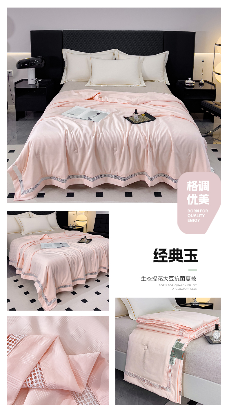 (总)优姿2025新款云柔棉大豆镂空烫钻夏被被子被芯,粉色,灰色,蓝色,绿色,紫色