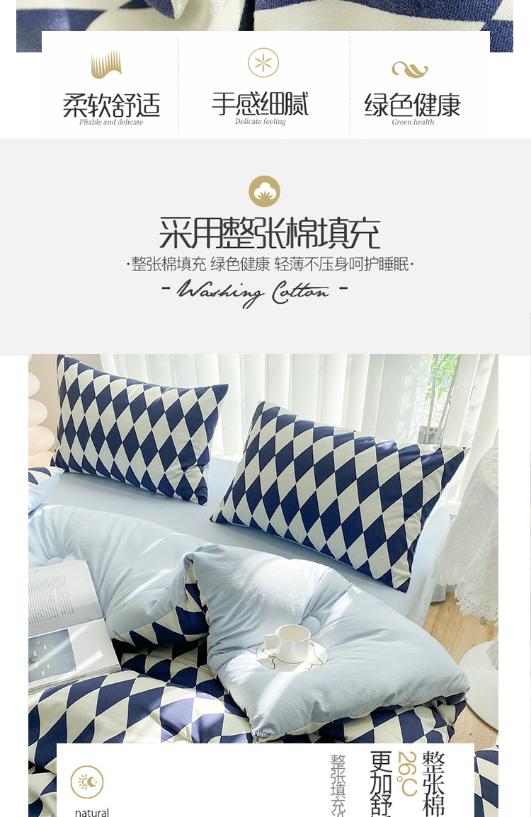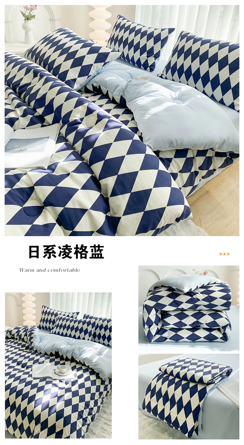 当前位置: 91家纺网 > 商品网购 > 床品套件 > 四件套 > 夏被四件套 > 啊雅家居 2025新款水洗棉条纹印花夏被冬被四件套-床笠款 冬被 日系凌格蓝