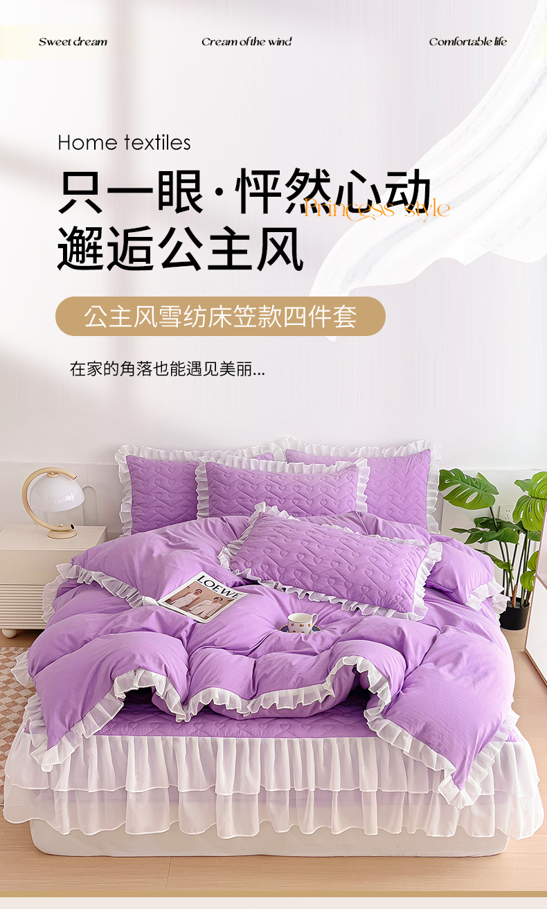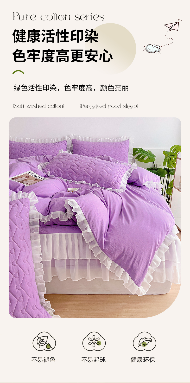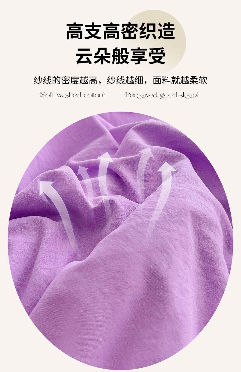 屹成 2024新款水洗棉雪纺丽莎款床笠款四件套 浅紫