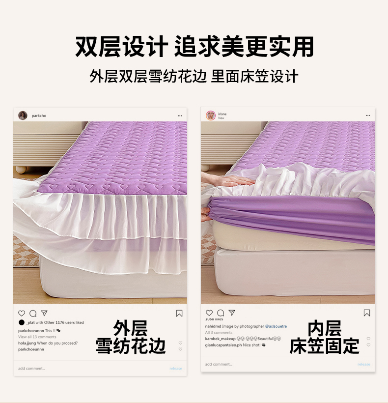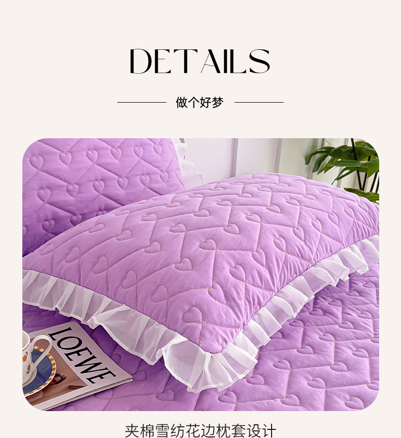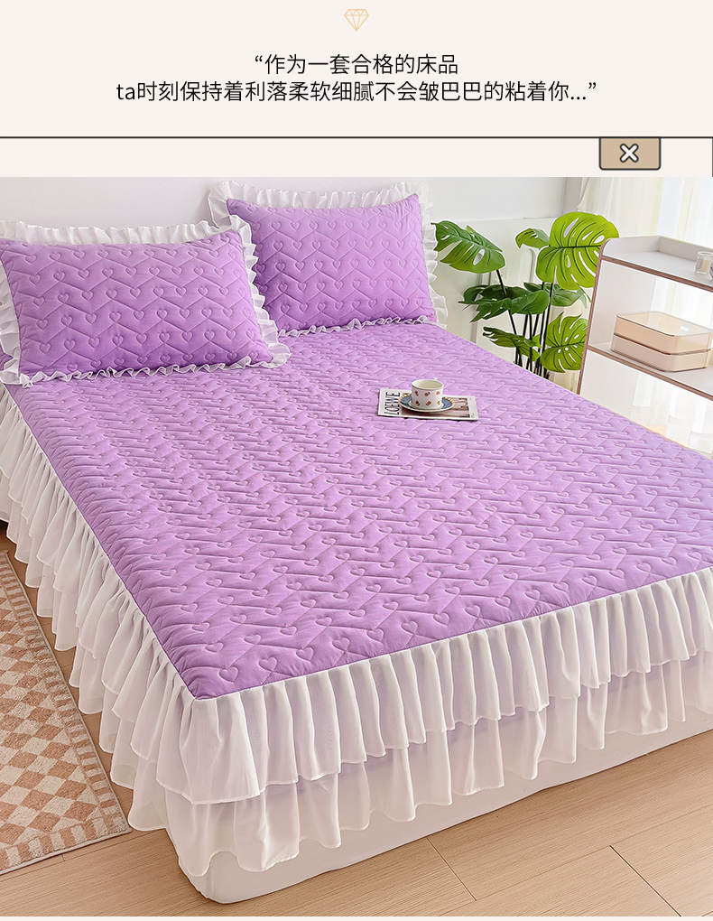 (总)屹成家纺2025新款水晶绒夹棉绗缝蕾丝床裙三件套(塞纳河畔)床裙单件起售价不低于105元,大红,豆沙,翡翠绿,粉玉,橄榄绿,蔚蓝,银灰