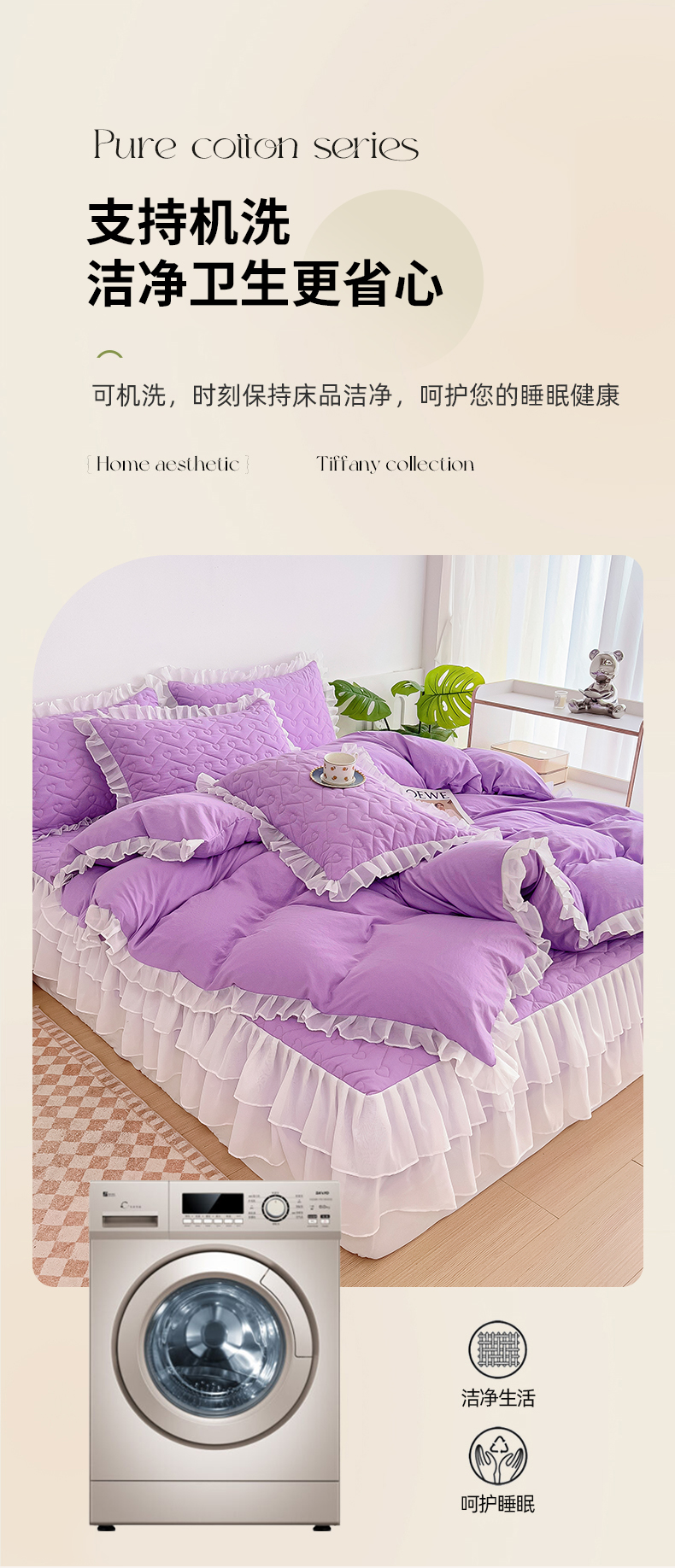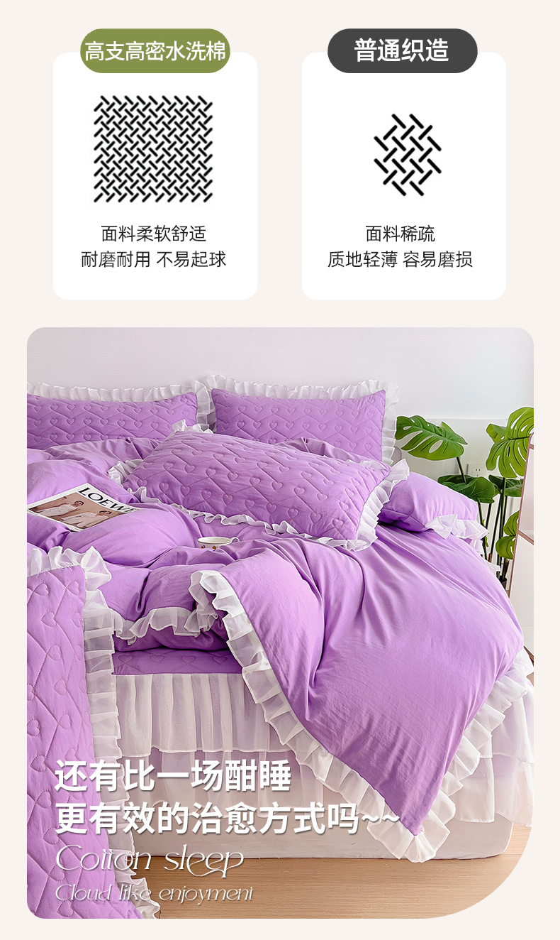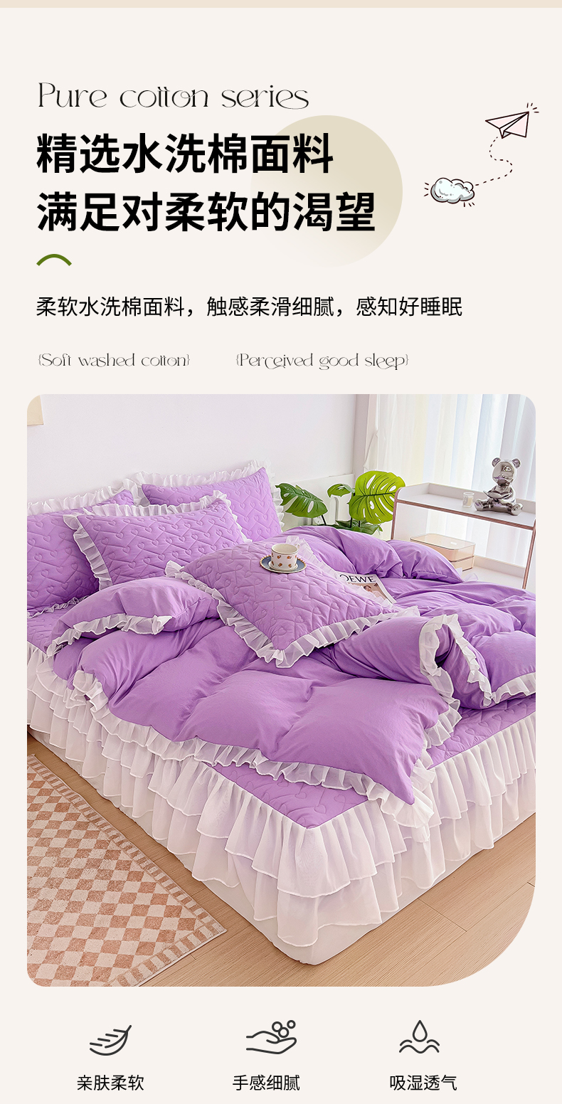 商品名称:屹成 2024新款水洗棉雪纺丽莎款床笠款四件套 浅紫