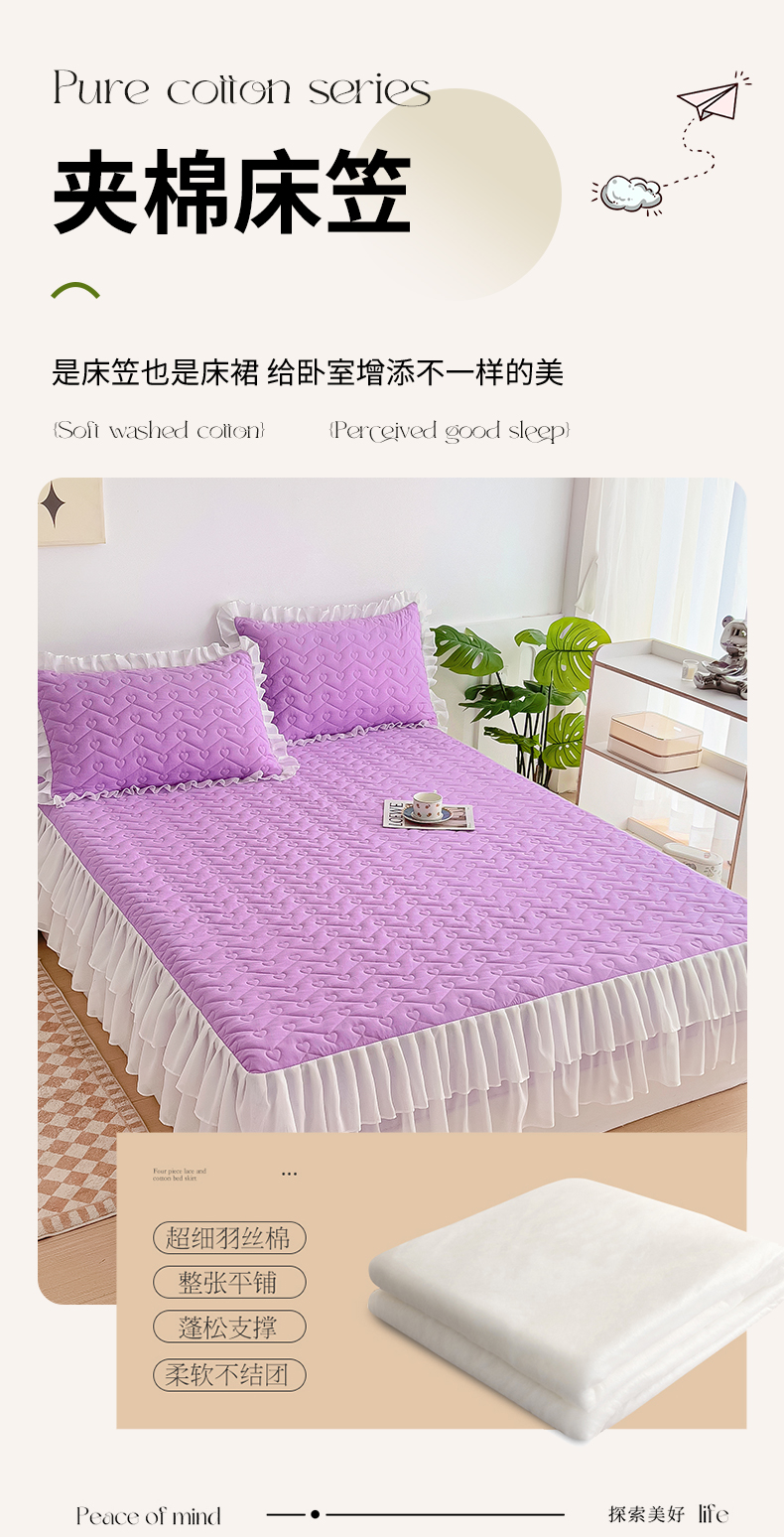 (总)屹成家纺 2024新款天竺棉夹棉床裙四件套,玳瑁紫,典雅驼,豆沙,格调蓝,经典灰,孔雀绿