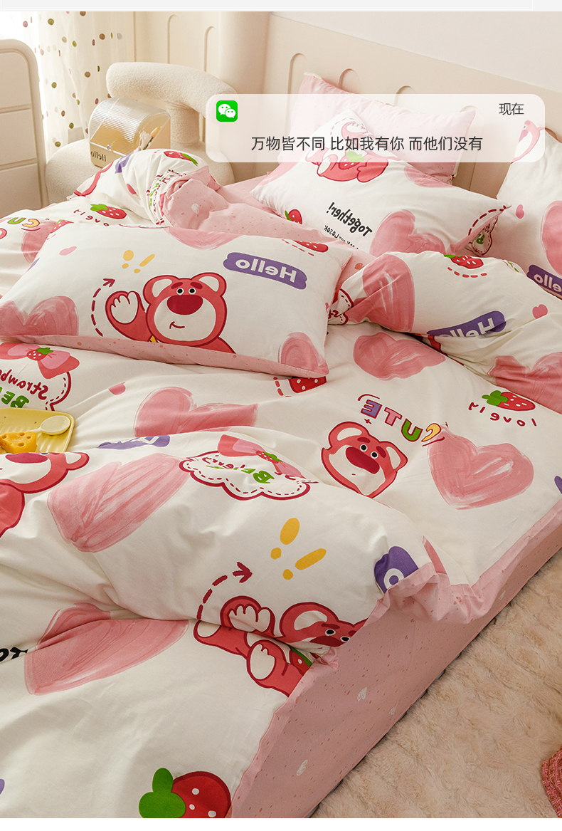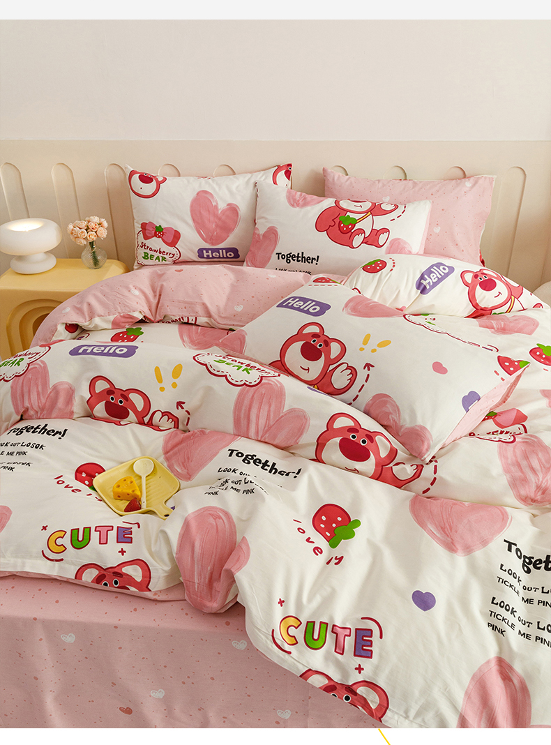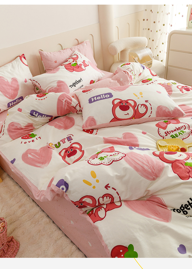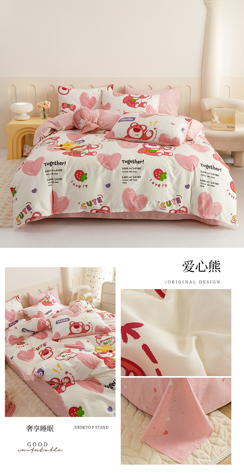 当前位置: 91家纺网 > 商品网购 > 床品套件 > 四件套 > 全棉普通四件套 > 红粉佳人家纺 2024新款纯棉卡通小清新四件套及单品 爱心熊-1