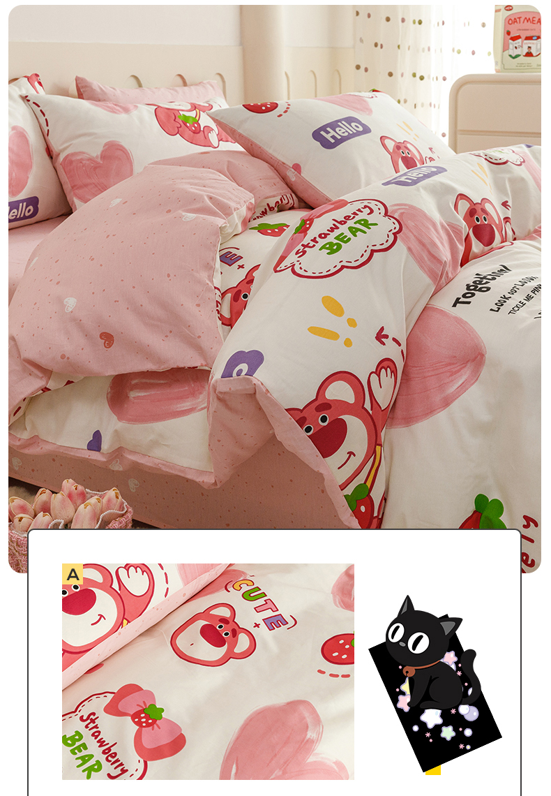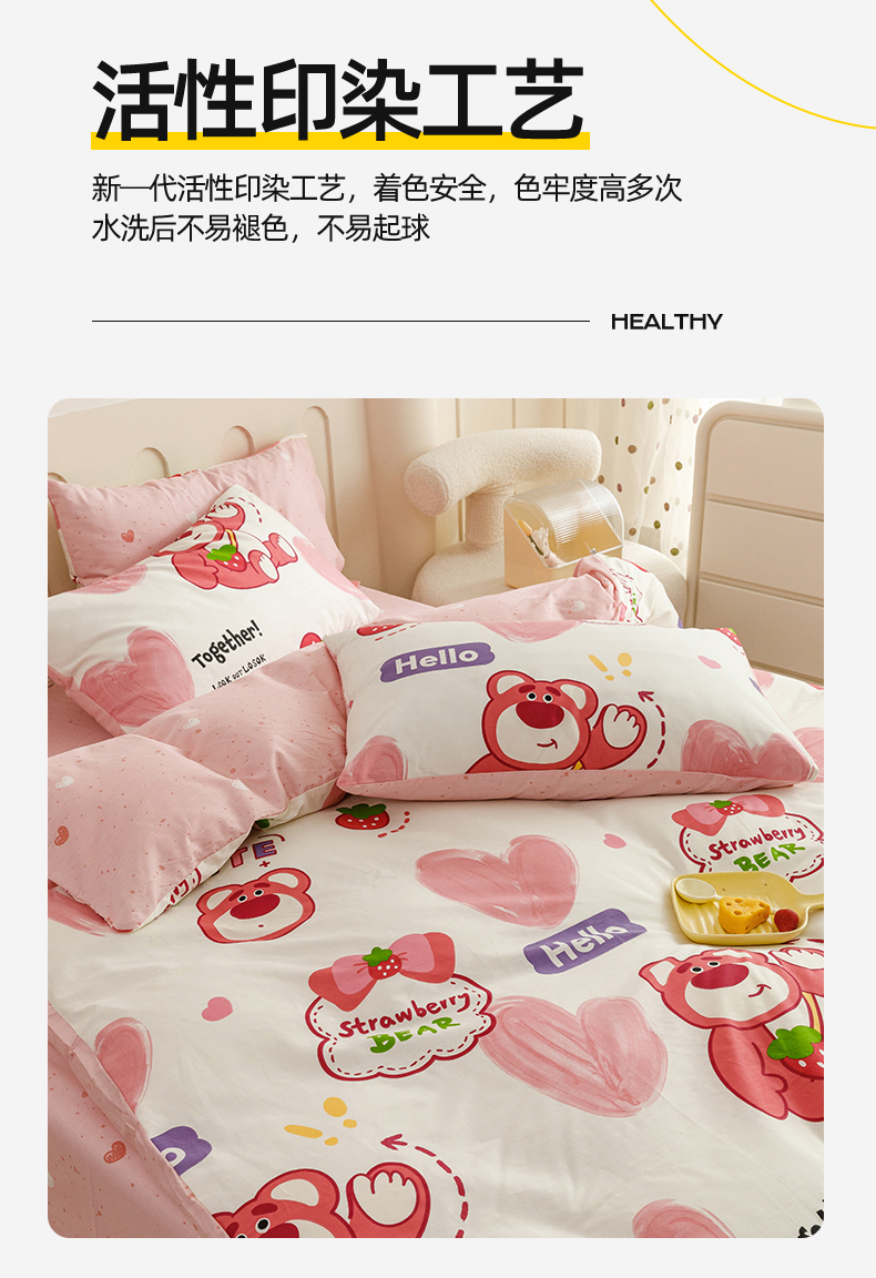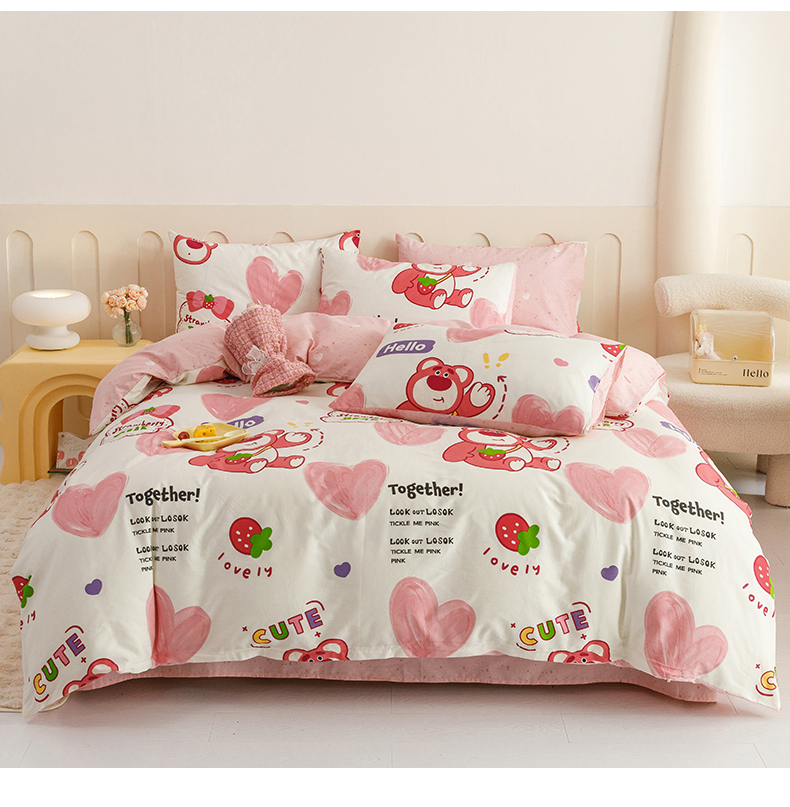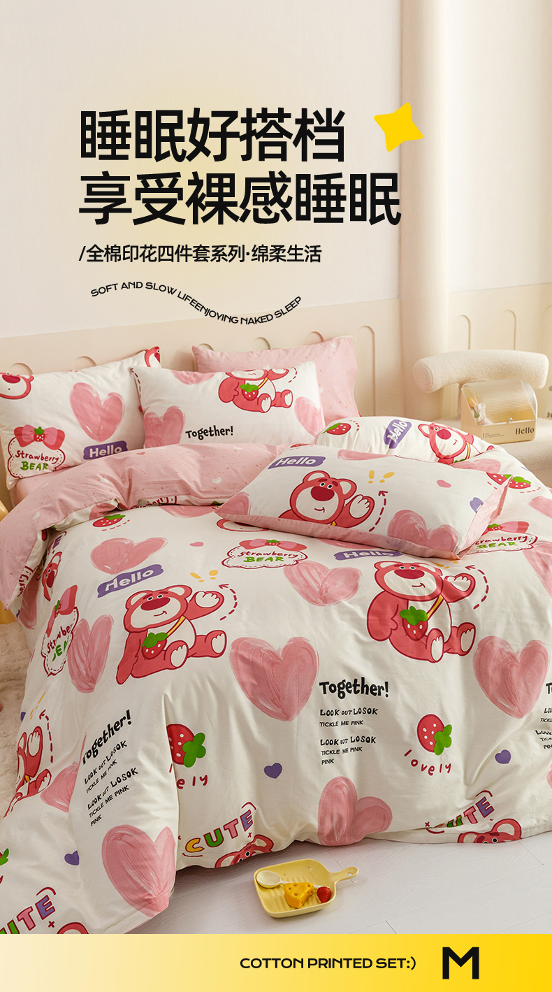 当前位置: 91家纺网 > 商品网购 > 床品套件 > 四件套 > 全棉普通四件套 > 红粉佳人家纺 2024新款纯棉卡通小清新四件套及单品 爱心熊-1